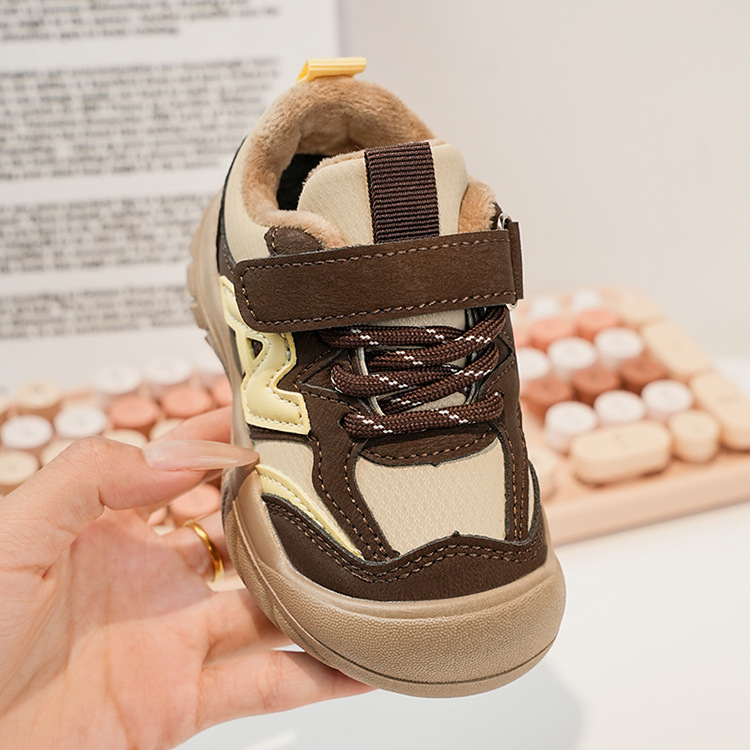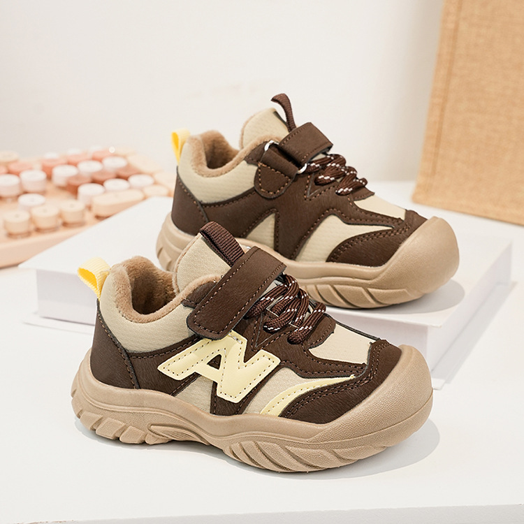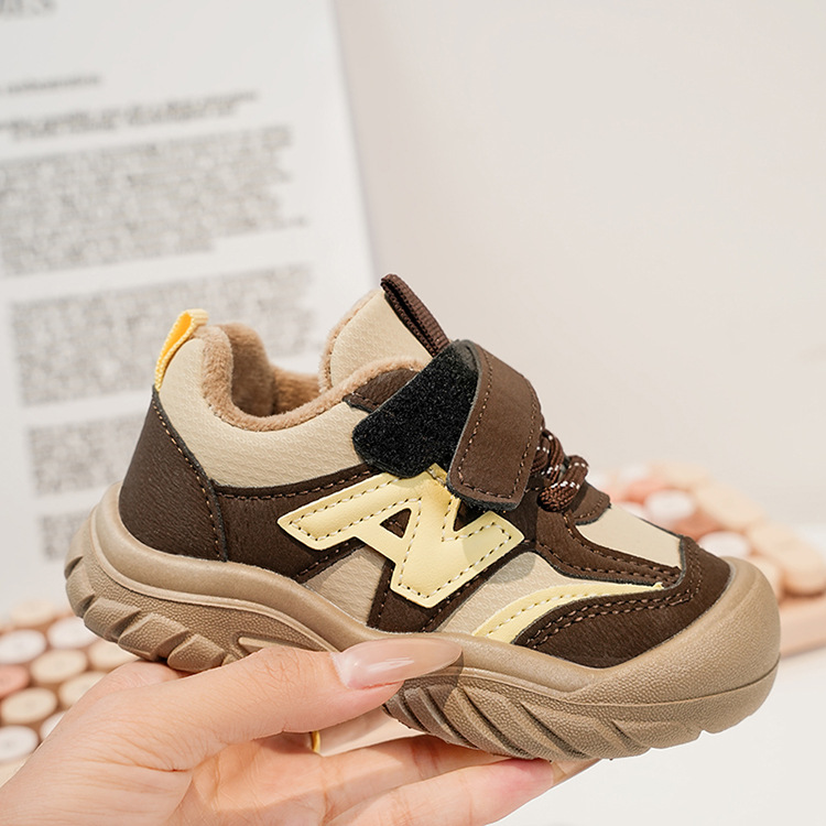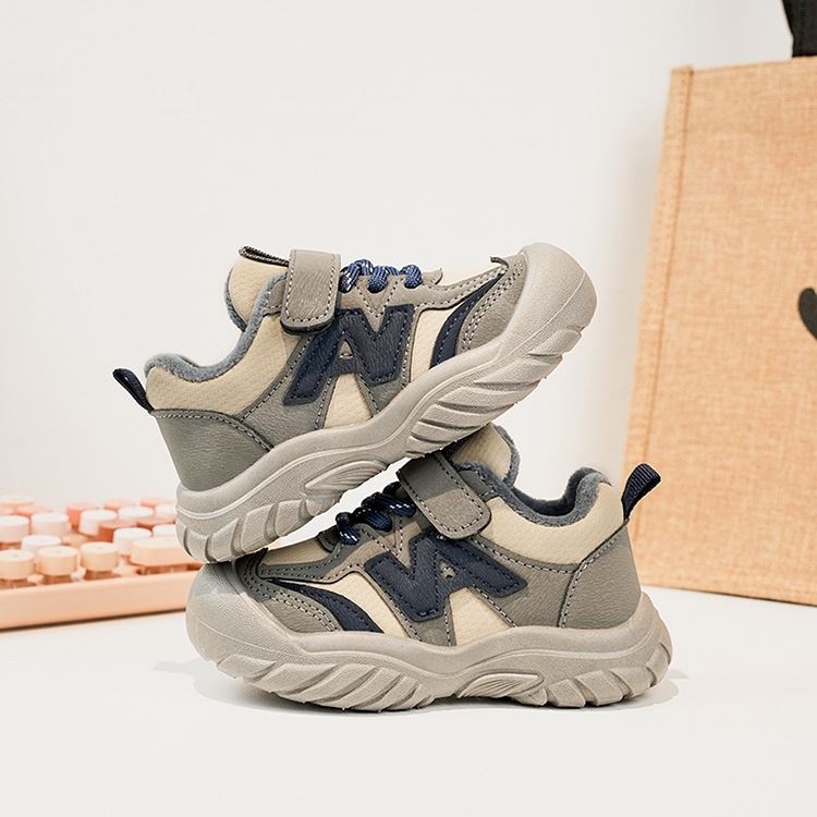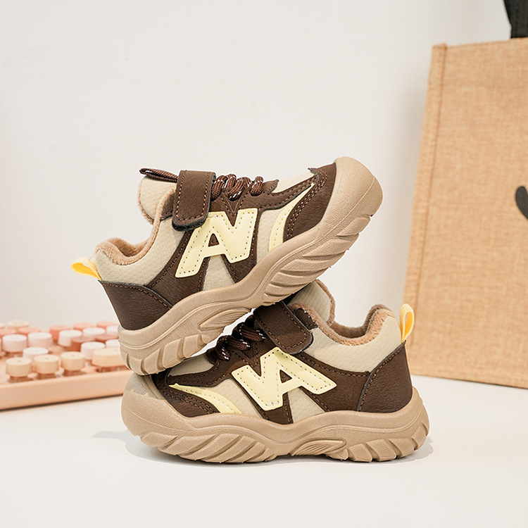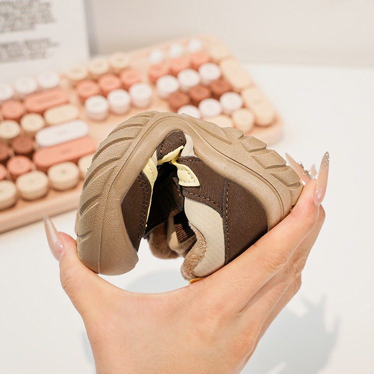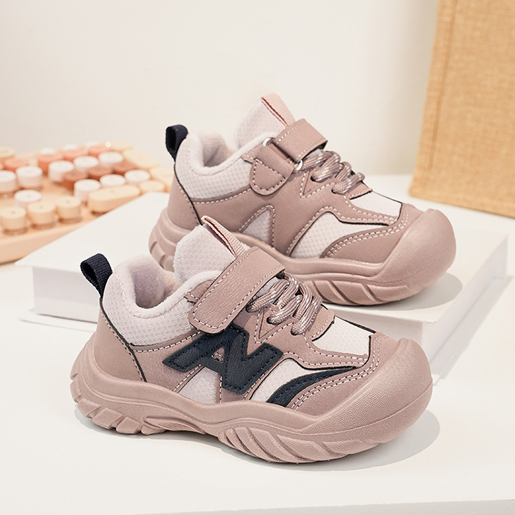 Zapatos deportivos para niños coreanos de estilo universal zapatos de entrenamiento para niñas 2025 invierno nuevos zapatos infantiles para niños con suela suave de terciopelo caliente