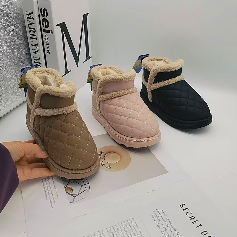34-39 Tamaño de invierno de niños botas de nieve 2025 nuevas botas cortas para niños con botas de algodón gruesas para bebés calientes
