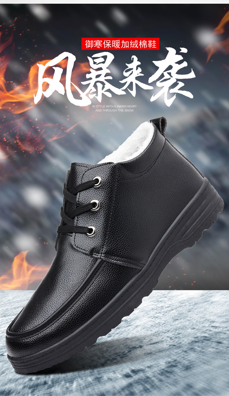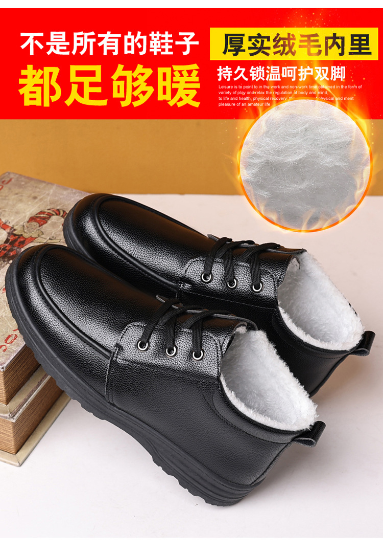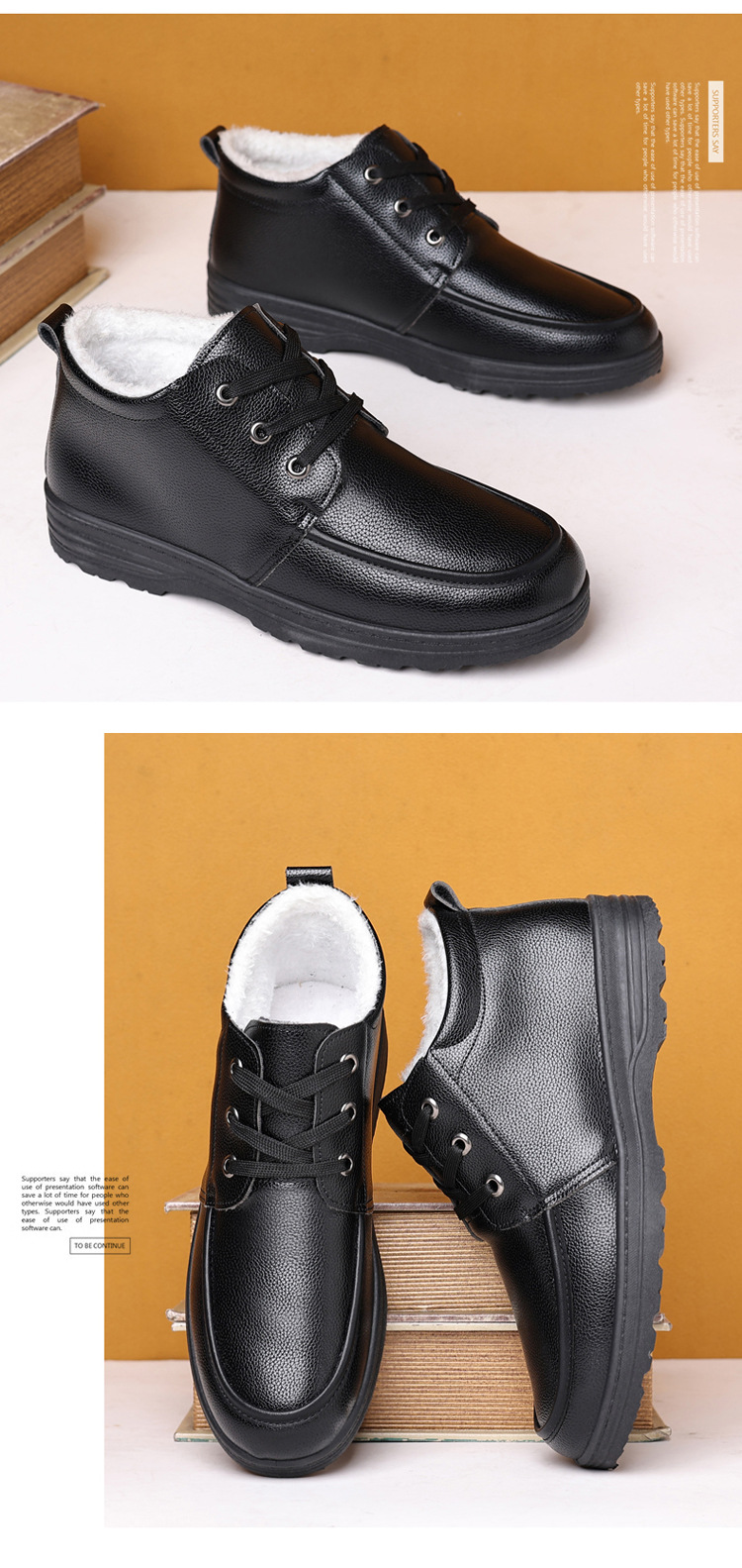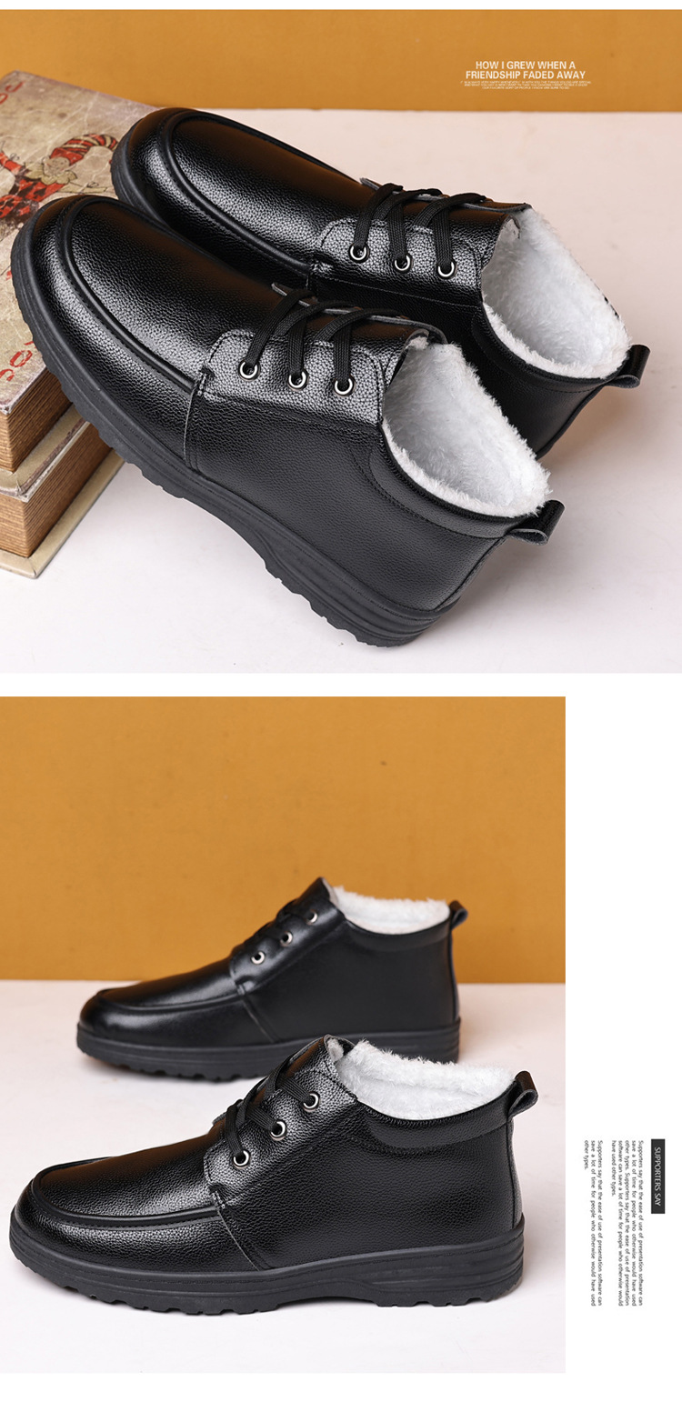 2023 Invierno cálido forrado de lana engrosada de los hombres zapatos de cuero casuales botas de algodón con cordones zapatos de algodón altos zapatos de mediana edad y ancianos