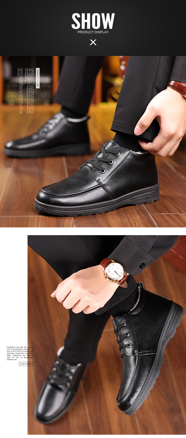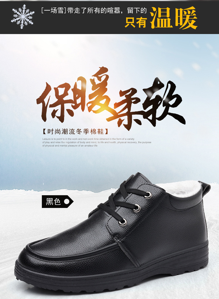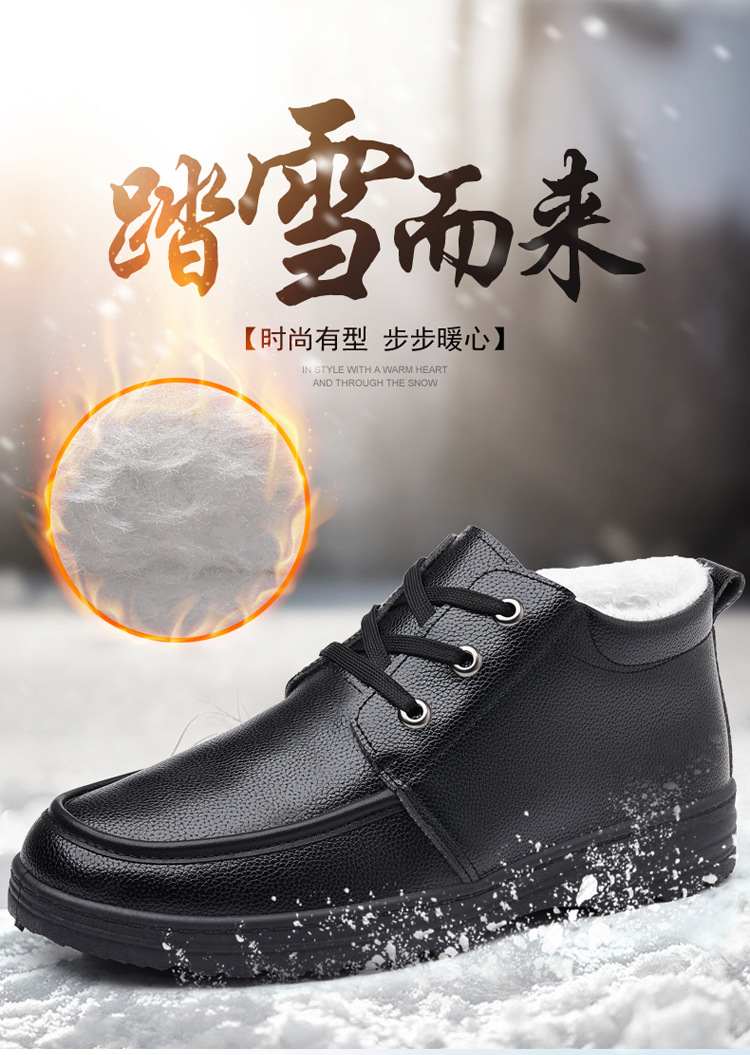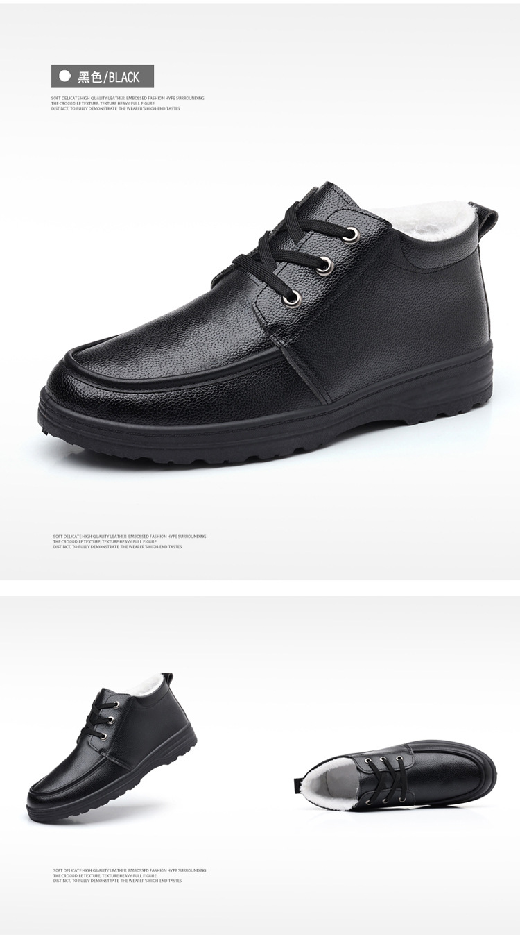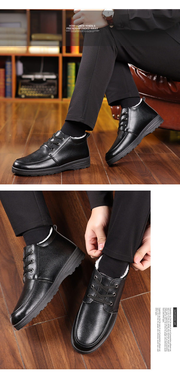 2023 Invierno cálido forrado de lana engrosada de los hombres zapatos de cuero casuales botas de algodón con cordones zapatos de algodón altos zapatos de mediana edad y ancianos