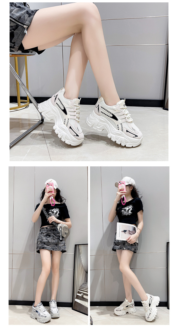 2025 nuevos zapatos de mujer de otoño de malla aumentan la altura de los zapatos deportivos pequeños de la explosión de zapatos de suela gruesa en línea super caliente