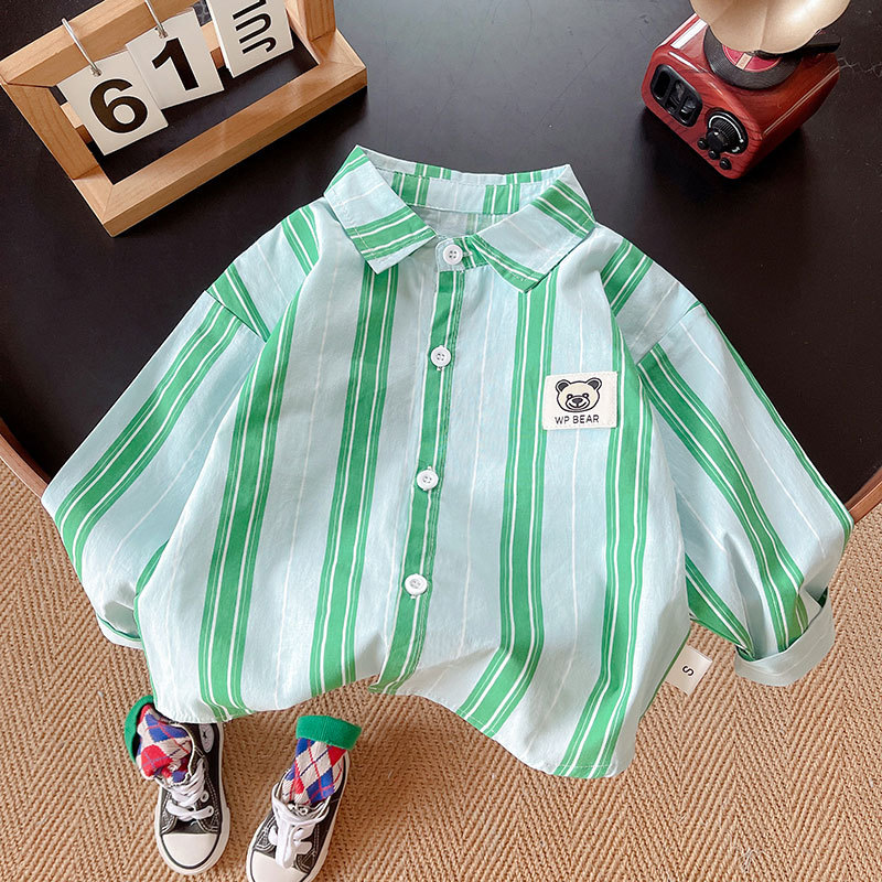 2025 otoño nueva ropa infantil para niños coreanos dibujos animados oso letras camisa chico guapo camisa a rayas abrigo