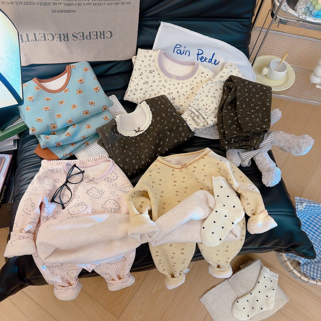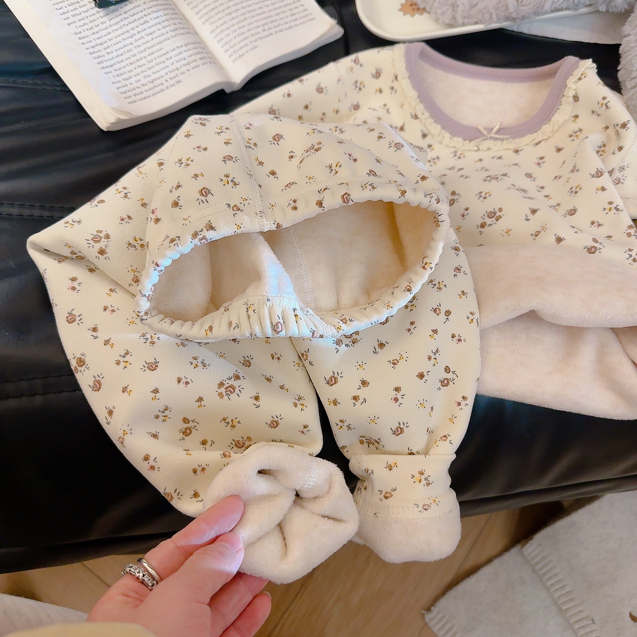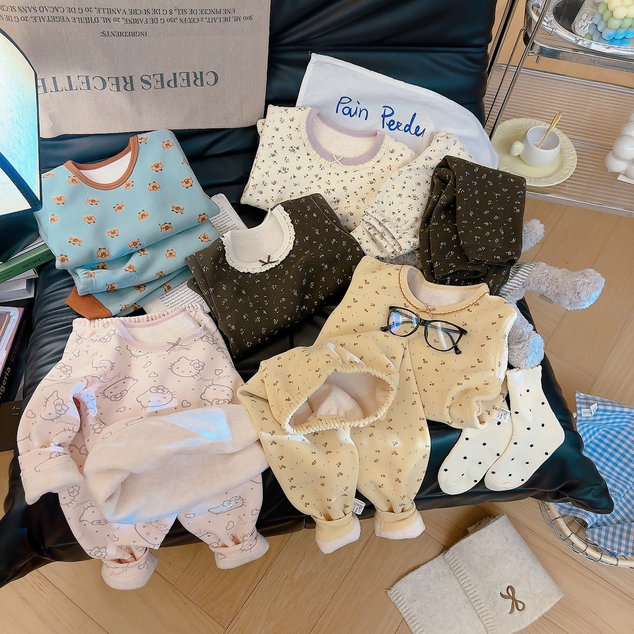 Su bebé, ropa interior cálida para niños, sin hueso, grueso 500g de lana, chaqueta de seda, pantalones de invierno, pijamas de invierno