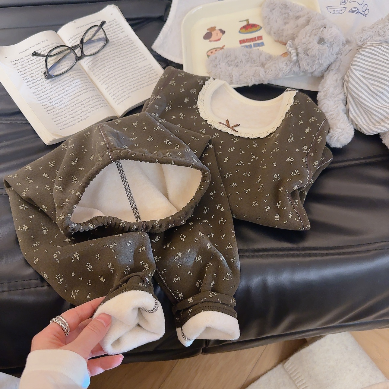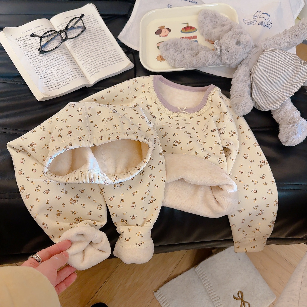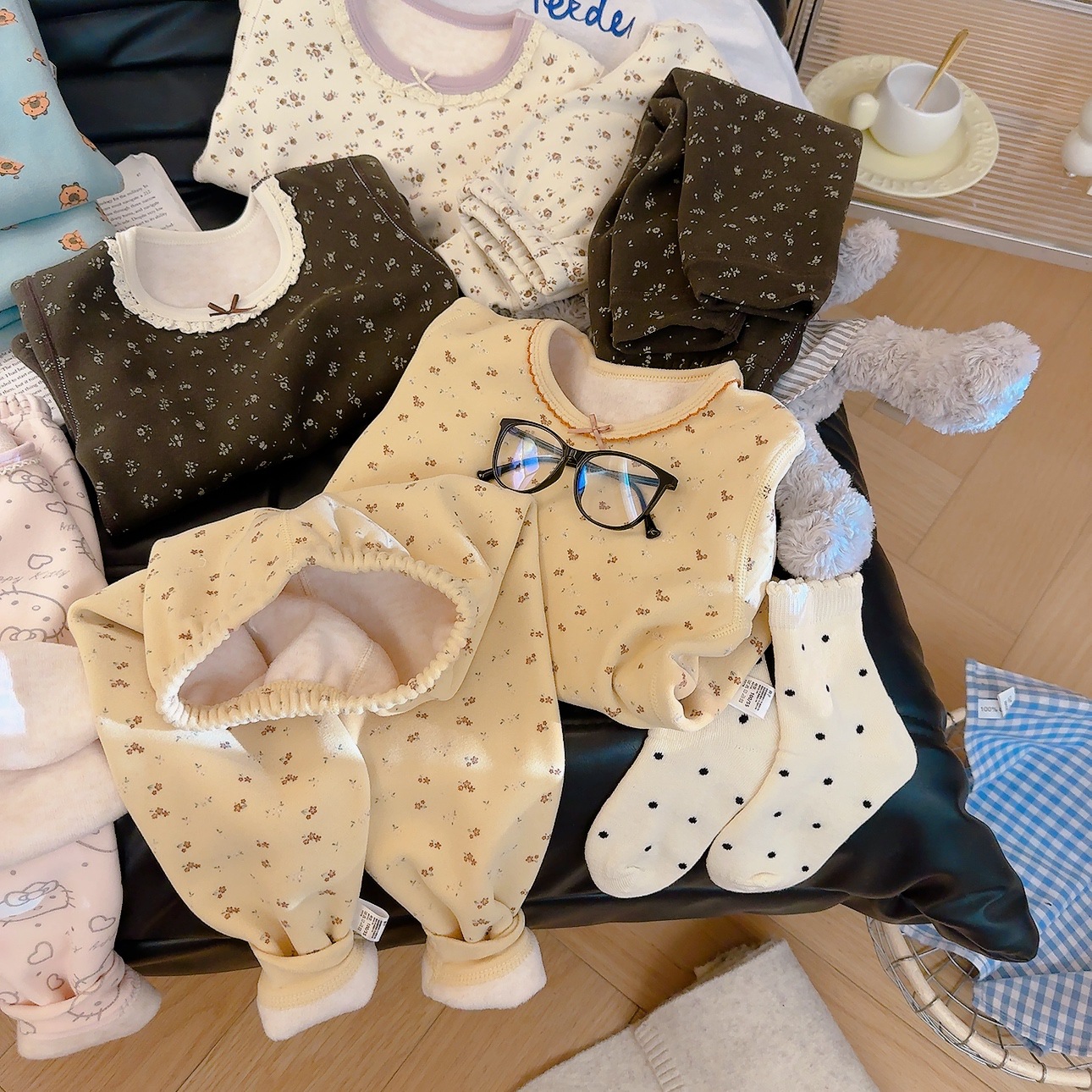 Su bebé, ropa interior cálida para niños, sin hueso, grueso 500g de lana, chaqueta de seda, pantalones de invierno, pijamas de invierno