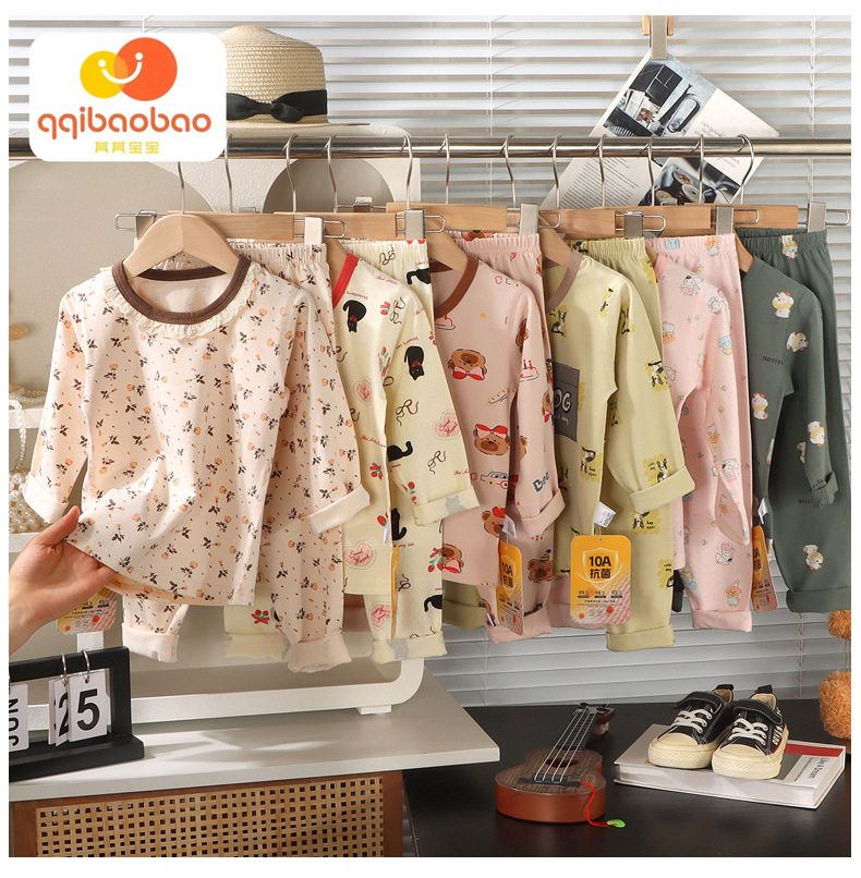 Pijamas infantiles, pantalones para bebés, dibujos animados, ropa para niños, pantalones de manga larga coreanos, set de cuello redondo para niños y niñas