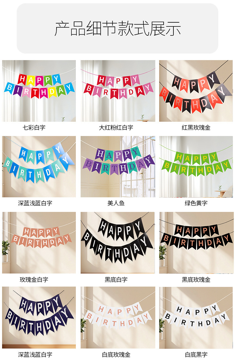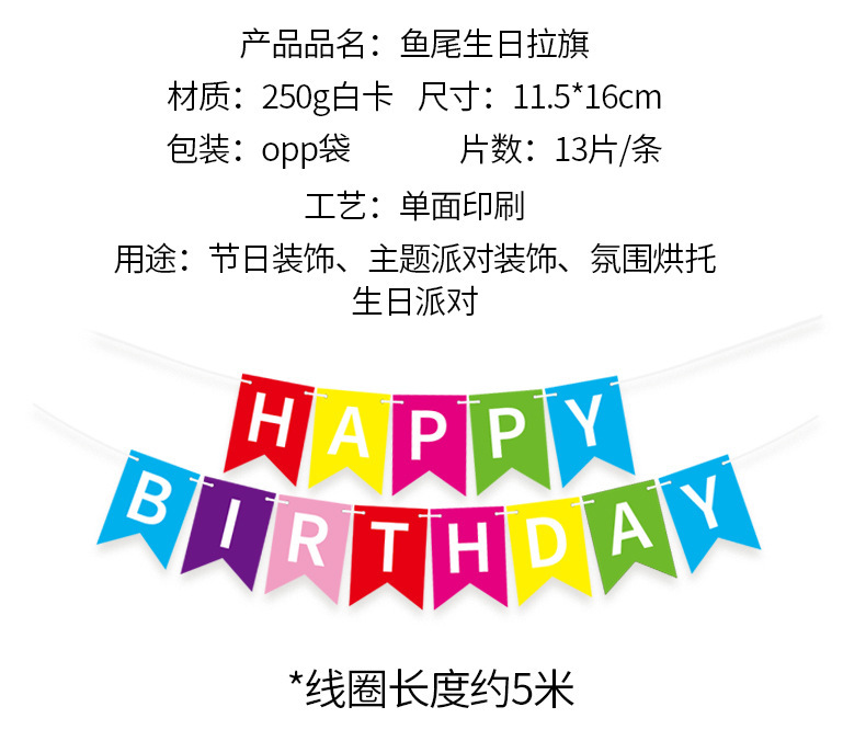 Feliz cumpleaños pequeña bandera de cola de golondrina niños letras felices cumpleaños bandera de cola de pescado artículos de decoración de fiesta
