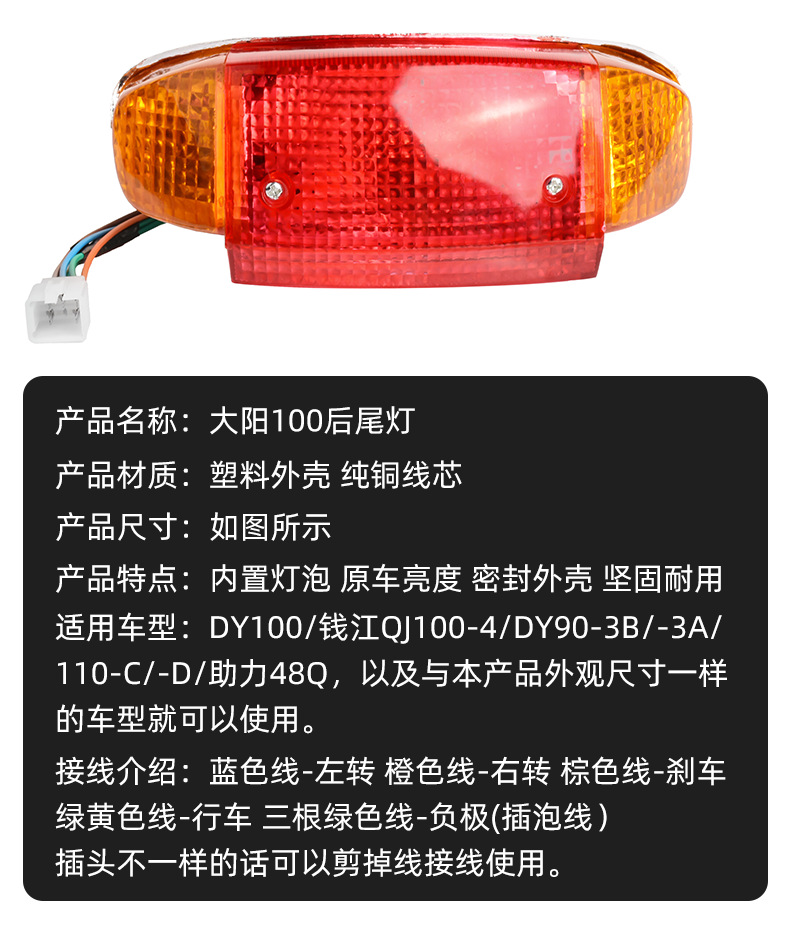 Daiyang 100 Zong Shen Qianjiang110 conjunto de luz trasera DY90 luz de freno asistida 48Q luz de dirección integrada