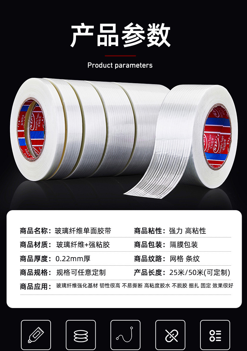 cinta adhesiva de fibra de vidrio unilateral estriada malla industrial de alta viscosidad batería de litio electrodomésticos refrigerador modelo de avión modelo de avión