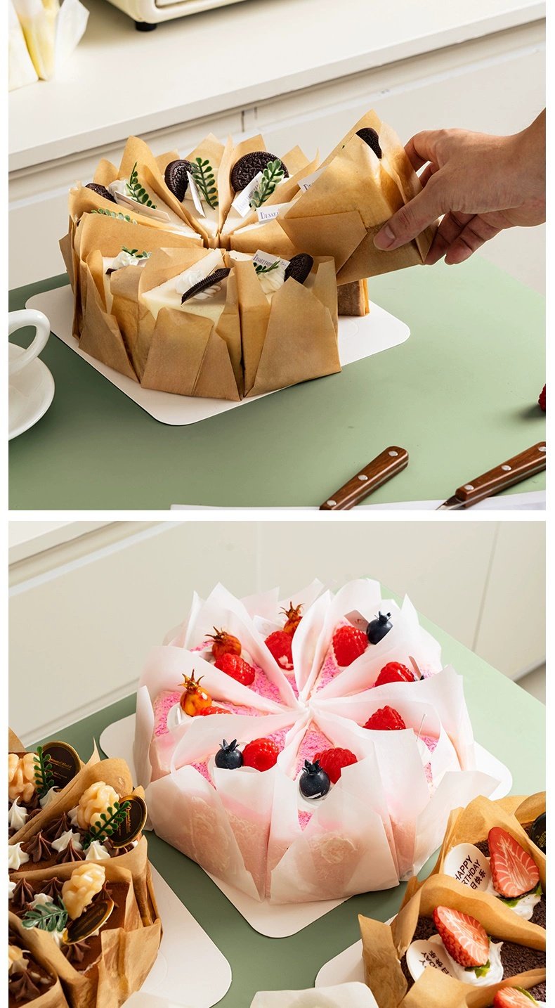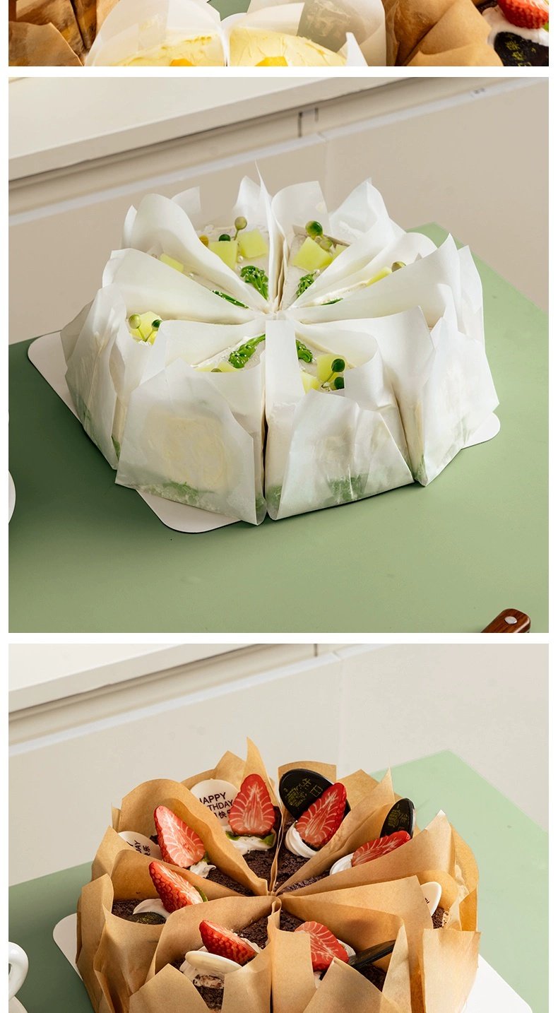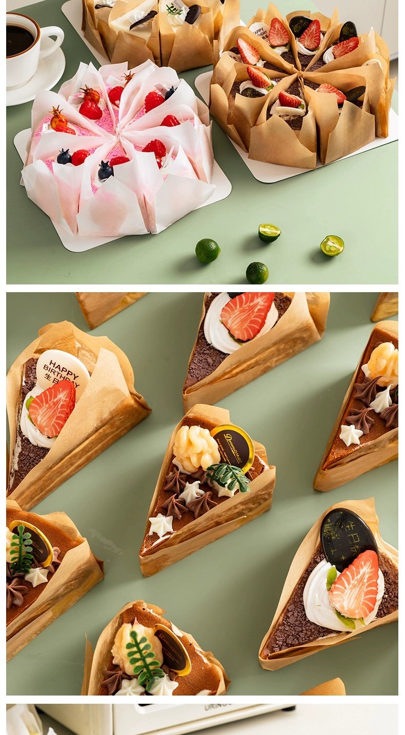 Caja de embalaje de papel de aceite para pastel cortado, papel de postre de borde de corte, caja de embalaje de soda tirami, papel de embalaje a prueba de aceite para hornear
