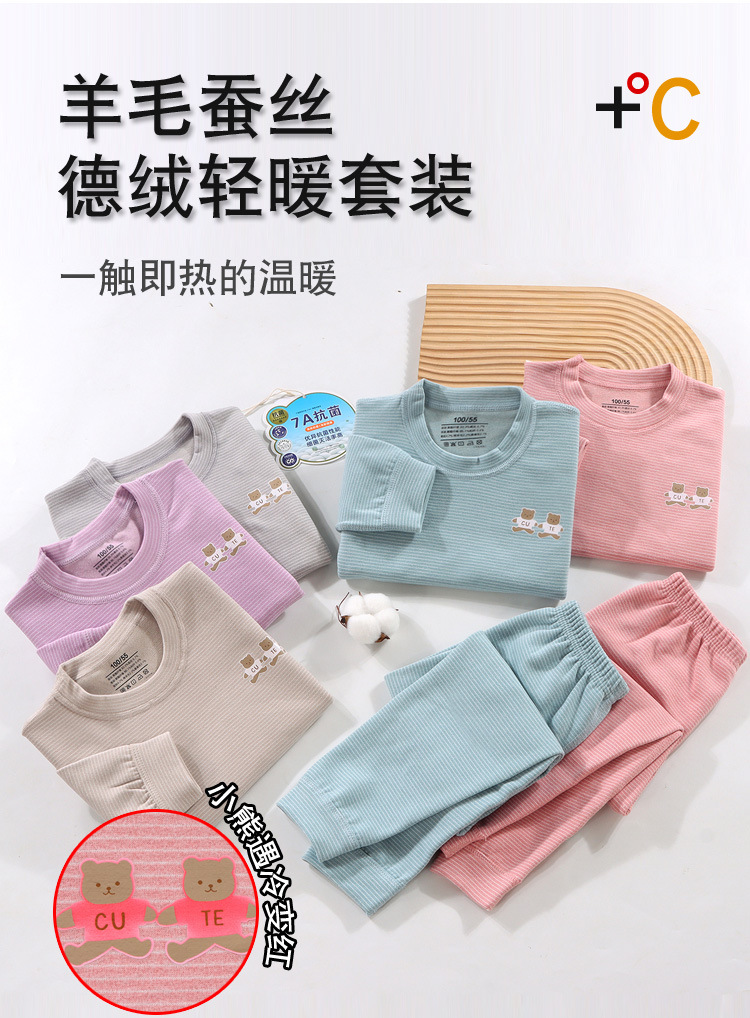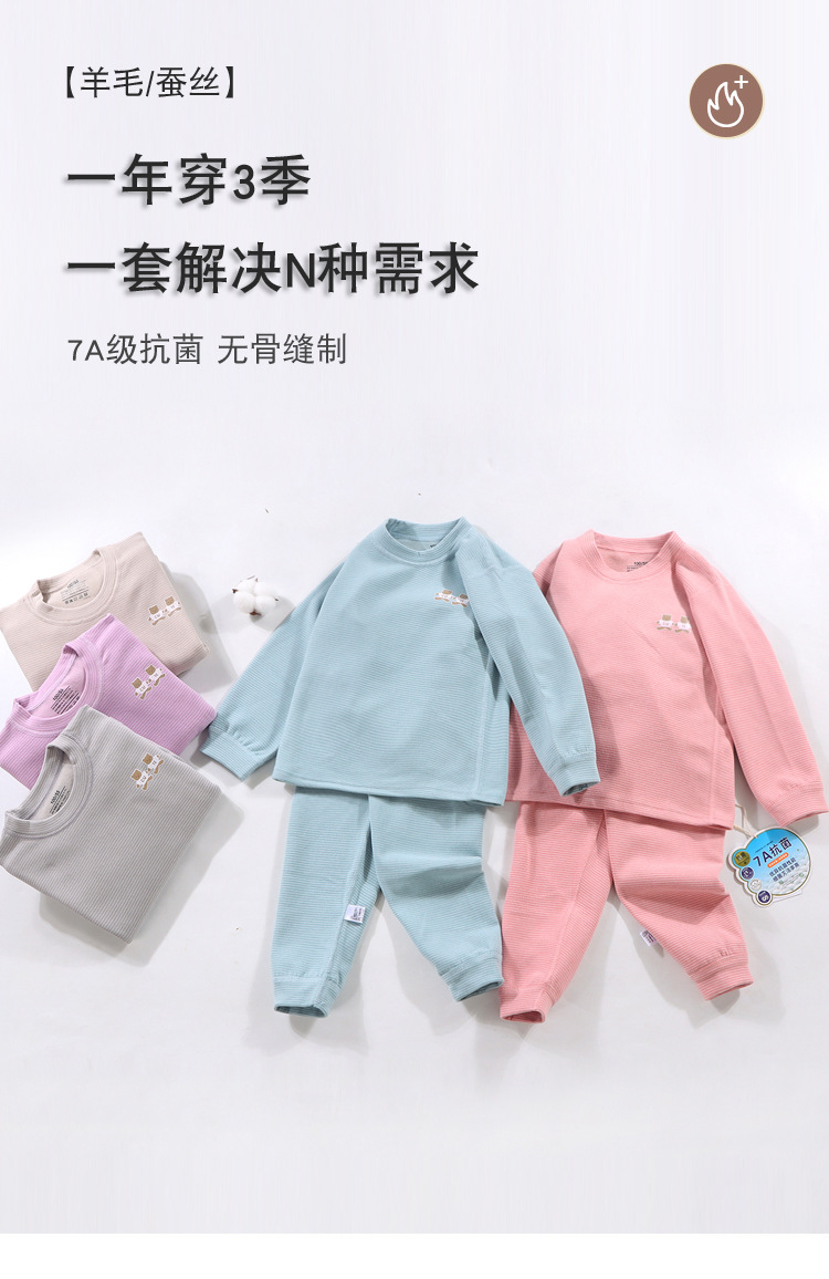 Pijama infantil de otoño y invierno para bebés con ropa interior de seda de lana sin hueso gruesa para niños de mediano tamaño