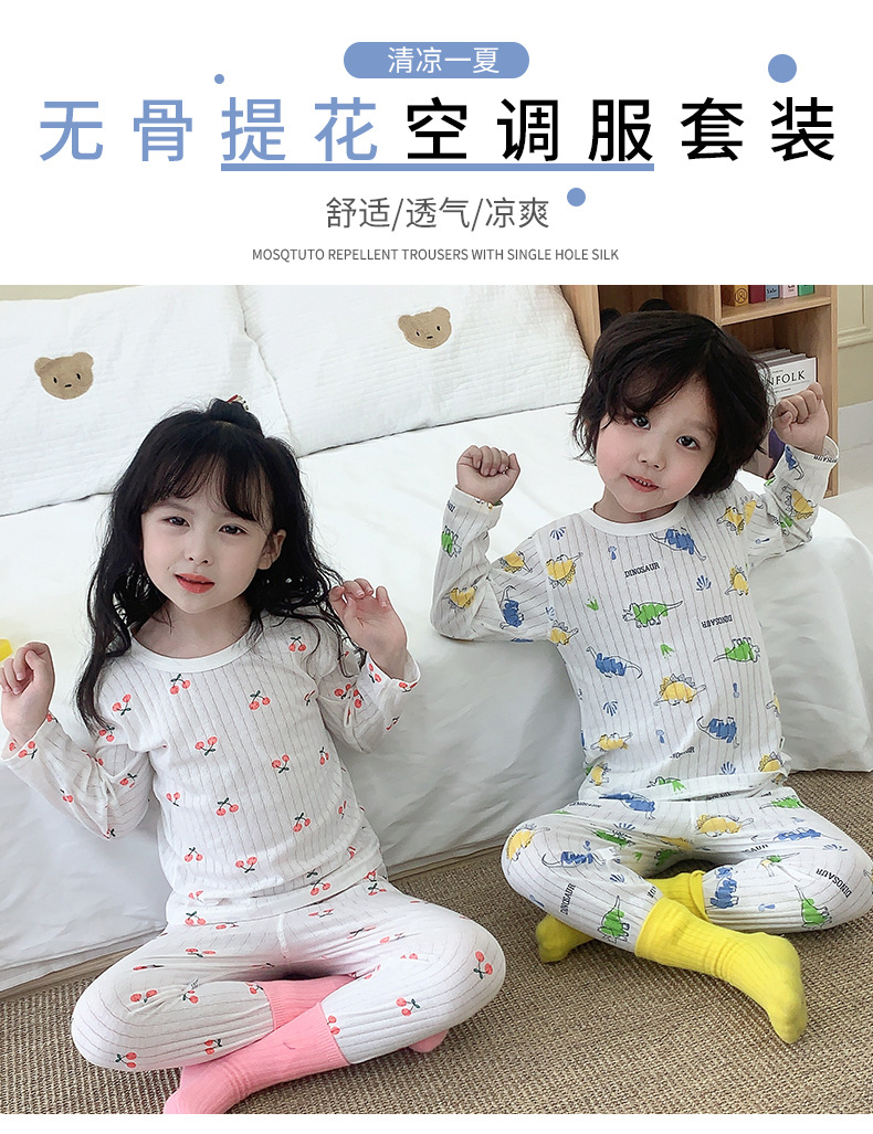 Pijamas para niños, de verano, finos, de algodón puro, ropa transpirable de algodón para aire acondicionado para niños y niñas, conjunto de ropa de casa de manga larga para bebés, transpirable