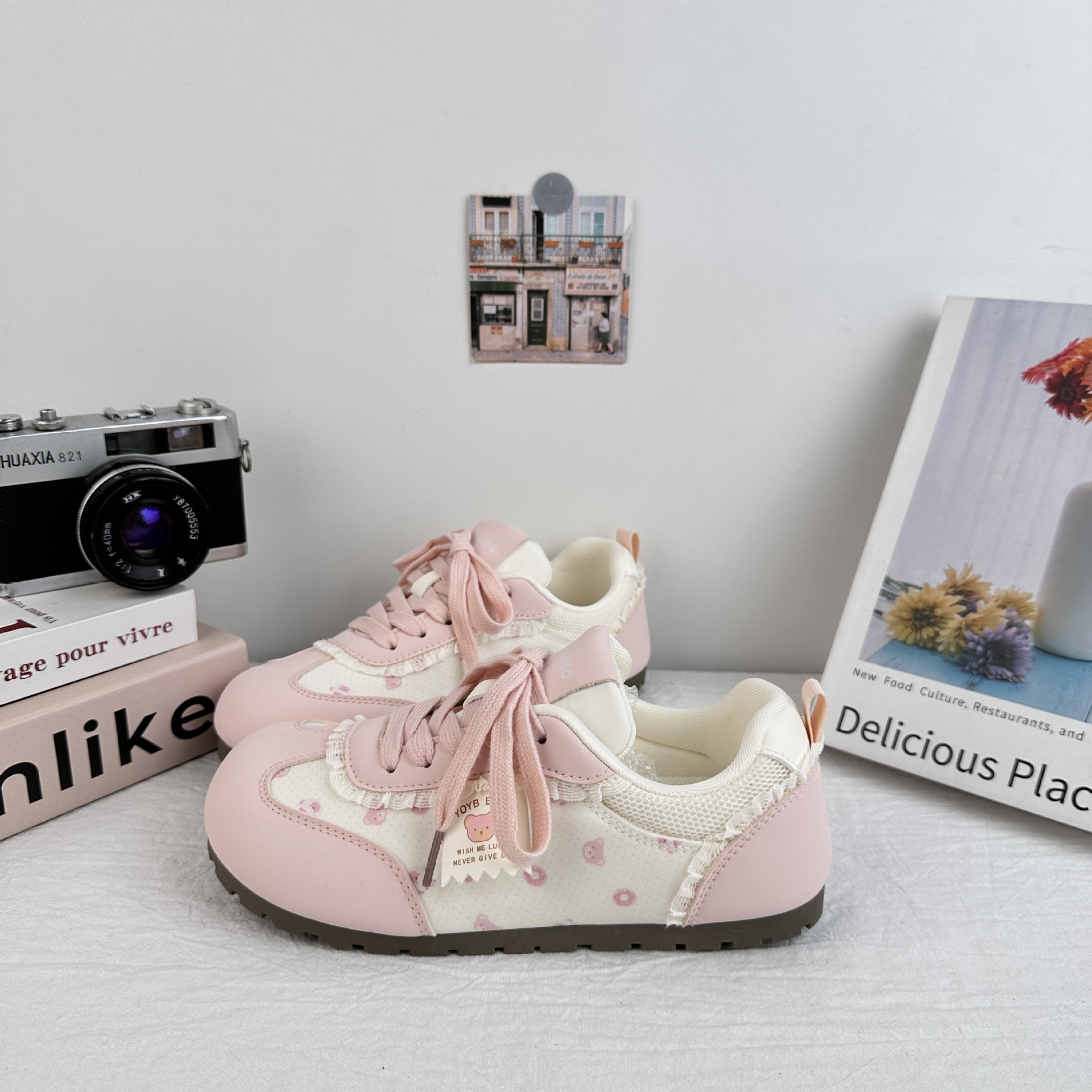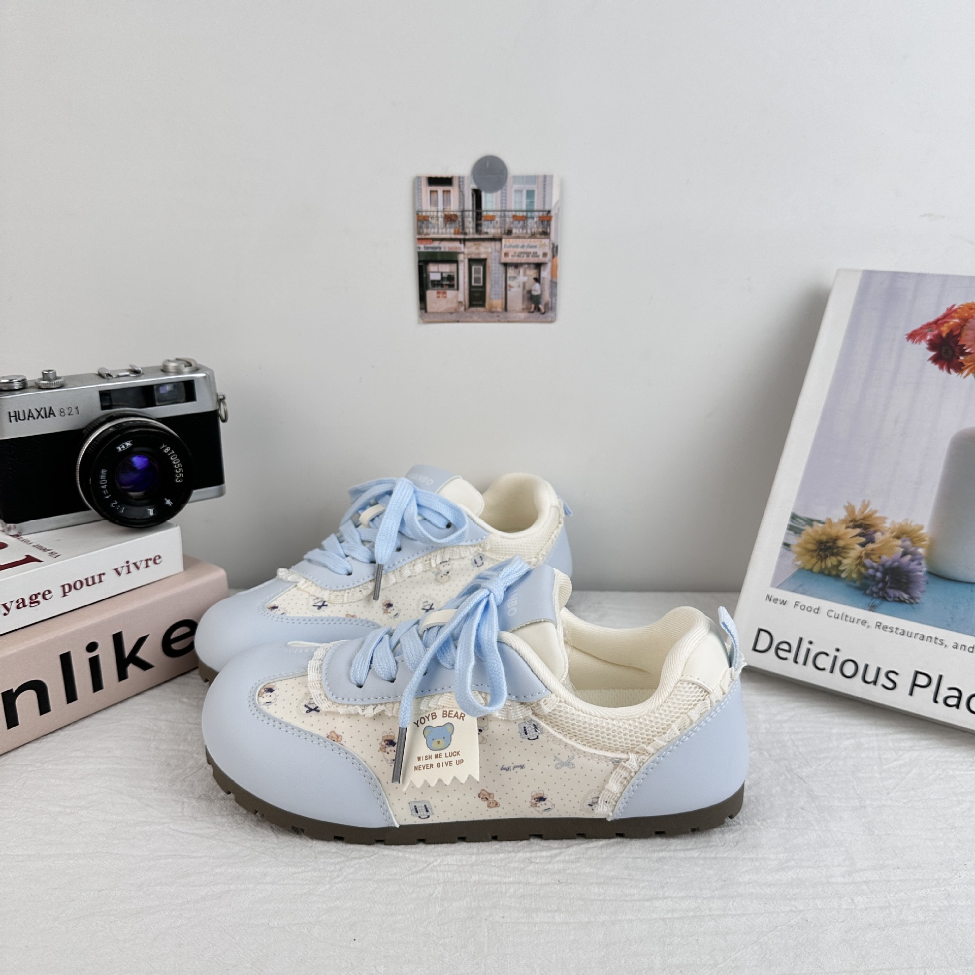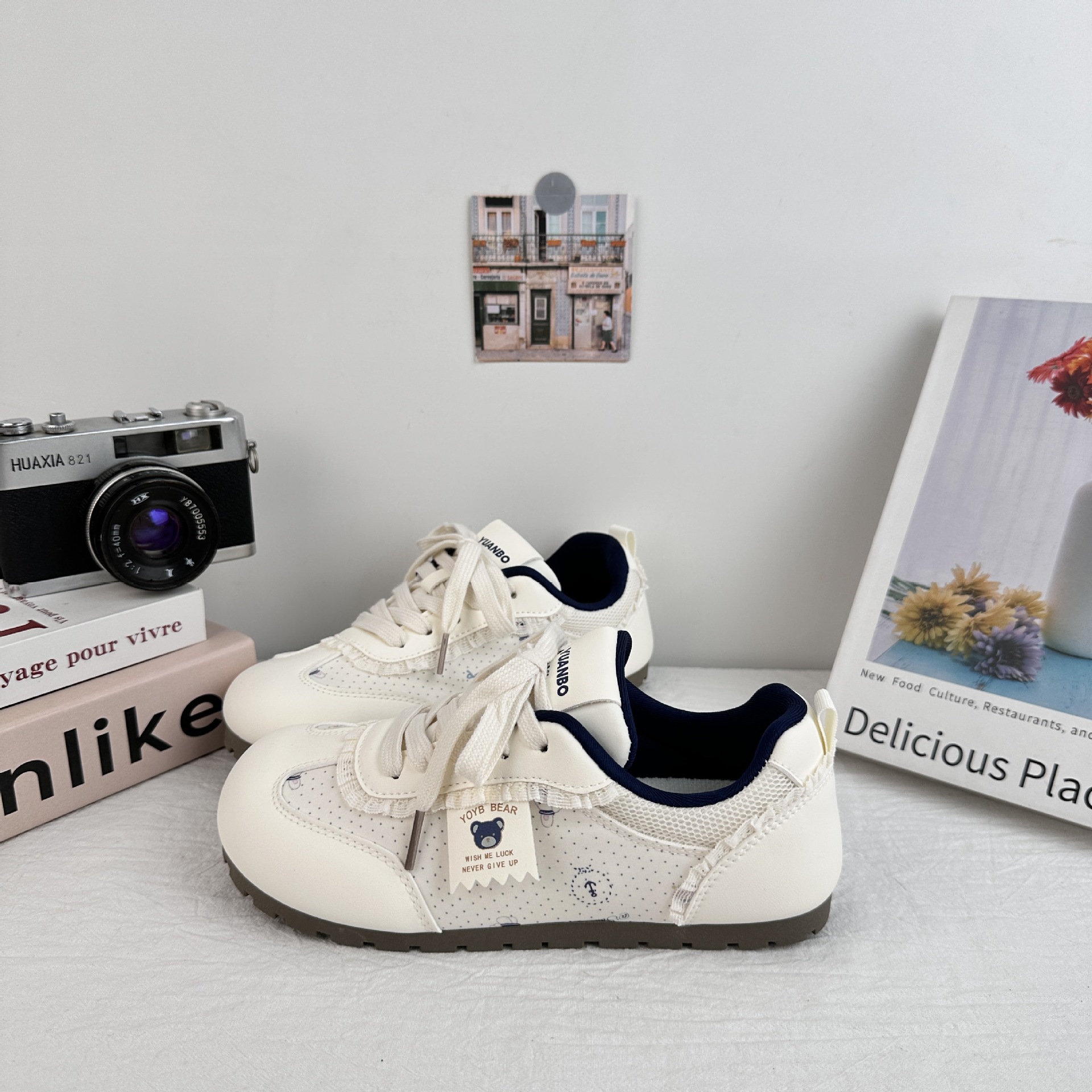 Yuanbo zapatos blancos para mujeres 2025, verano nuevo oso impresión de zapatos de entrenamiento, zapatos de skate casuales, zapatos de pan de cabello