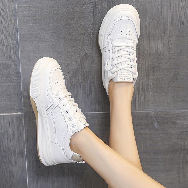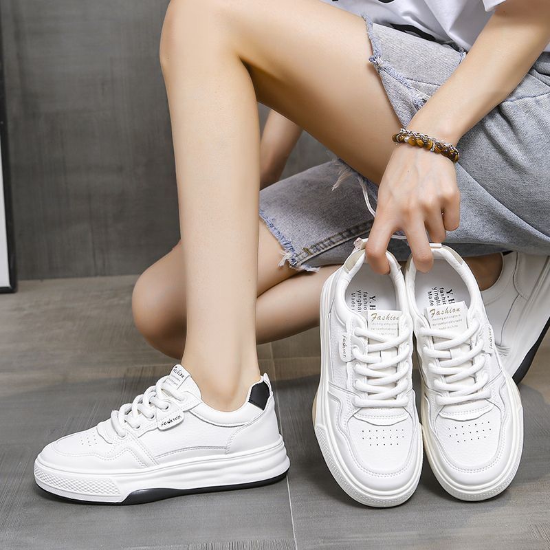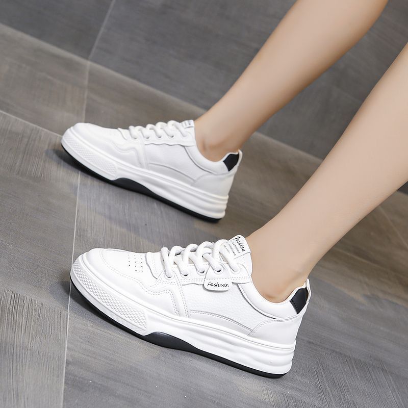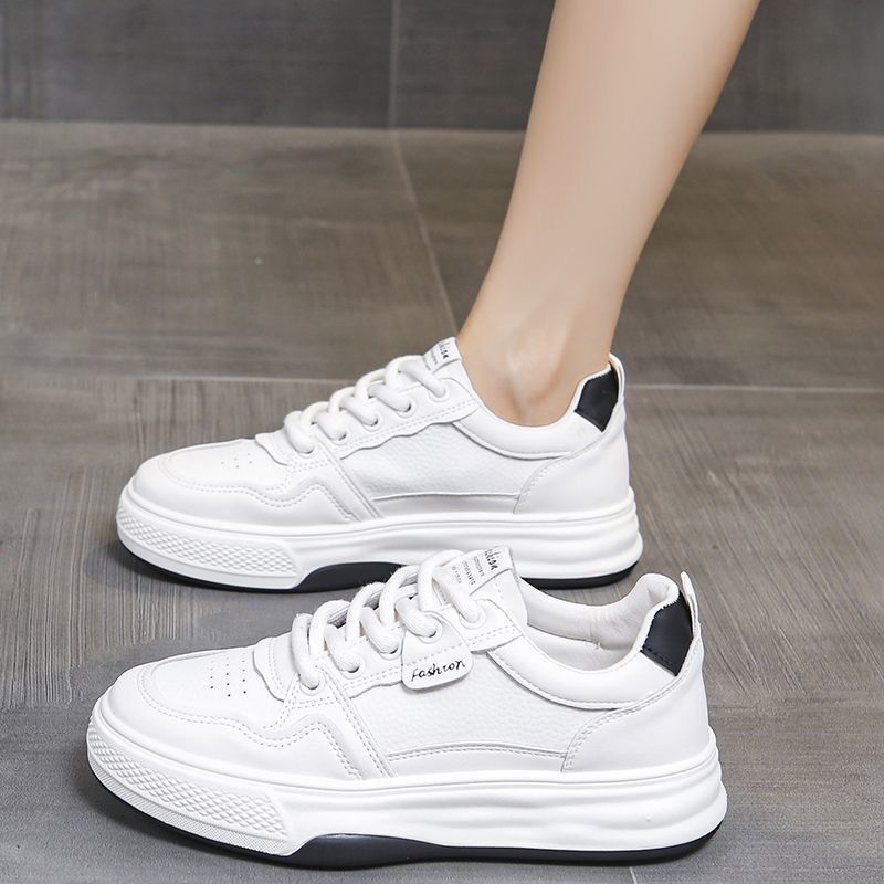 Zapatos blancos ligeros y resistentes al desgaste de fondo plano, zapatos de deporte de primavera y otoño, nuevos zapatos de mujer de suela blanda deportiva casual transpirable de todo fósforo 2025
