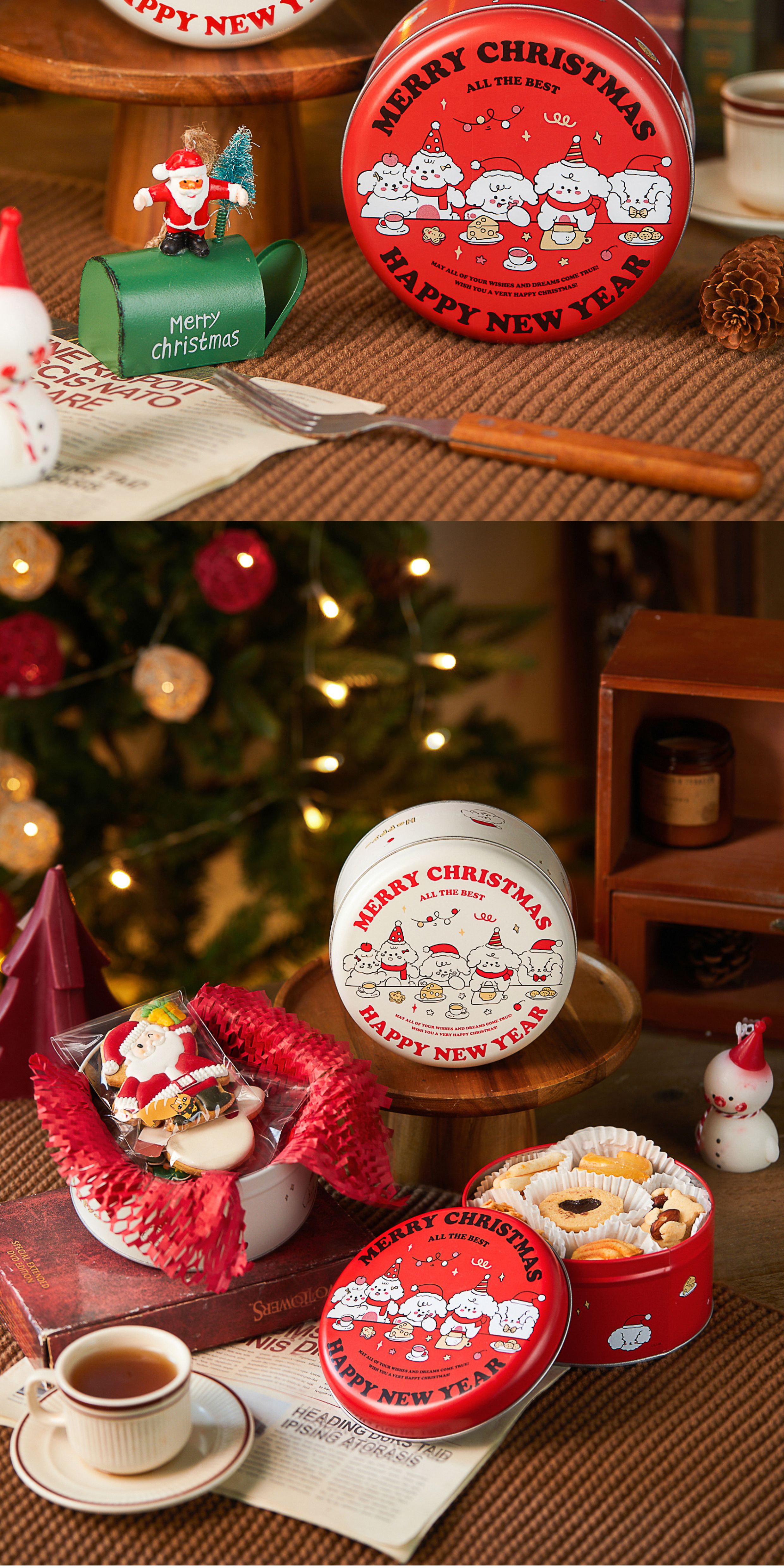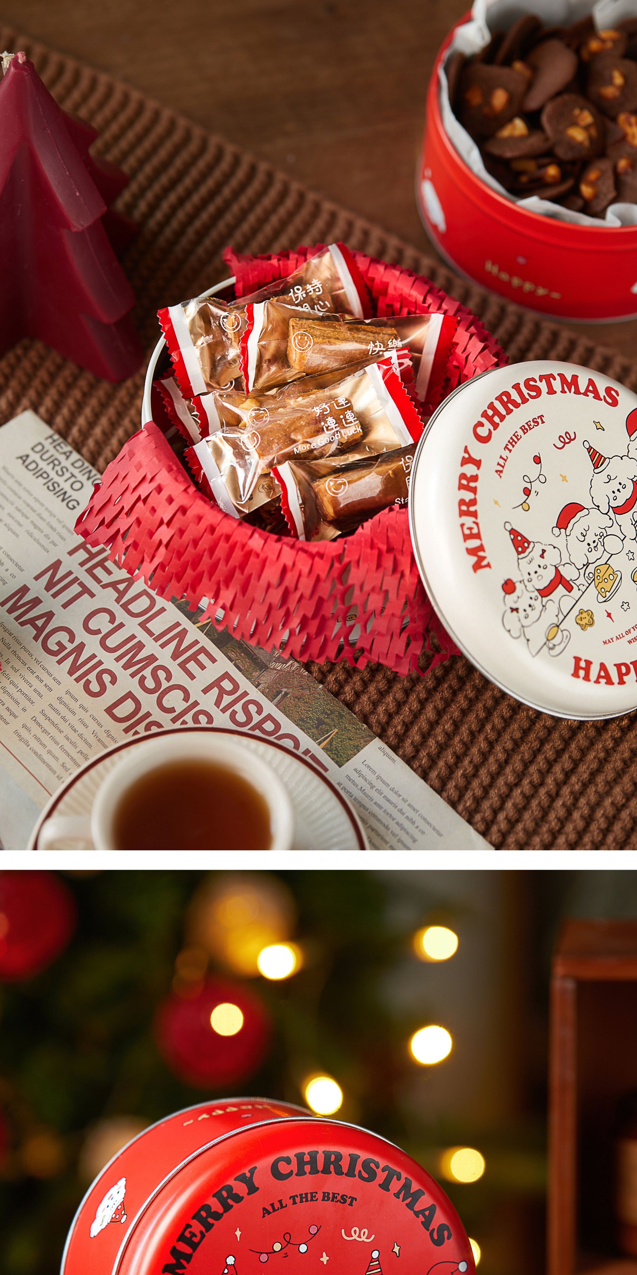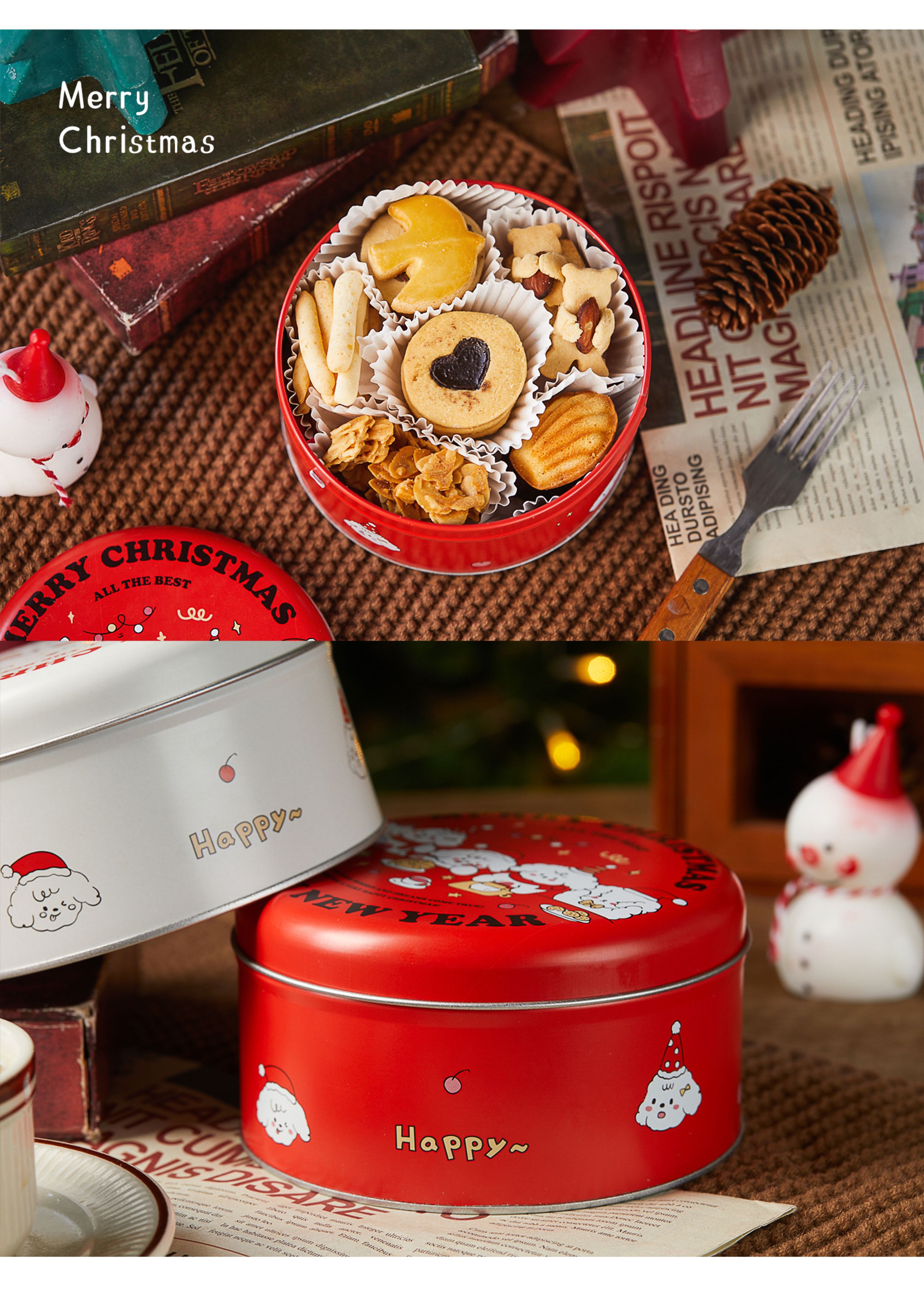 Navidad creativa galletas de cacao croquete cajas de embalaje de caramelo taffy tortilla de nieve redonda caja de hierro