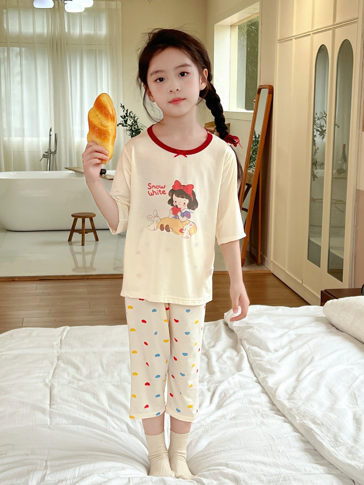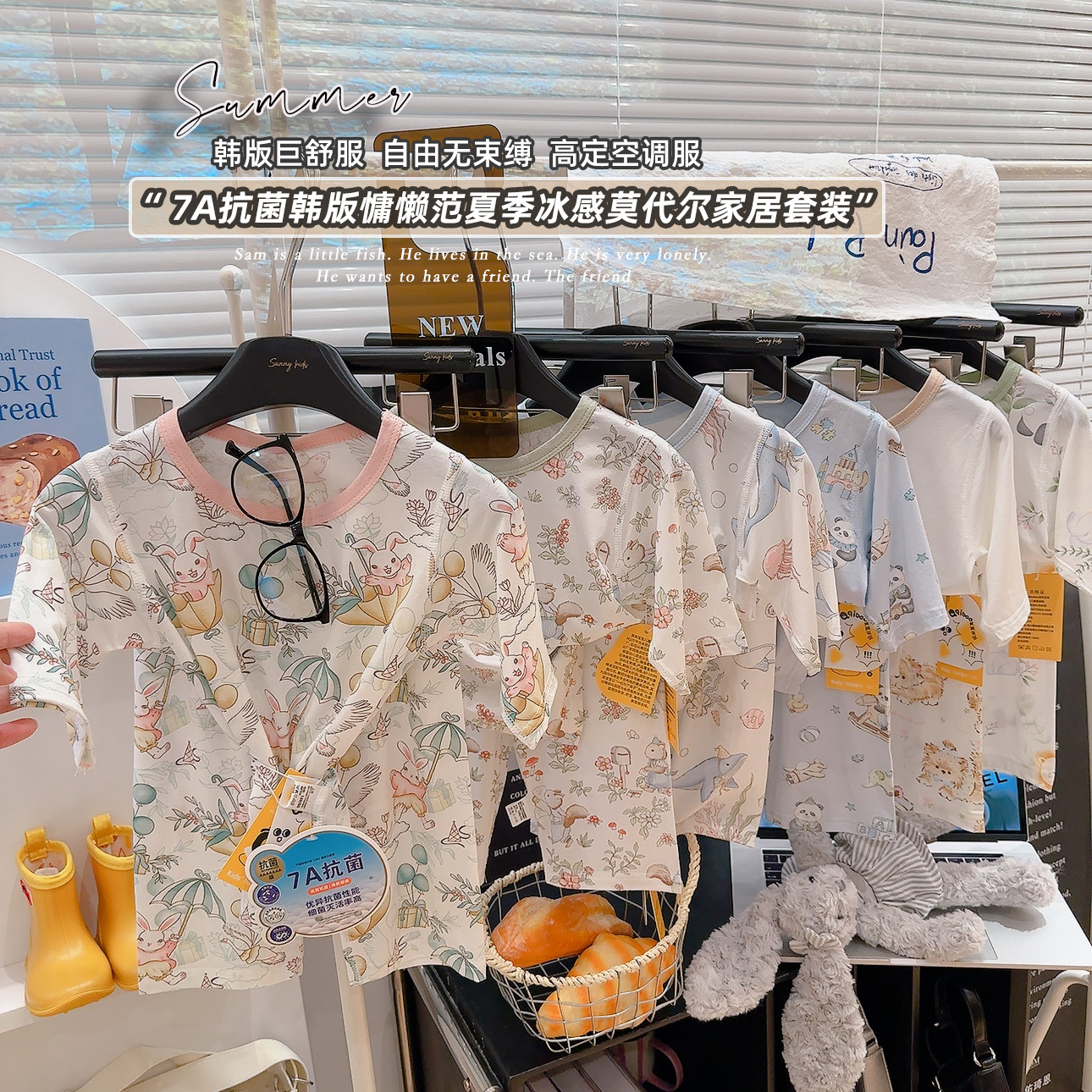 Pijamas para niños, traje de manga tres cuartos de Yasser, ropa de aire acondicionado para bebés de encaje fino de verano