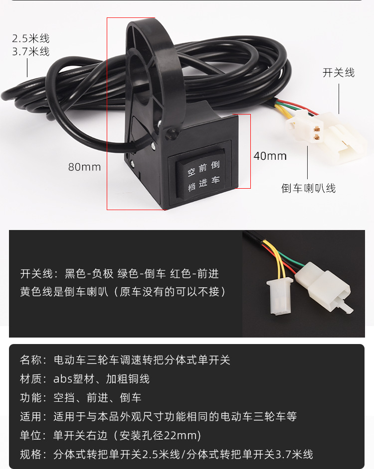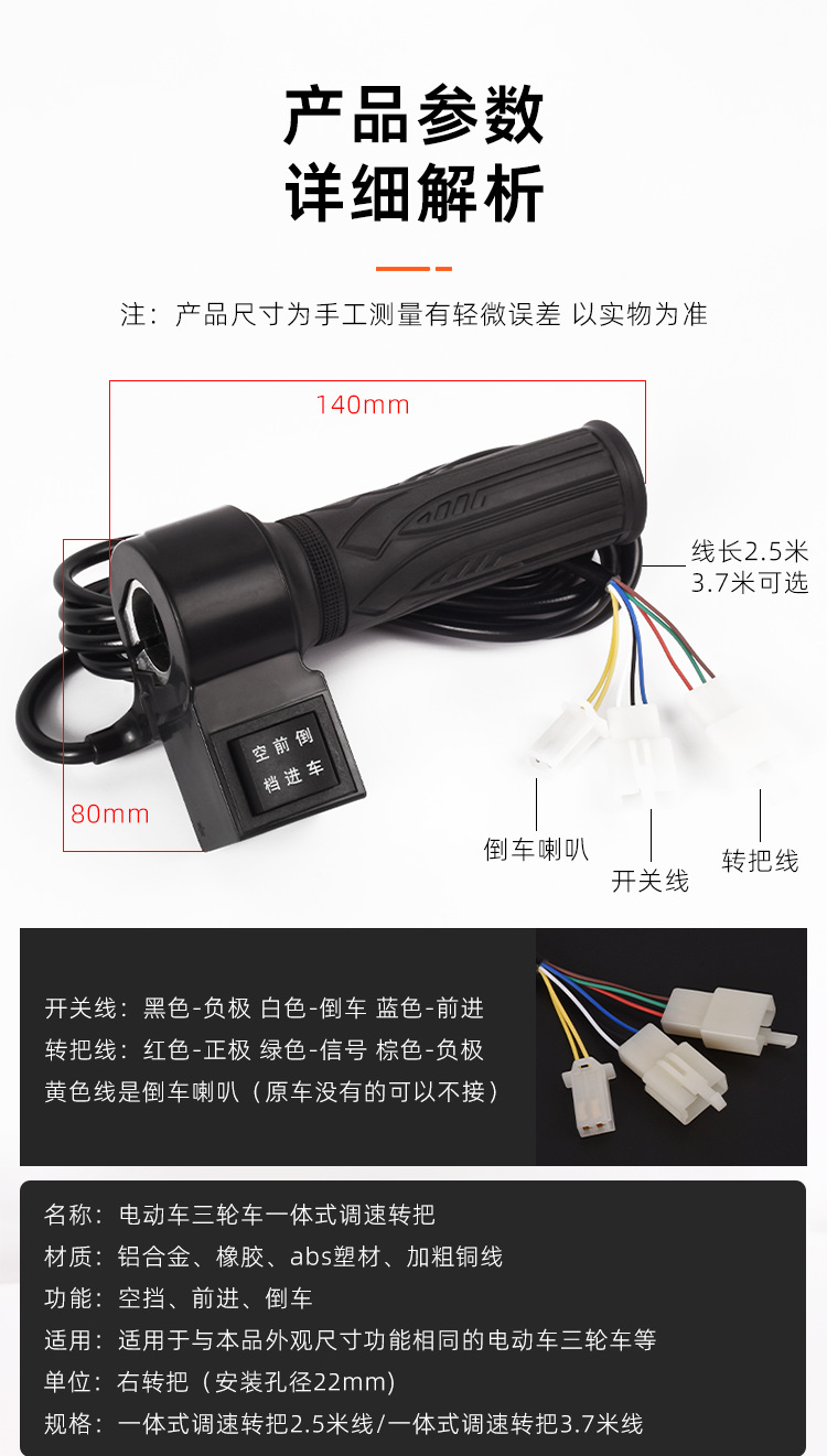 Manilla general del triciclo eléctrico, acelerador hacia adelante y hacia atrás, acelerador, acelerador de combustible, accesorios de manilla de ajuste de velocidad