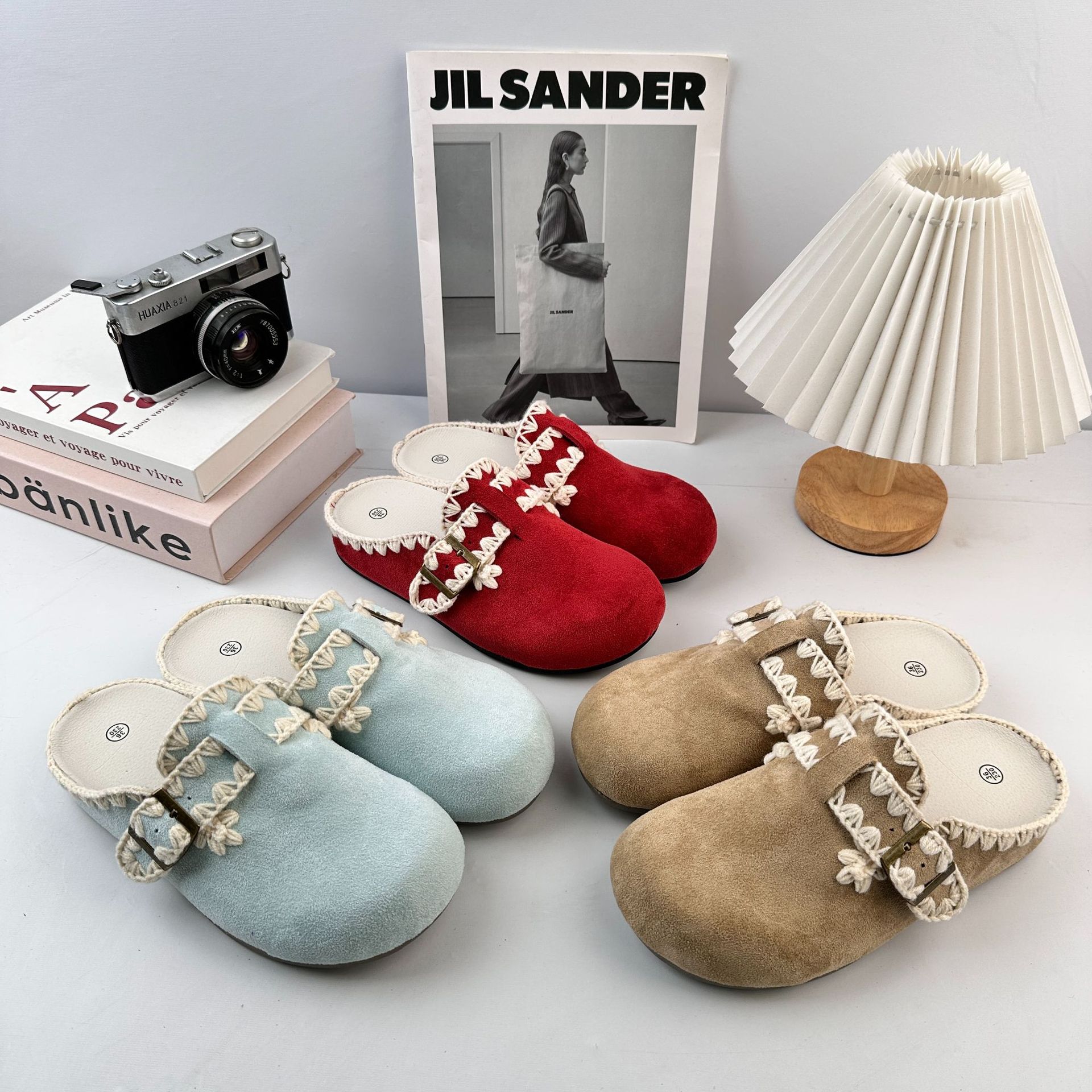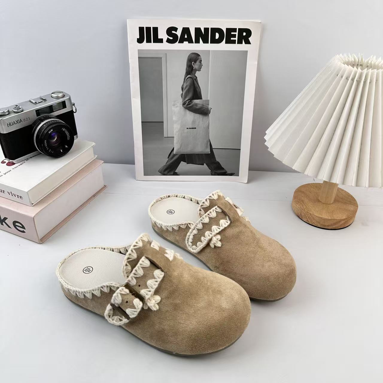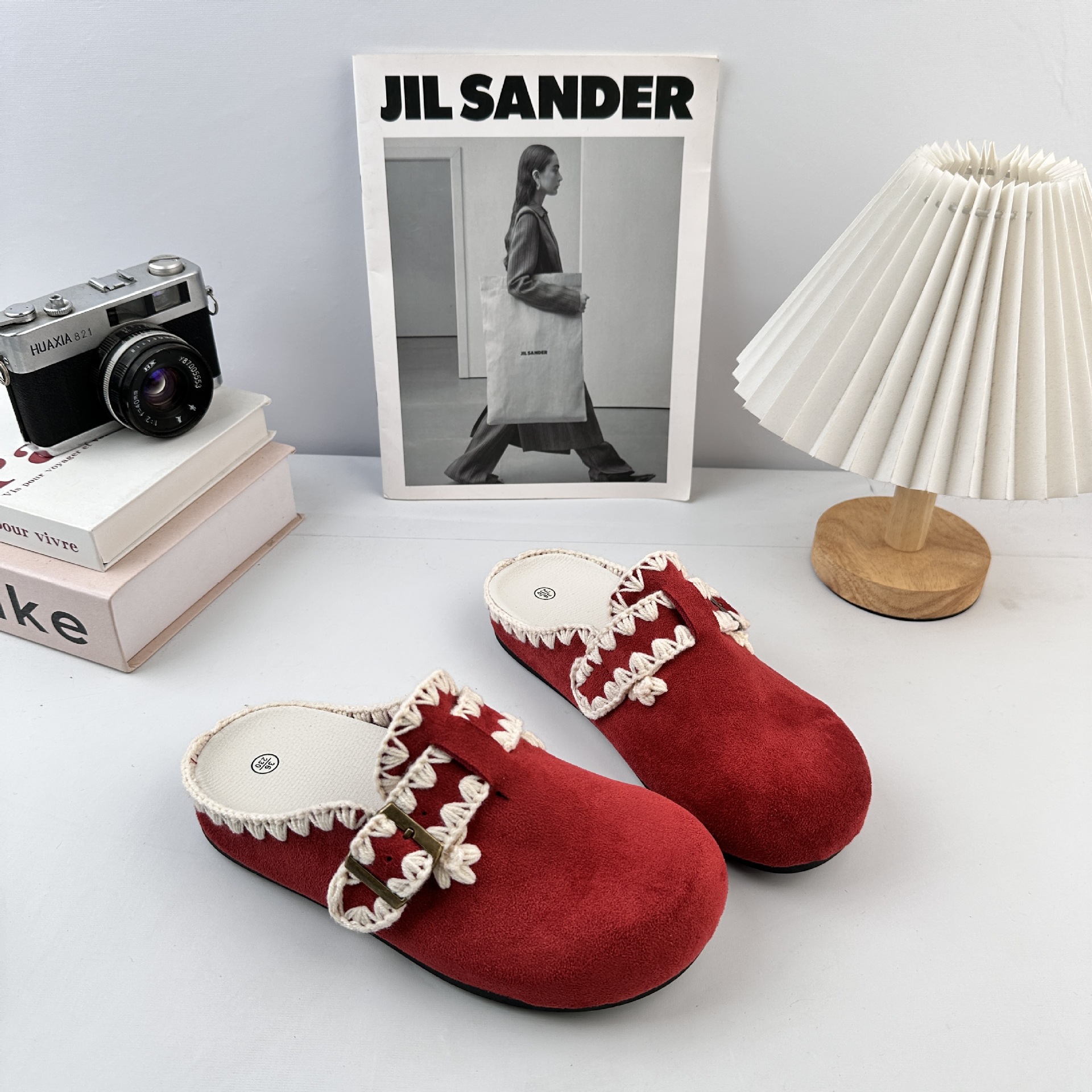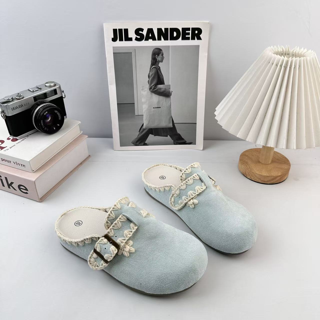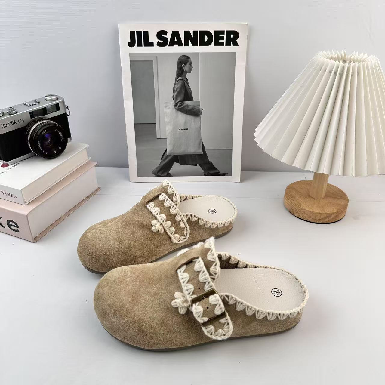 Yuanyang wave casual versátil un pie pedaleo 2025 otoño y verano nuevo tipo de bolsas de vestir, cinturón de cinturón, botones de moda, zapatillas de cabello