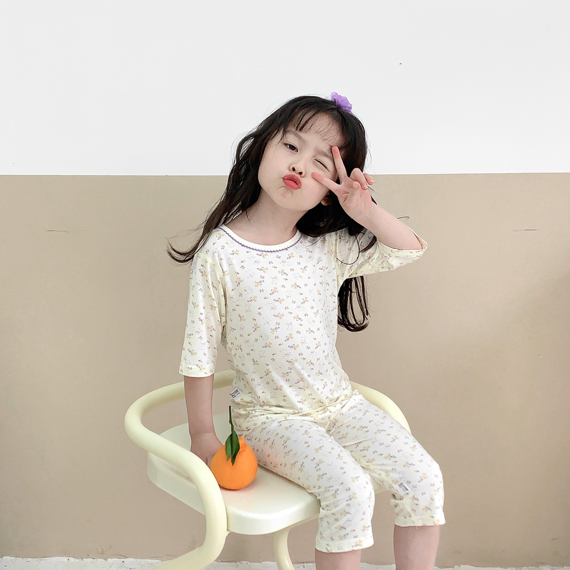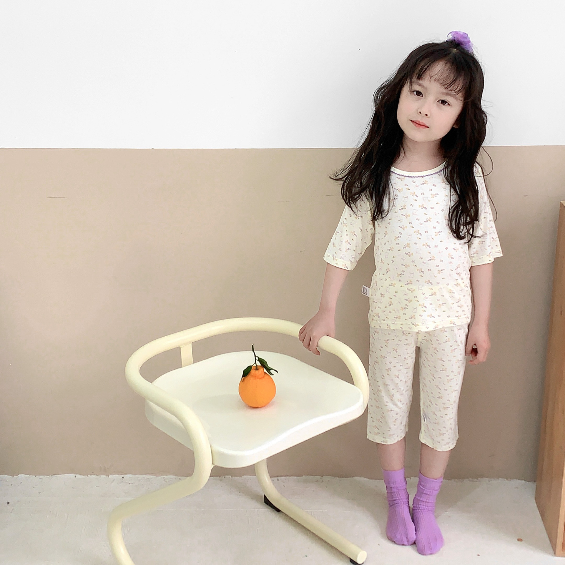 Pijamas para niños verano estilo fino Yasser niño manga tres cuartos encaje bebé aire acondicionado ropa traje de servicio a domicilio para niñas