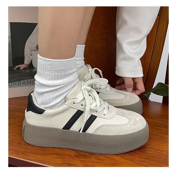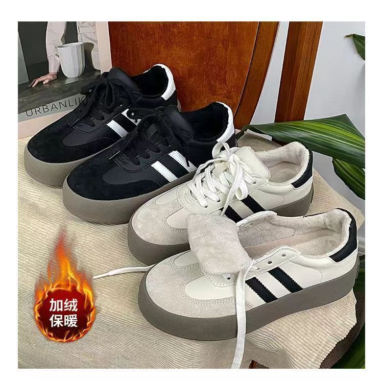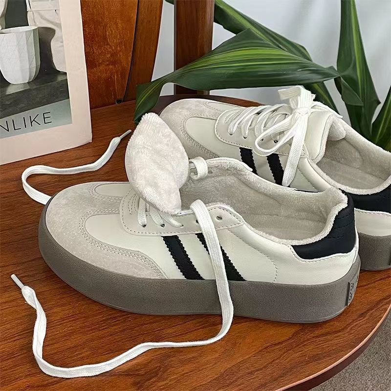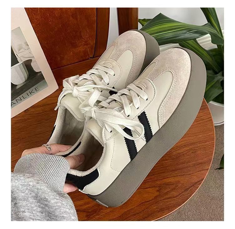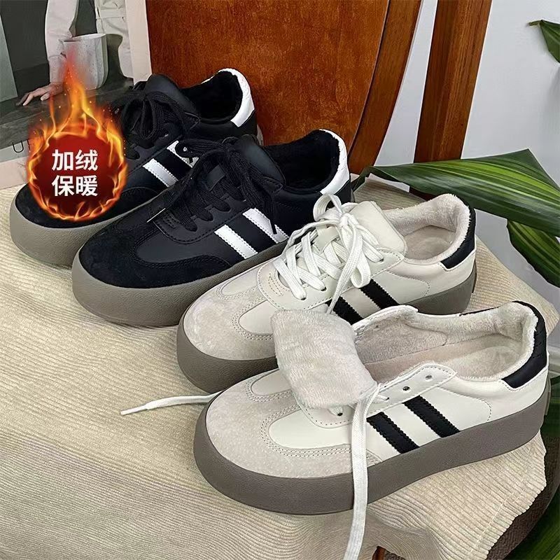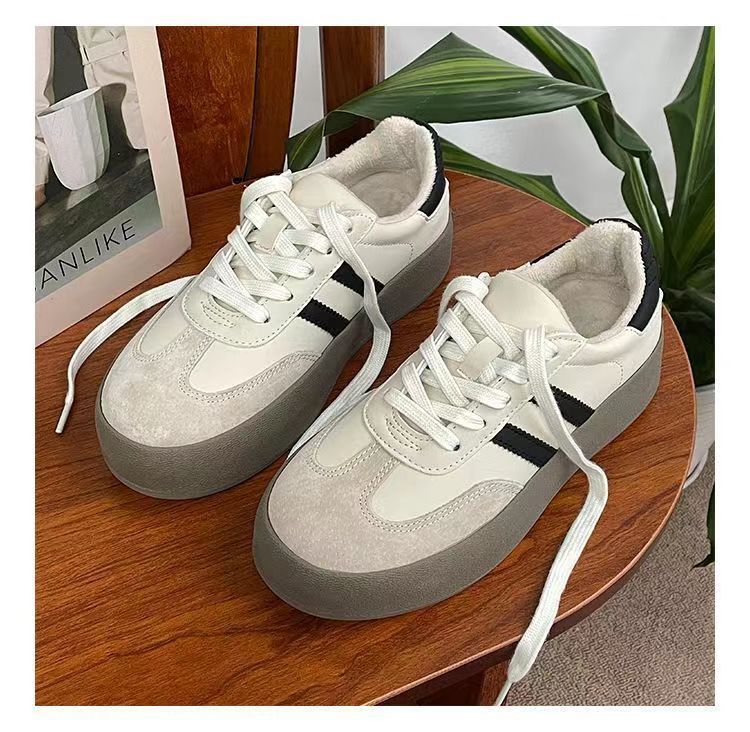 Zapatos de entrenamiento de invierno 2025 nuevos zapatos de mujer cómodos, zapatos casuales de skate retro de altura gruesa zapatos blancos pequeños