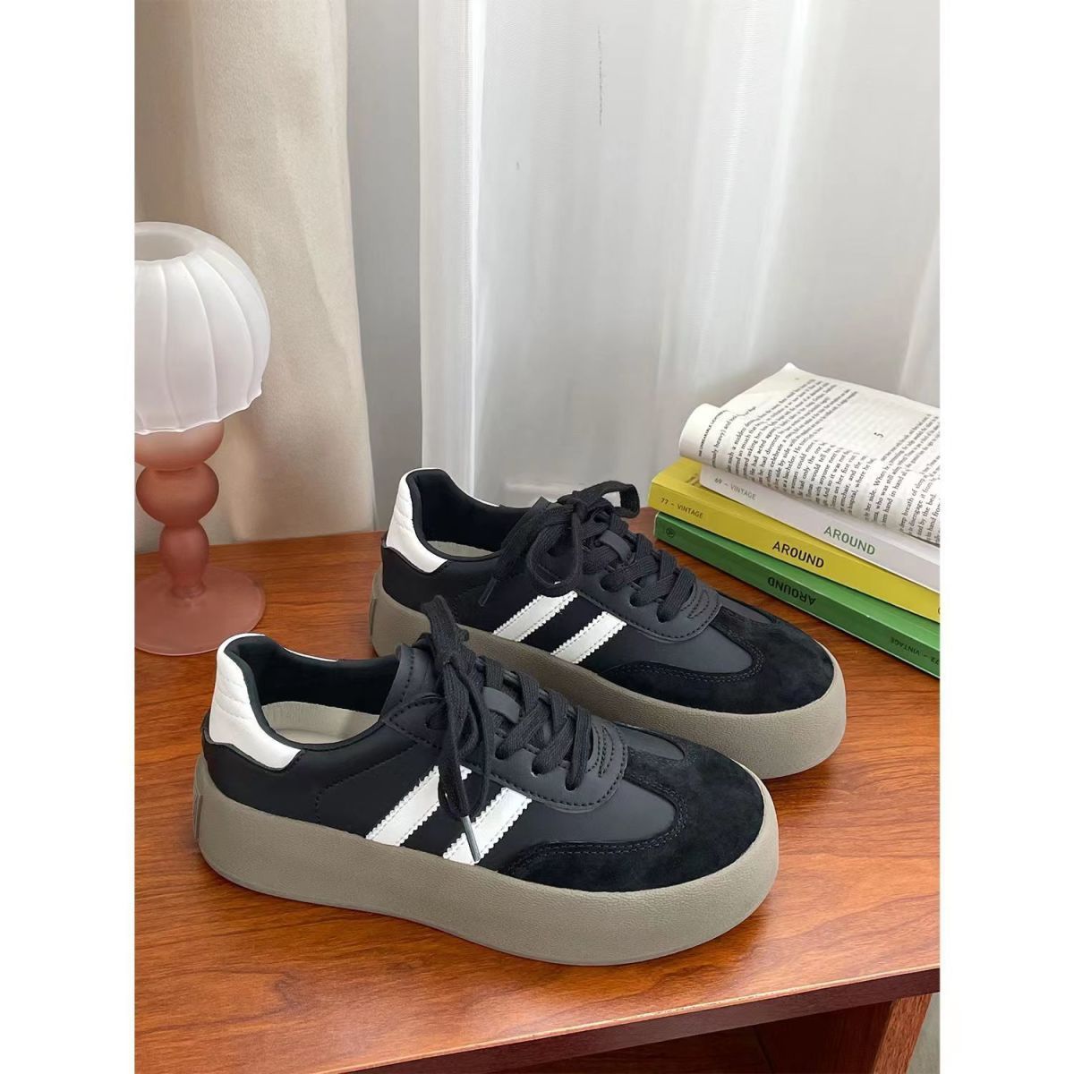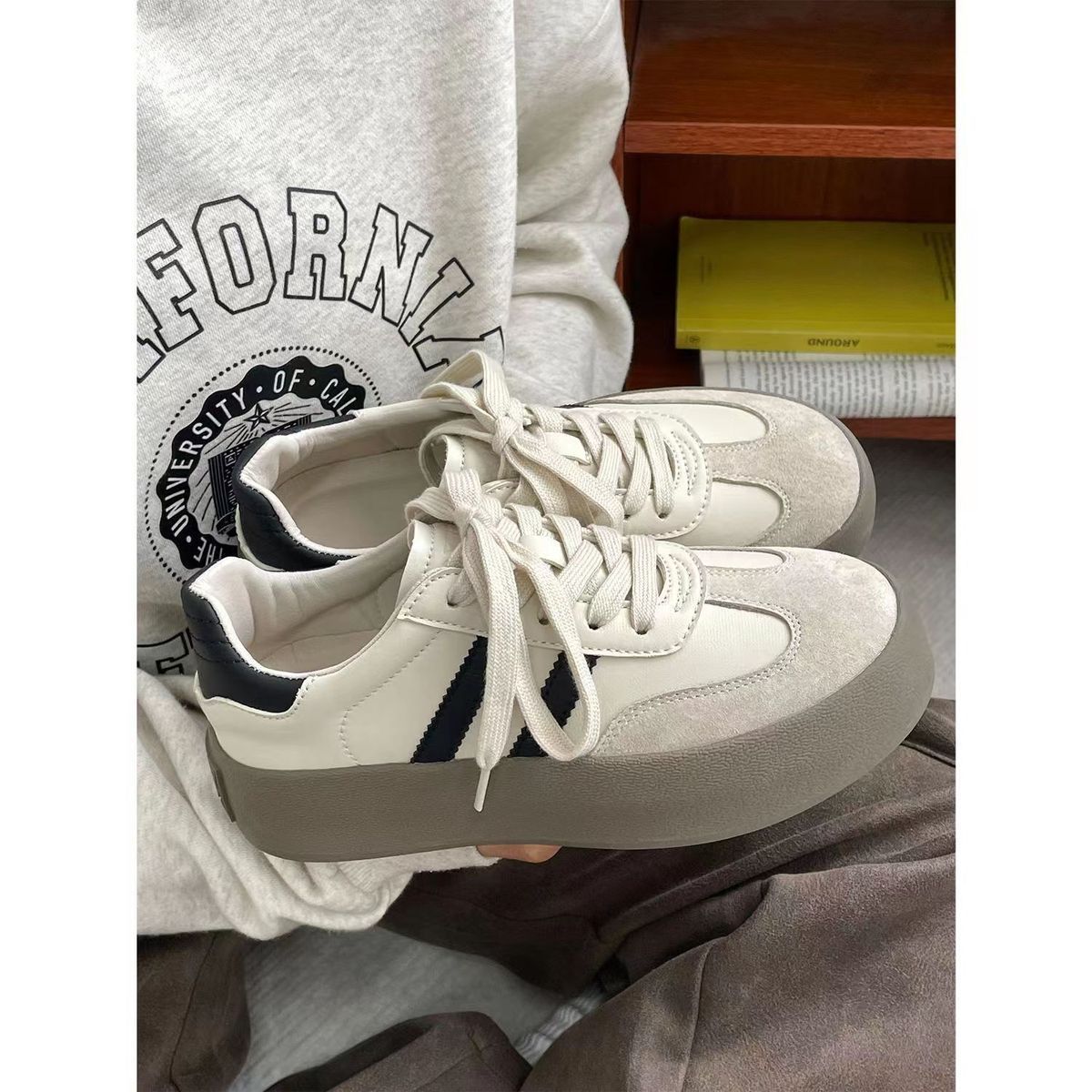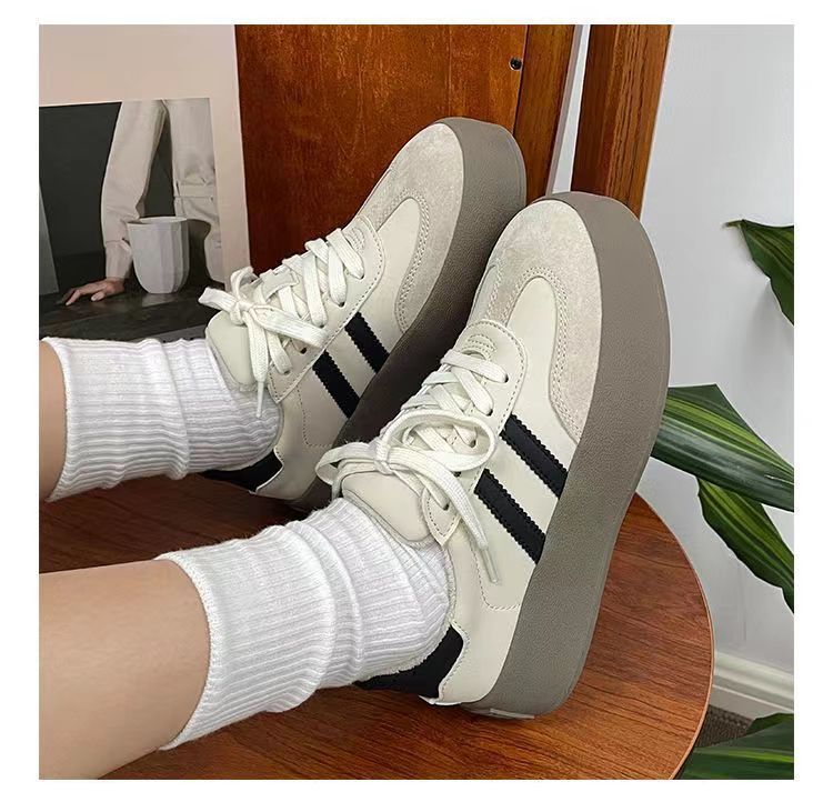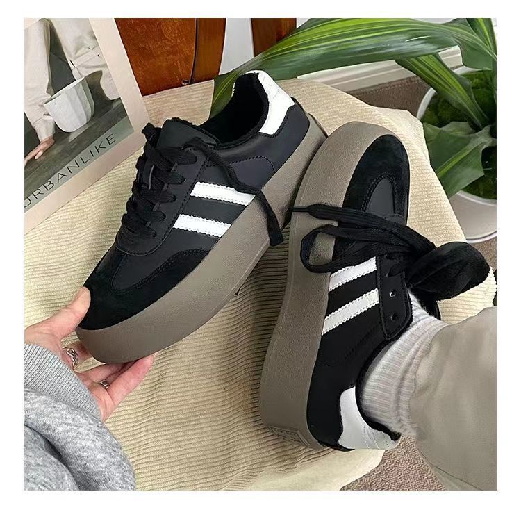 Zapatos de entrenamiento de invierno 2025 nuevos zapatos de mujer cómodos, zapatos casuales de skate retro de altura gruesa zapatos blancos pequeños