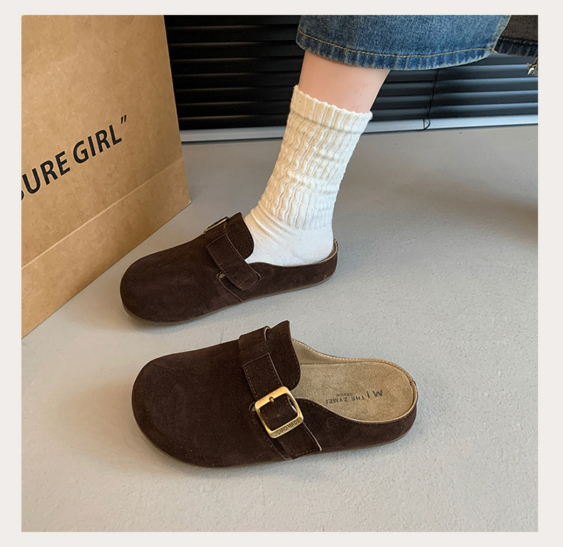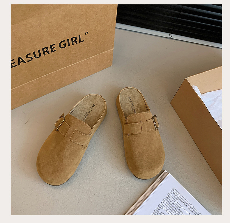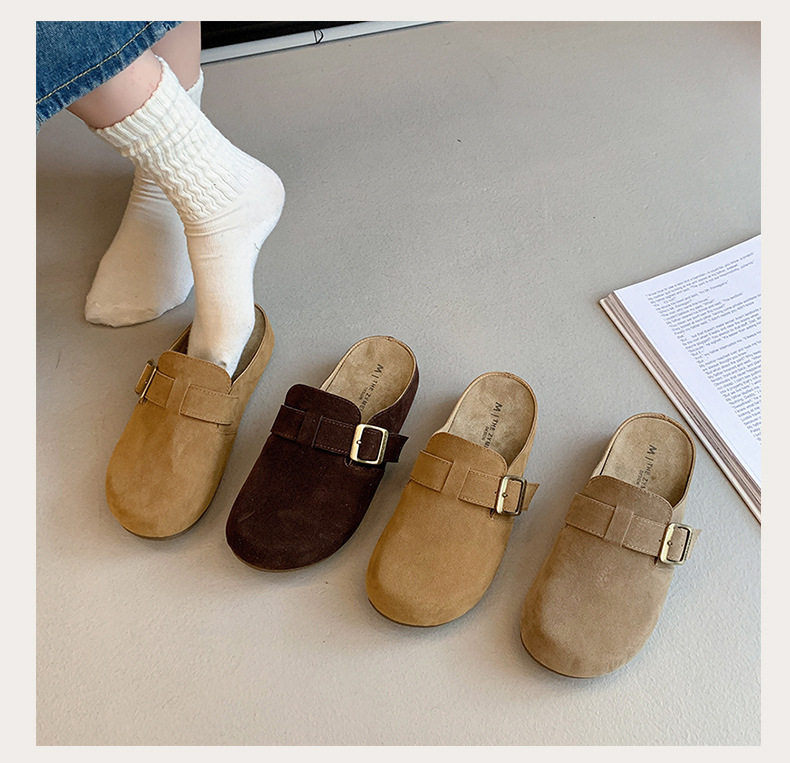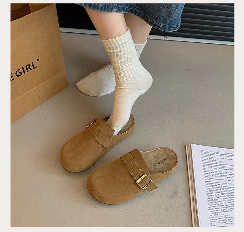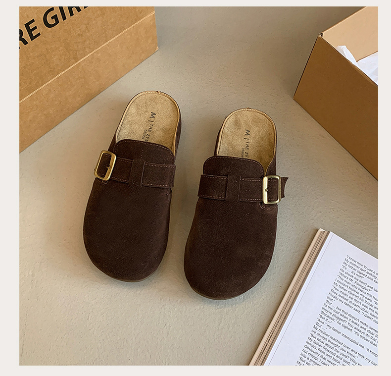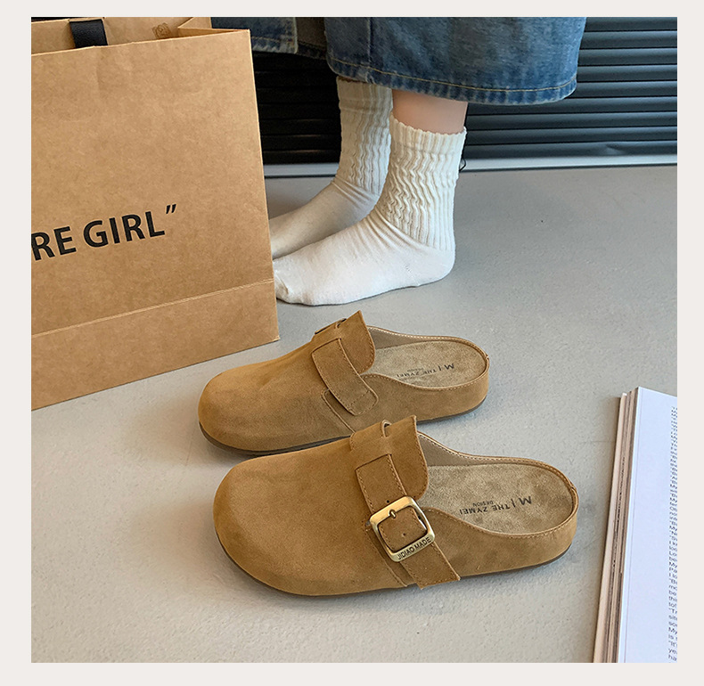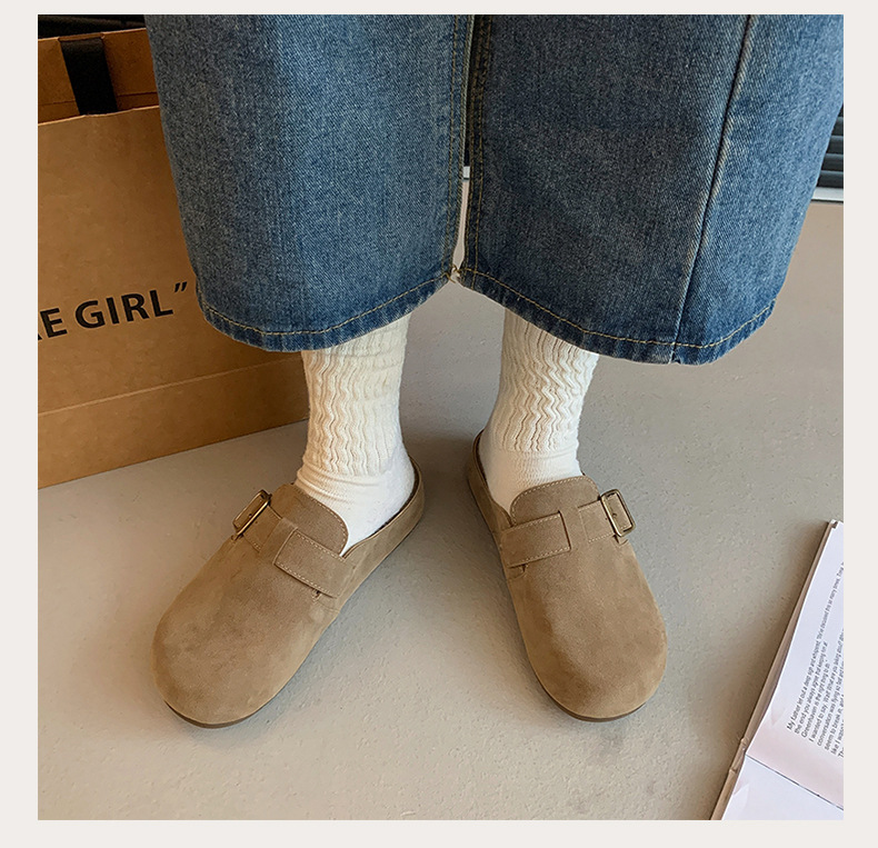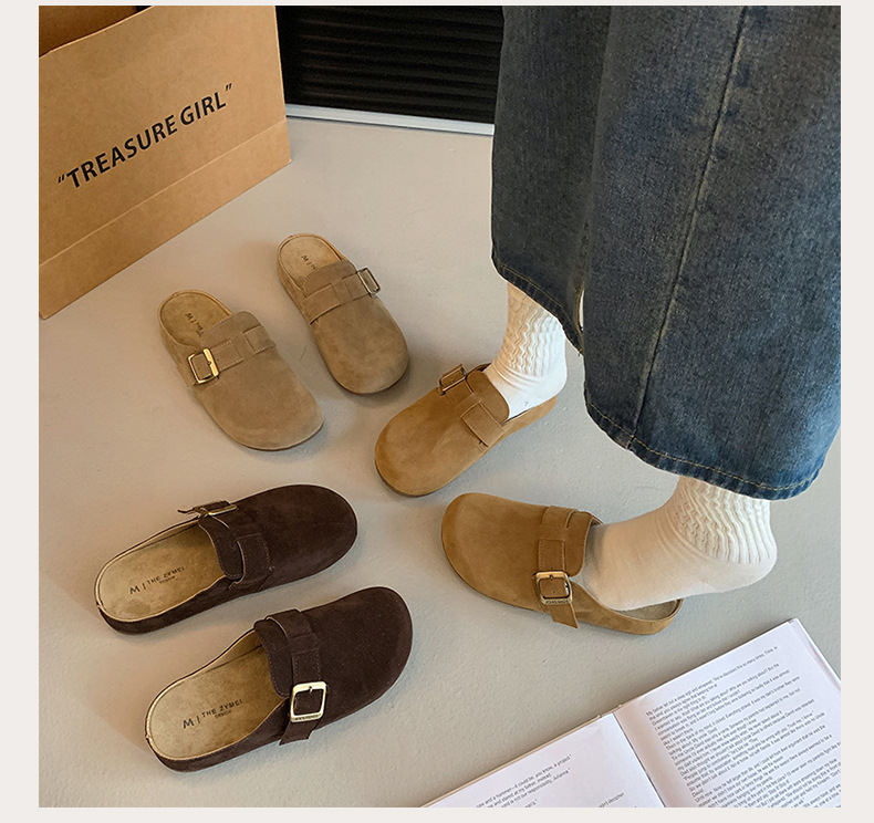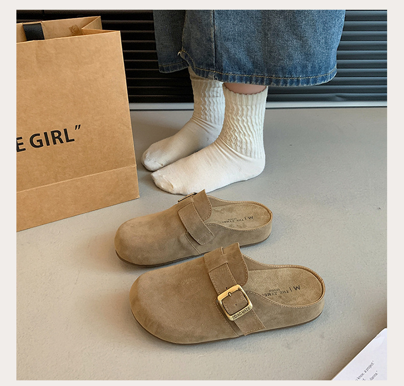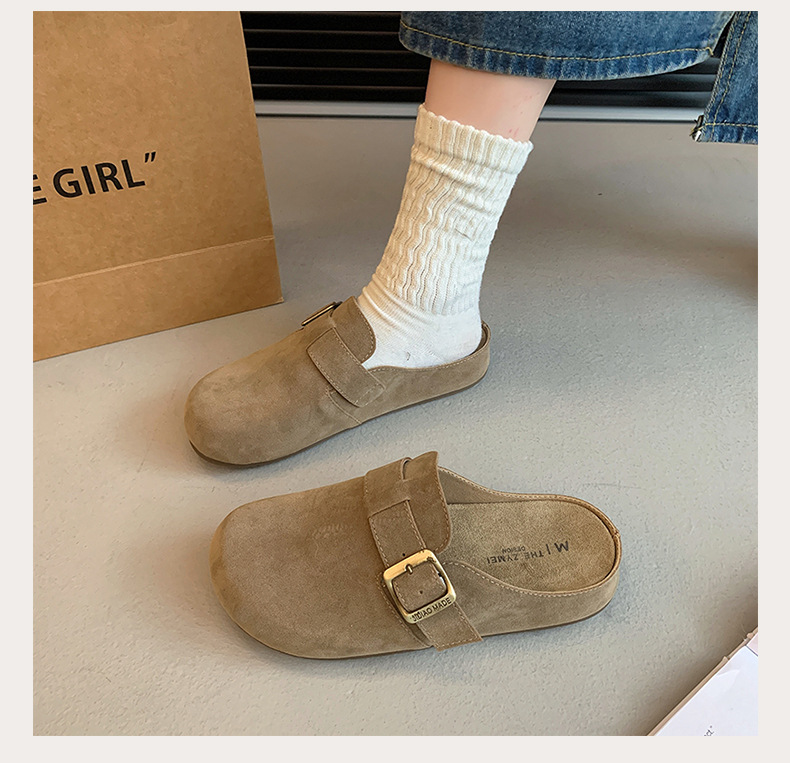 Retro estilo francés con la cabeza media zapatillas mujeres 2025 nuevo estilo de moda de otoño ropa exterior perezosa versátil botellas de boccane plano