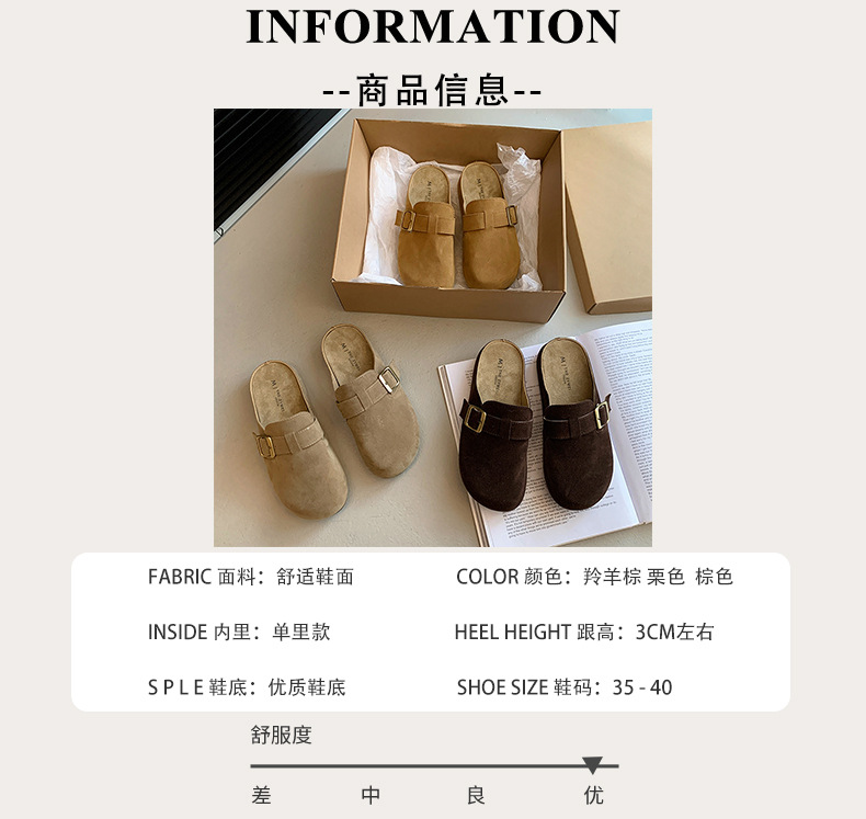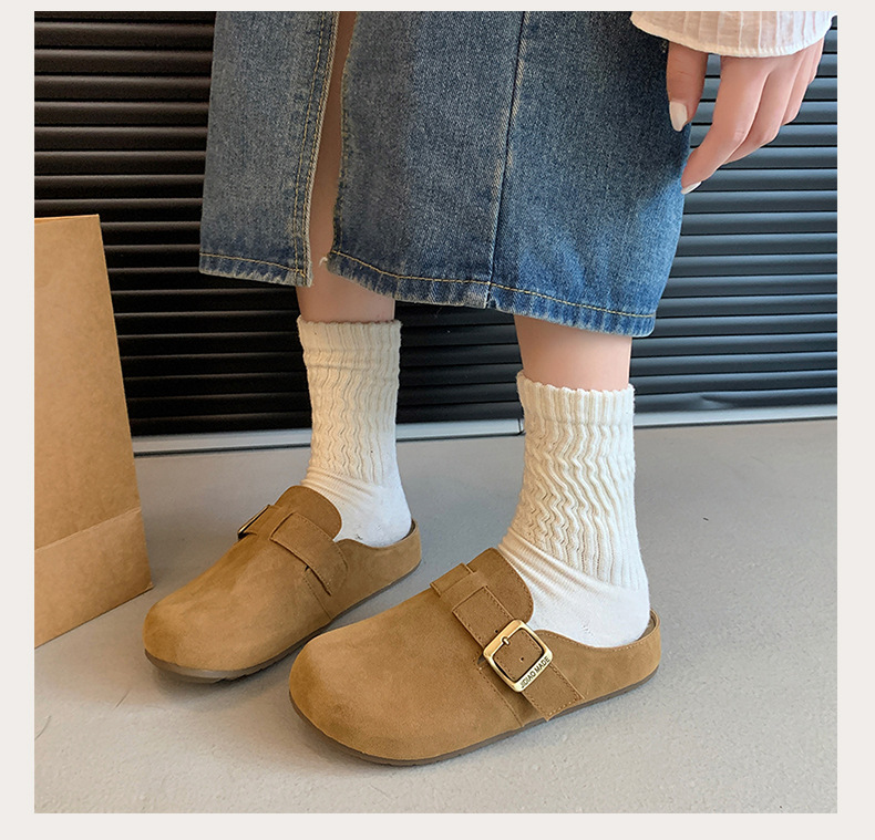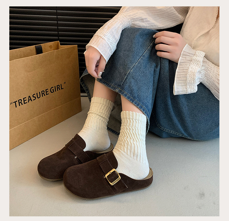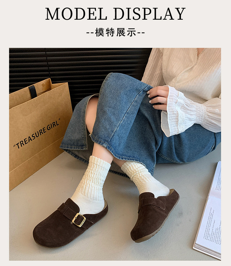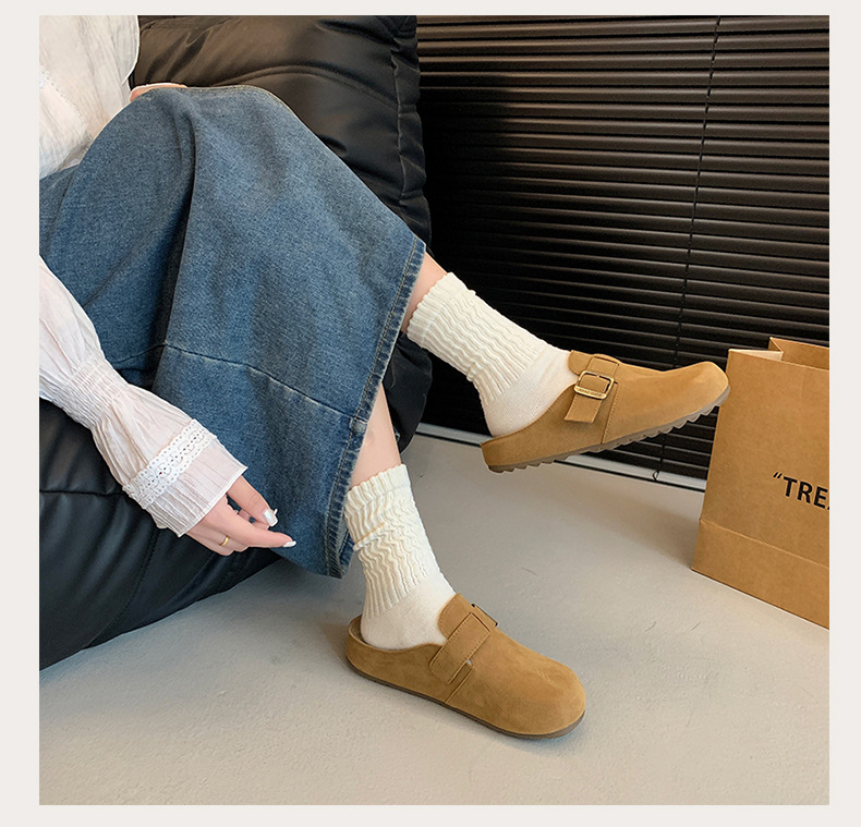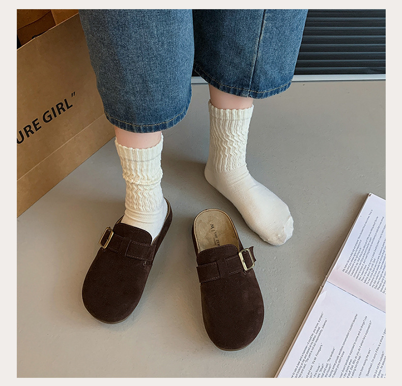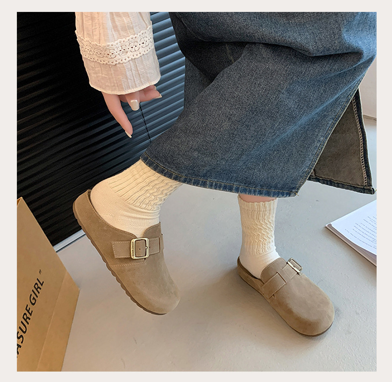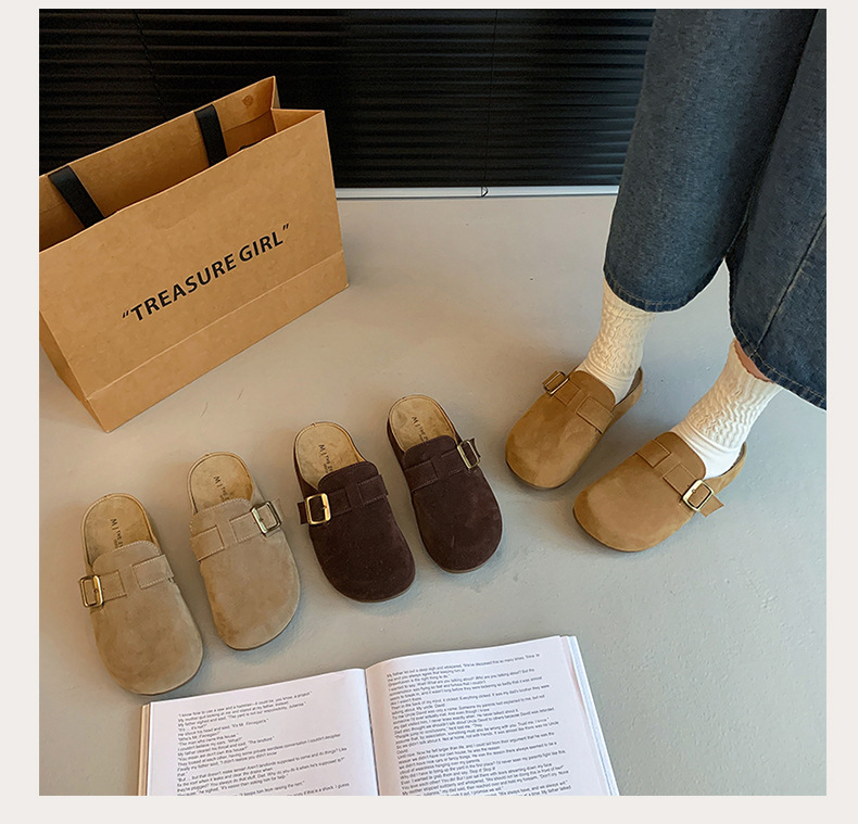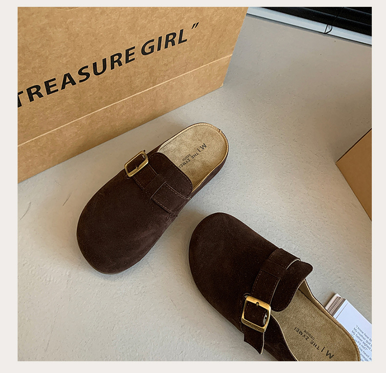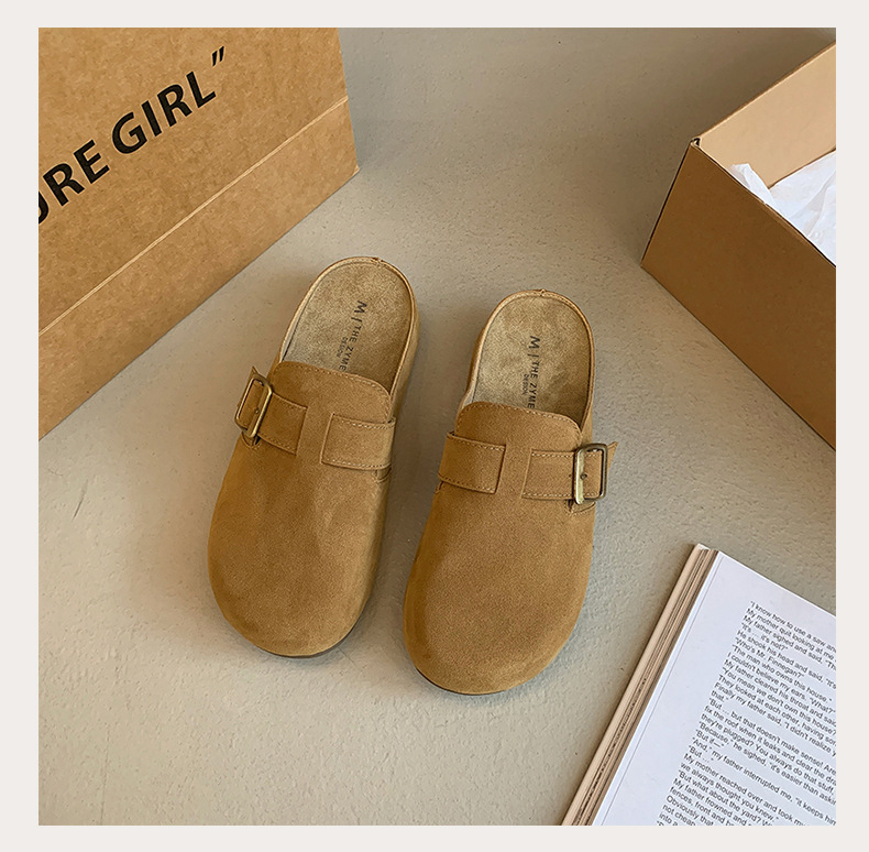 Retro estilo francés con la cabeza media zapatillas mujeres 2025 nuevo estilo de moda de otoño ropa exterior perezosa versátil botellas de boccane plano