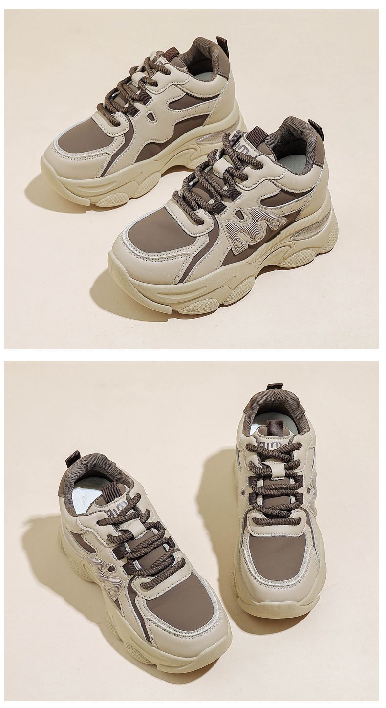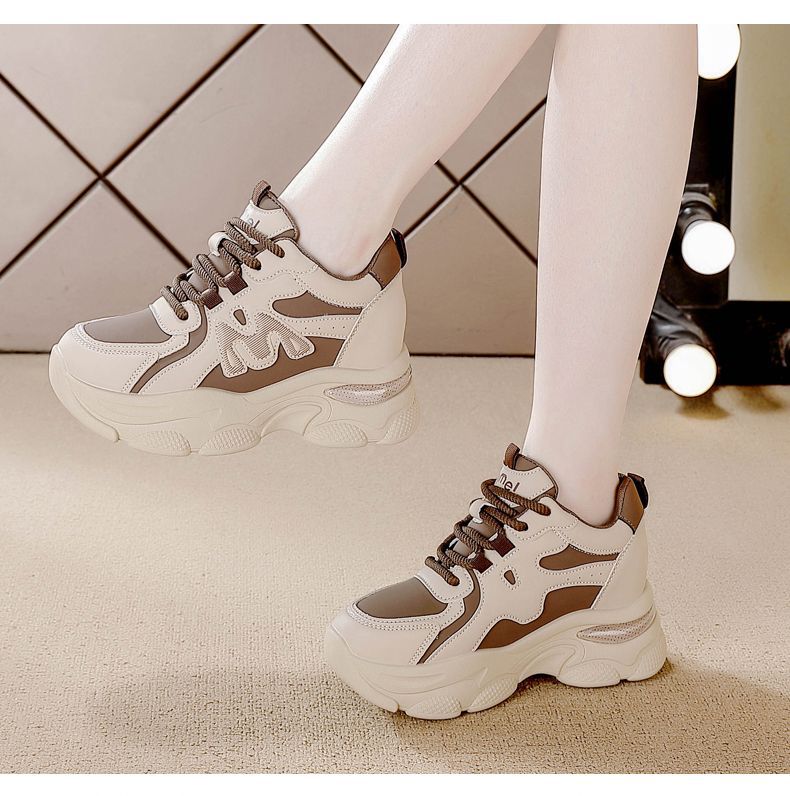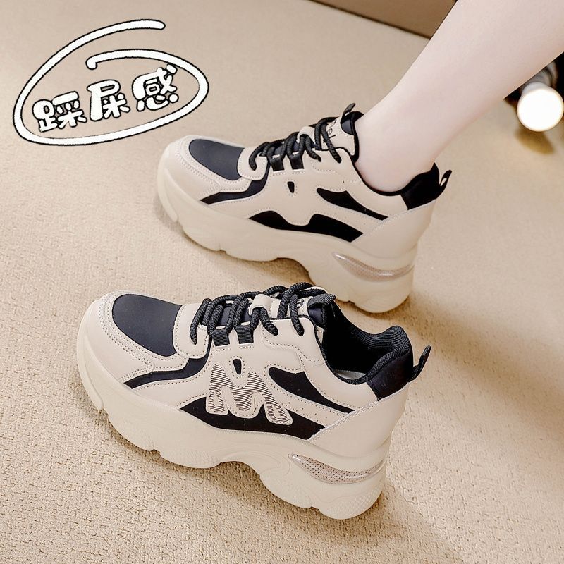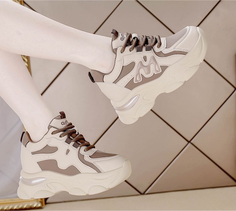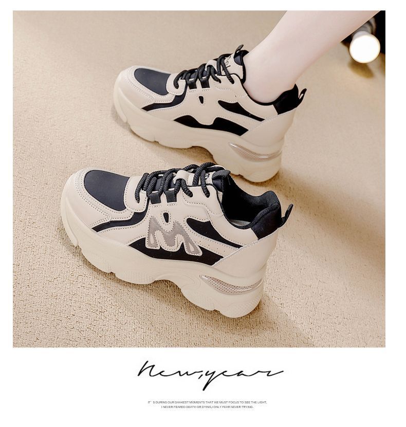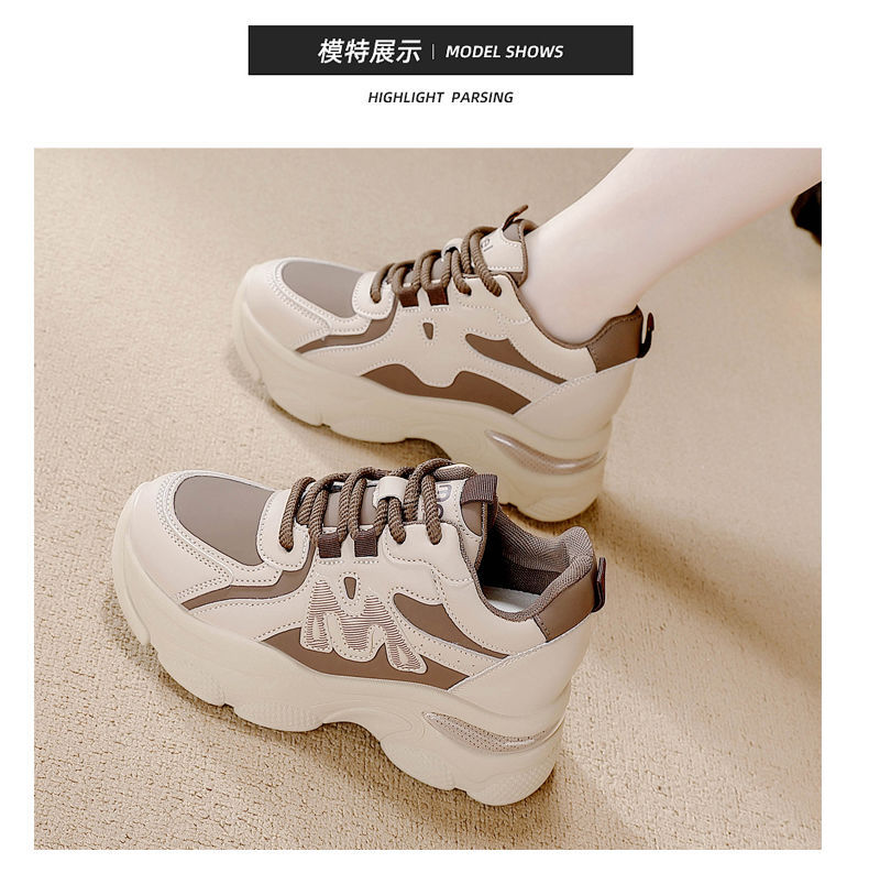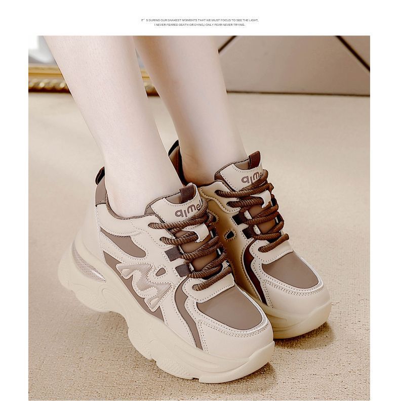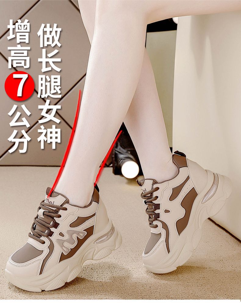 Zapatos de cuero de suela gruesa para mujeres, primavera de 2025 nuevos zapatos casuales deportivos de suela gruesa para mujeres.