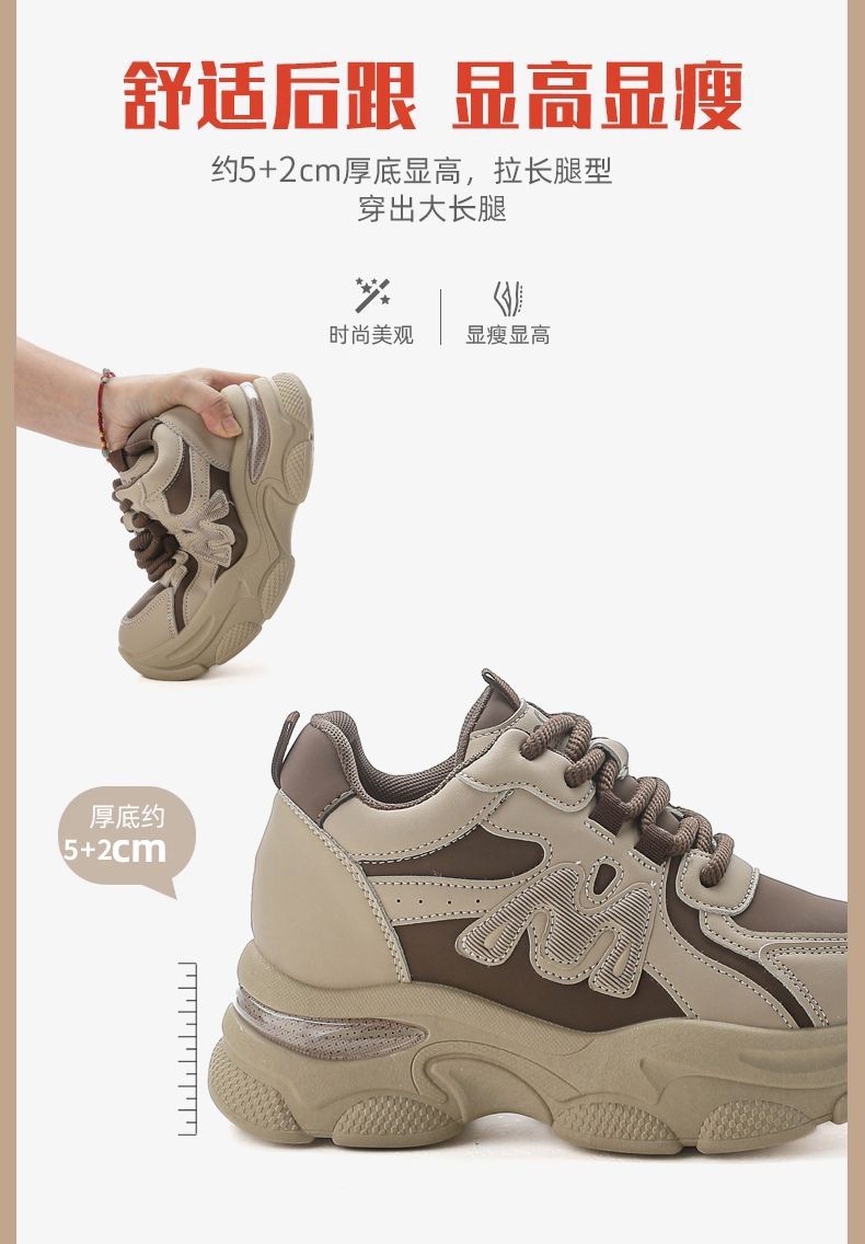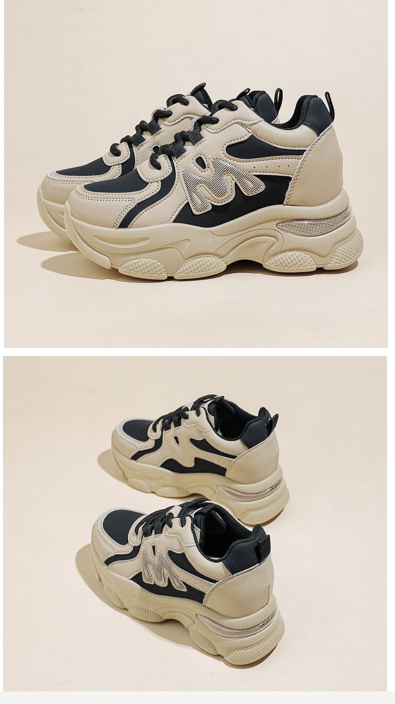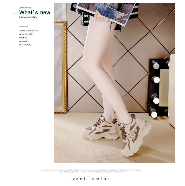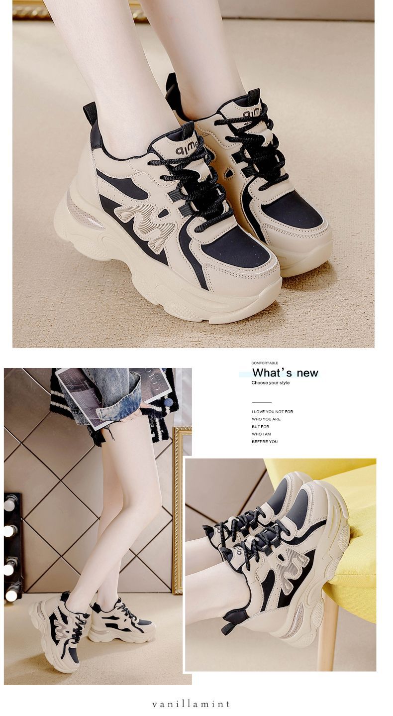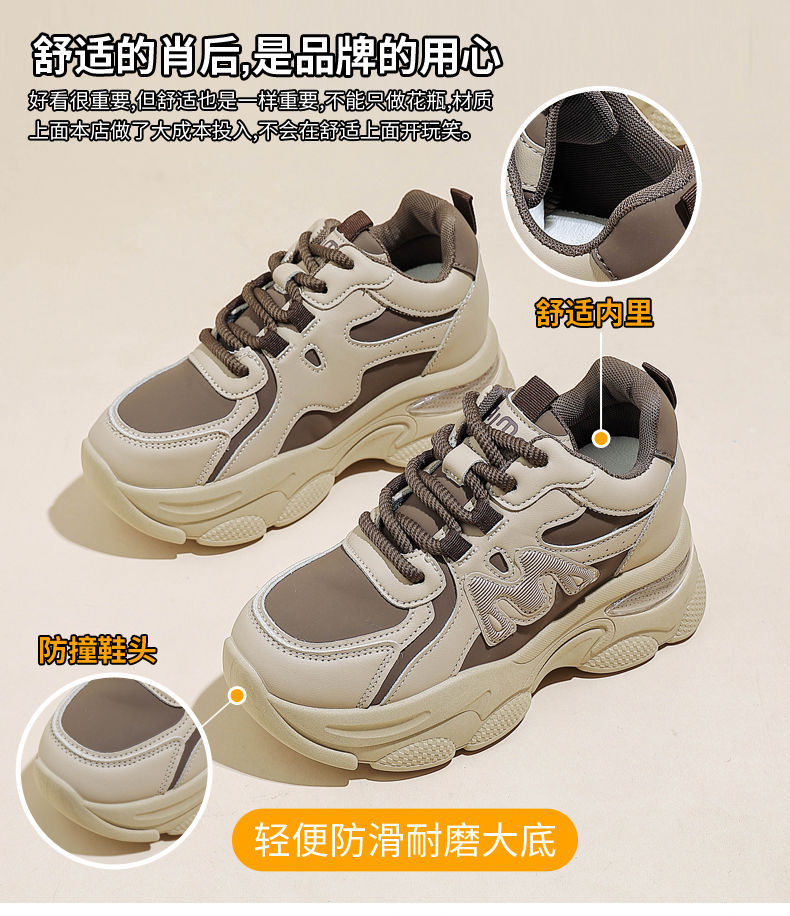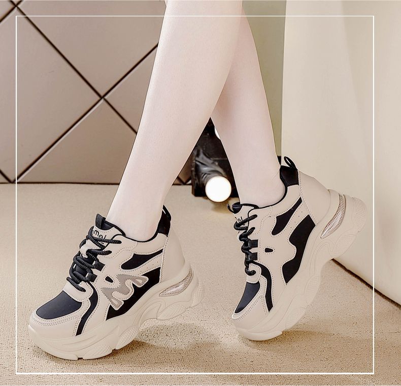 Zapatos de cuero de suela gruesa para mujeres, primavera de 2025 nuevos zapatos casuales deportivos de suela gruesa para mujeres.