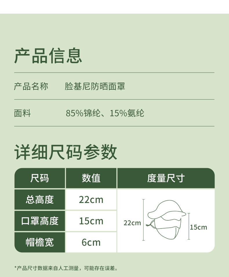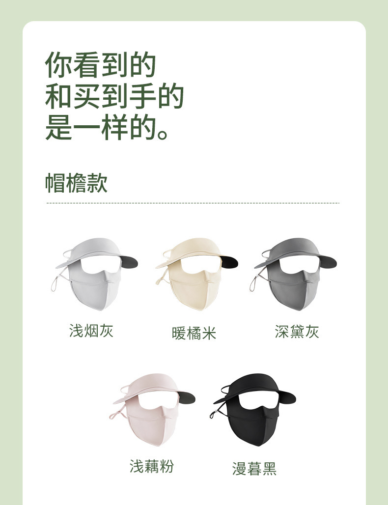 | Colores | Hollín claro [protección solar de cara completa de sombrero de vinilo mejorado],Polvo de raíz de loto claro [protección solar de cara completa de sombrero de vinilo mejorado],Arroz naranja cálido [protección solar de cara completa con sombrero de vinilo mejorado],Manmu Black [Protector solar de cara completa de sombrero de vinilo mejorado],Gris oscuro [protección solar de cara completa de sombrero de vinilo mejorado],Humo claro [Ala de sombrero de vinilo mejorada-Cuello largo],Polvo de raíz de loto poco profundo [Ala de sombrero de vinilo mejorada-Cuello largo],Arroz naranja cálido [Alero de sombrero de vinilo mejorado, protector de cuello alargado],Manmu Black [Ala de sombrero de vinilo mejorada-Cuello largo],Gris oscuro [Alero de sombrero de vinilo mejorado-Cuello largo] |