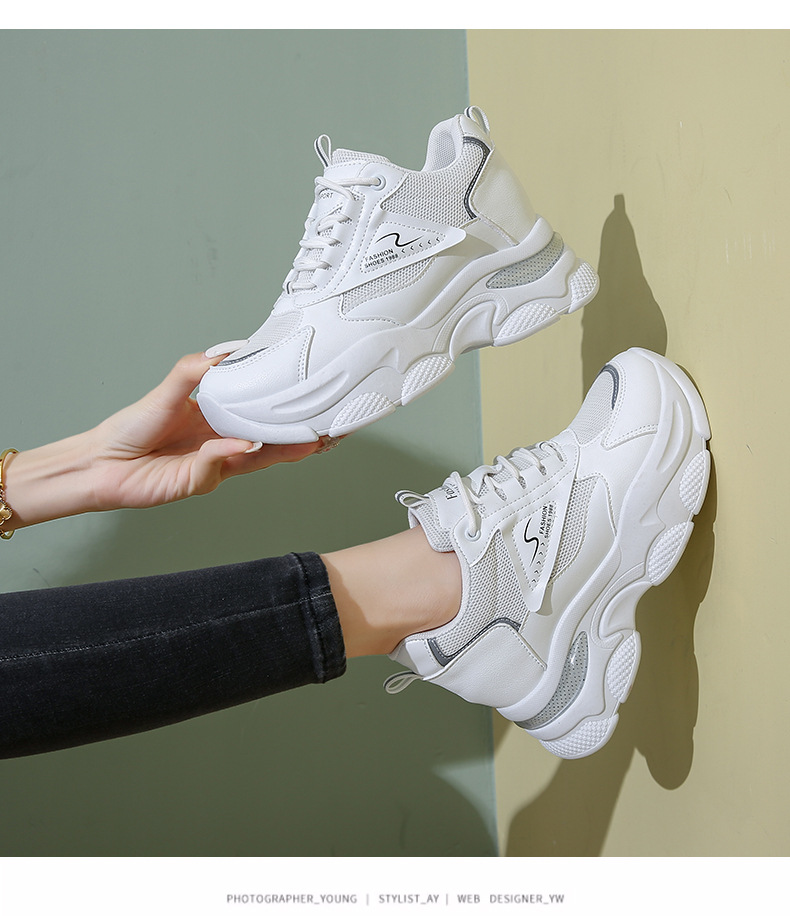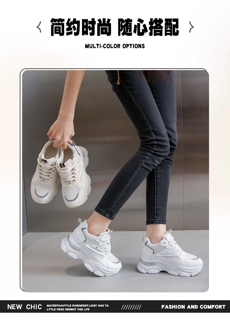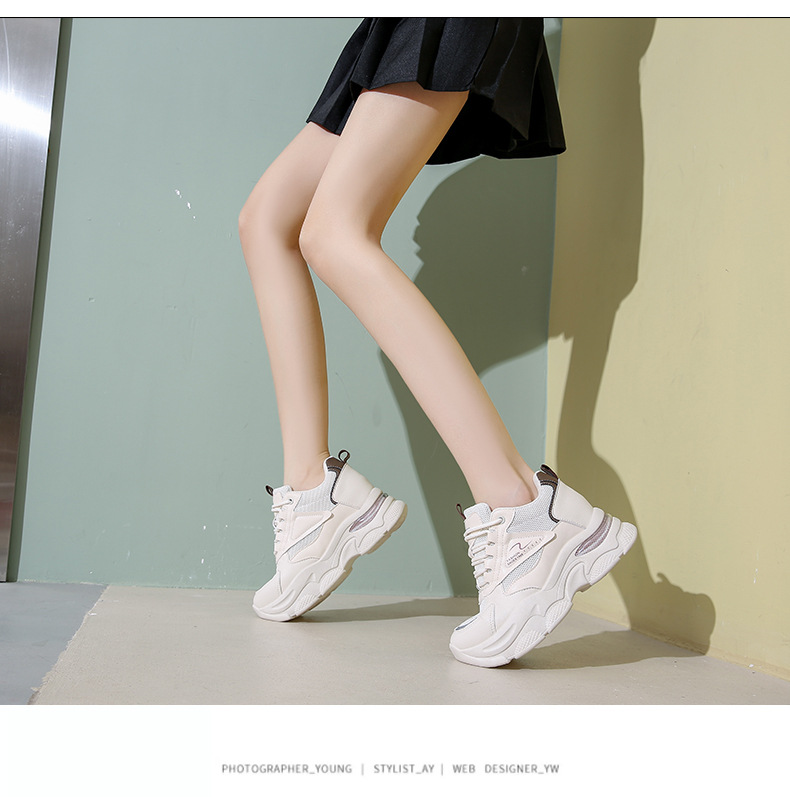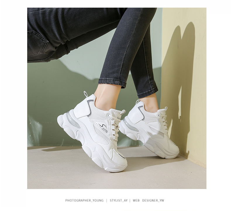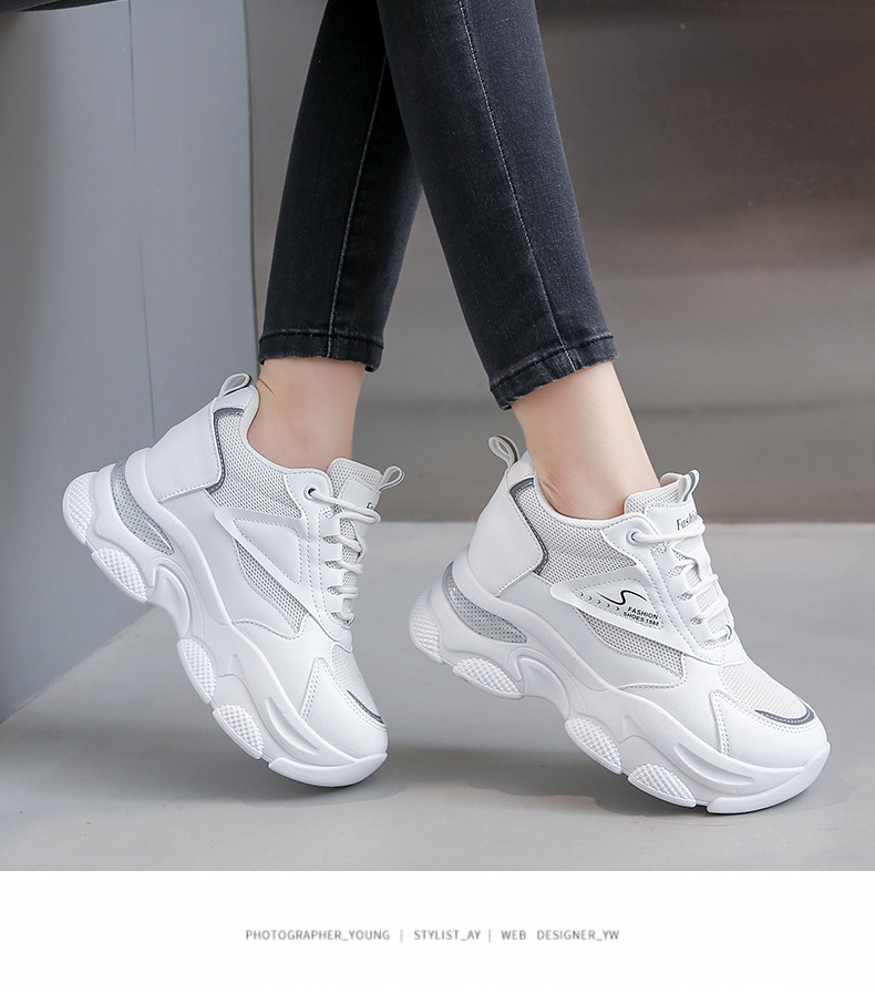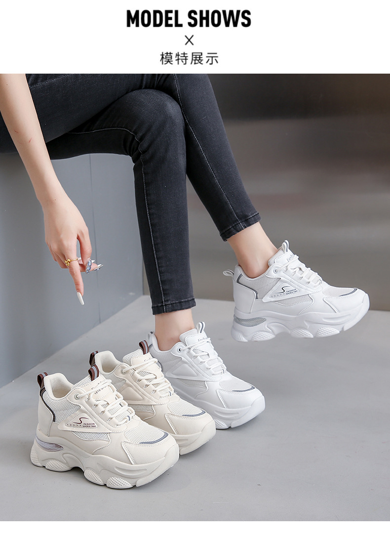 Aumentar la altura de los zapatos de papá para mujeres 2025, el nuevo tipo de verano, un hombre pequeño, una red deportiva casual, zapatos blancos para mujeres