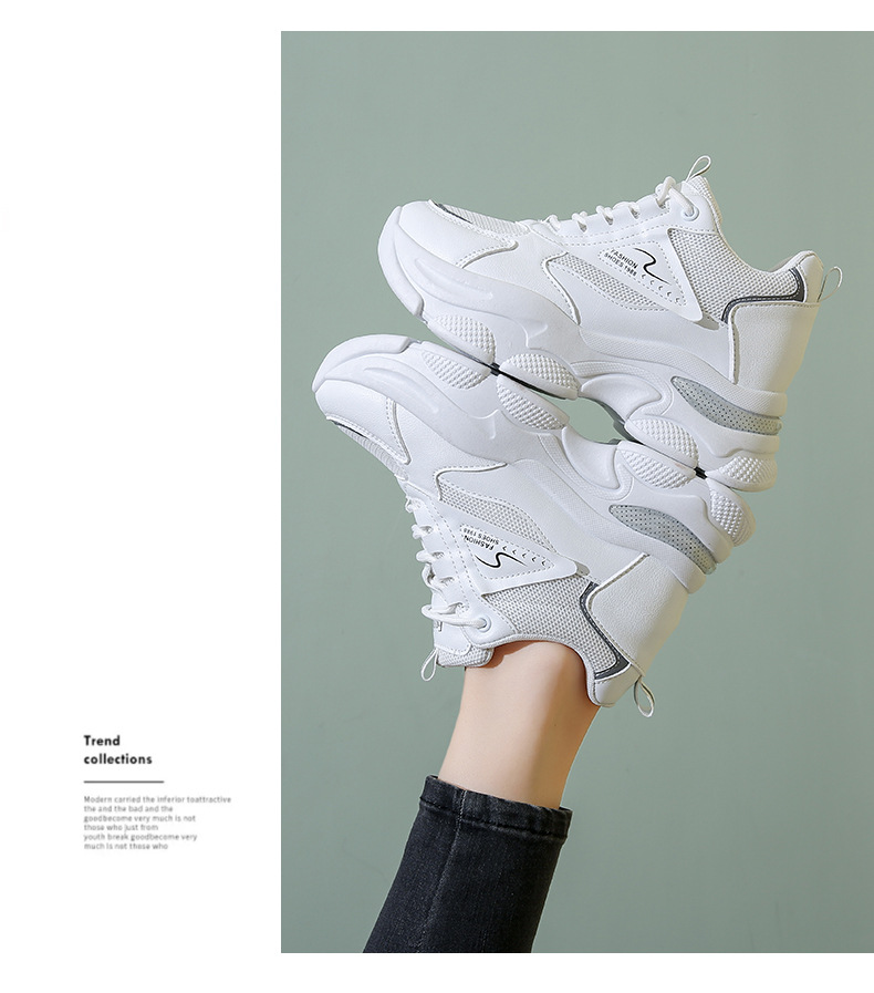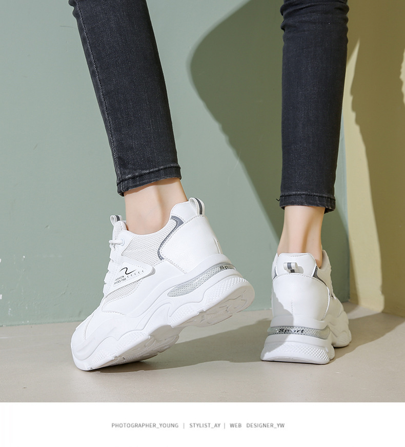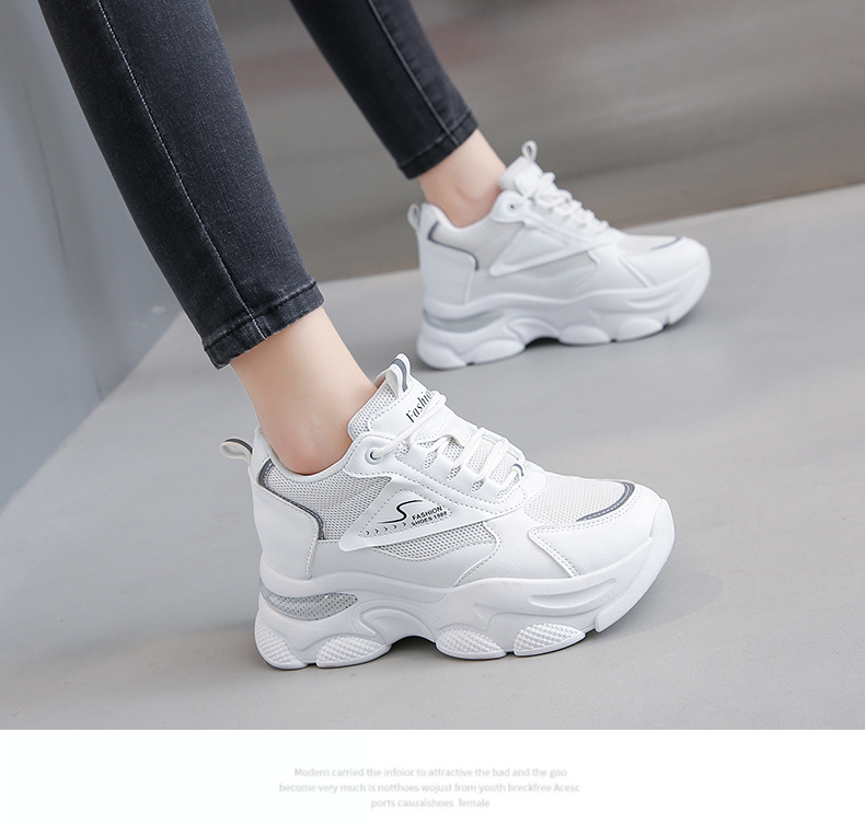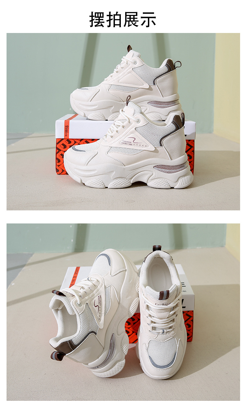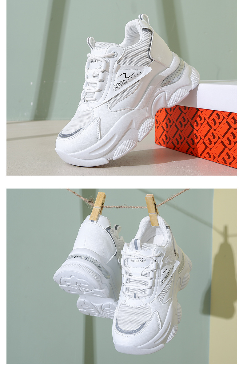 Aumentar la altura de los zapatos de papá para mujeres 2025, el nuevo tipo de verano, un hombre pequeño, una red deportiva casual, zapatos blancos para mujeres
