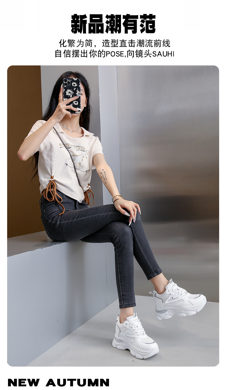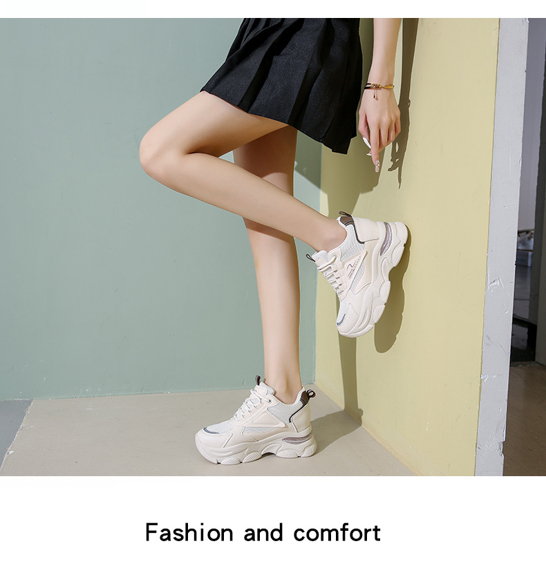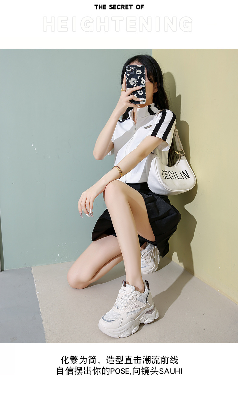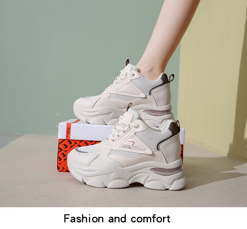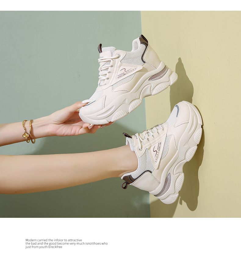 Aumentar la altura de los zapatos de papá para mujeres 2025, el nuevo tipo de verano, un hombre pequeño, una red deportiva casual, zapatos blancos para mujeres