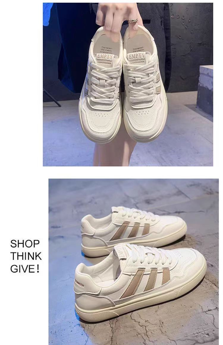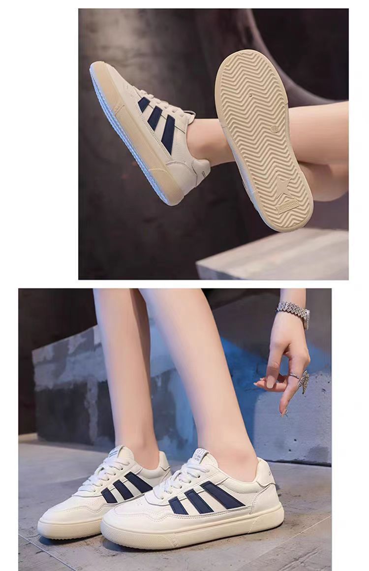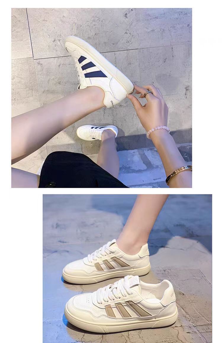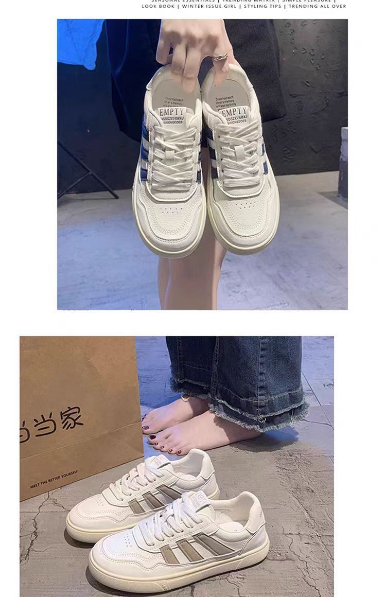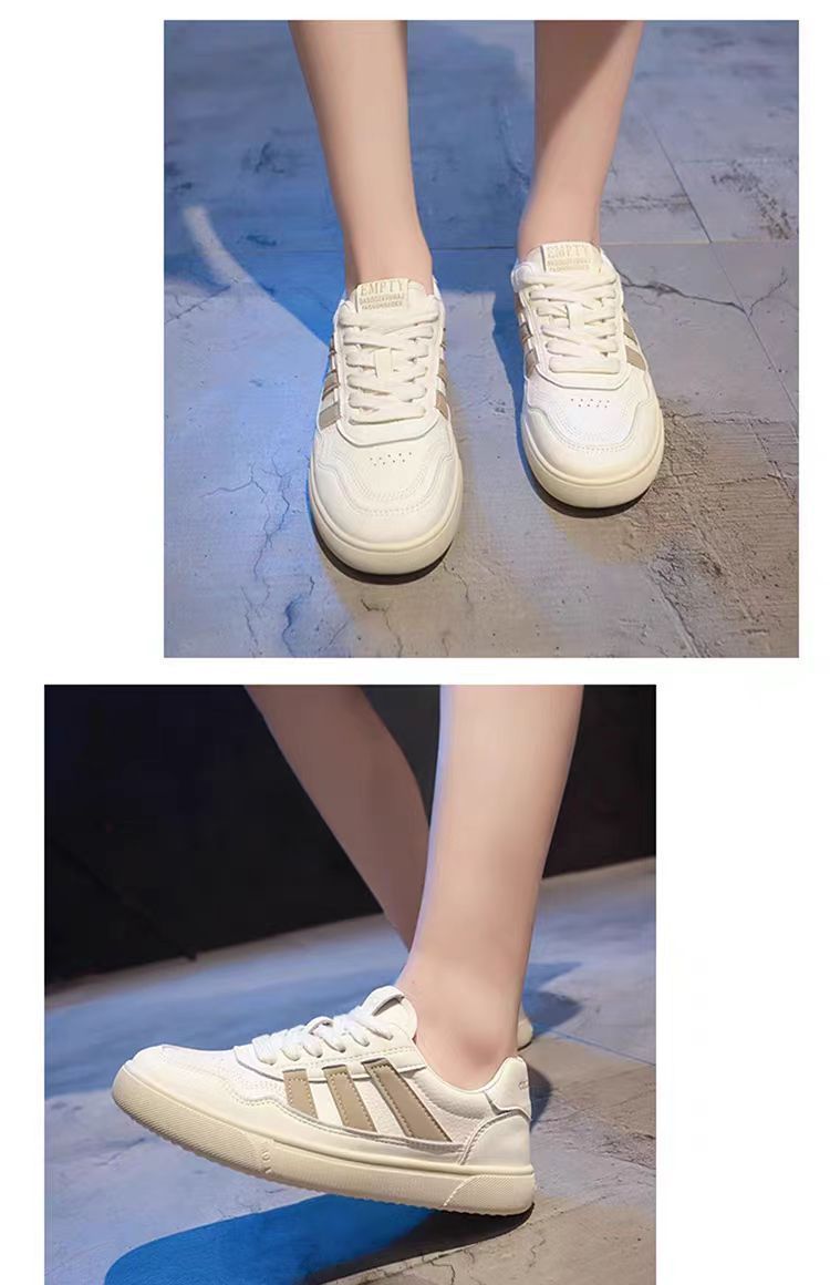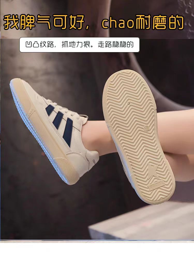 Zapatos de mujer de cuero zapatos blancos mujeres 2025 primavera nuevo estilo rayas planas todo fósforo deportes y zapatos de tablero casual