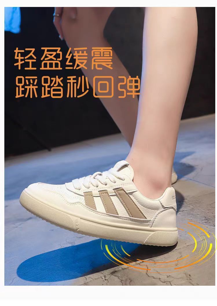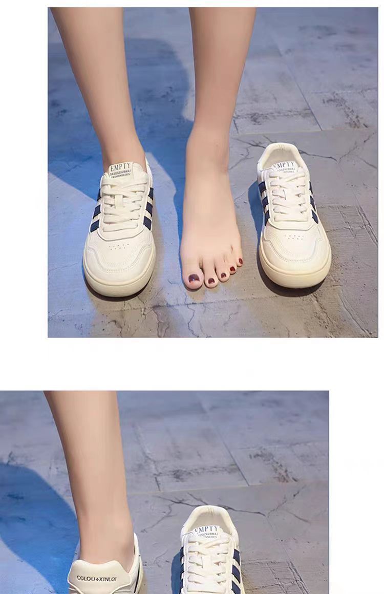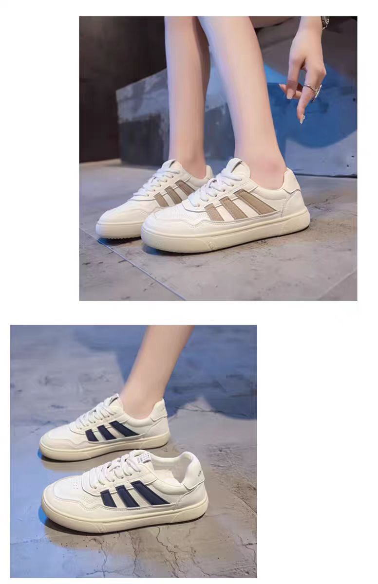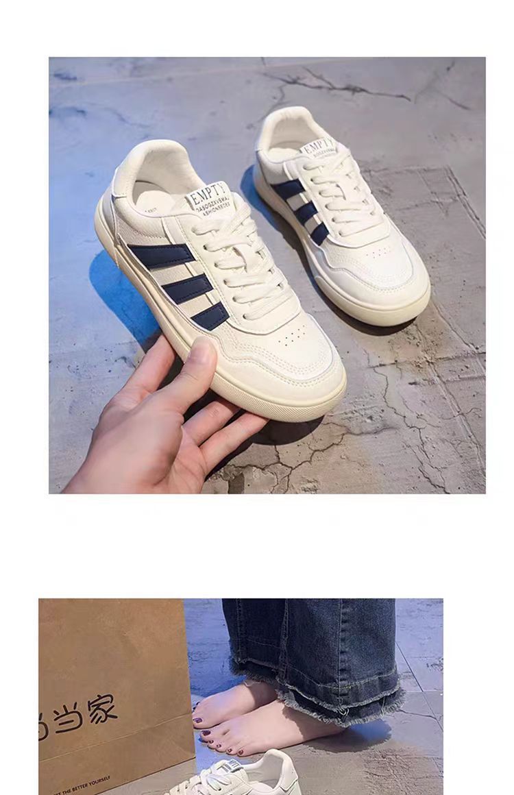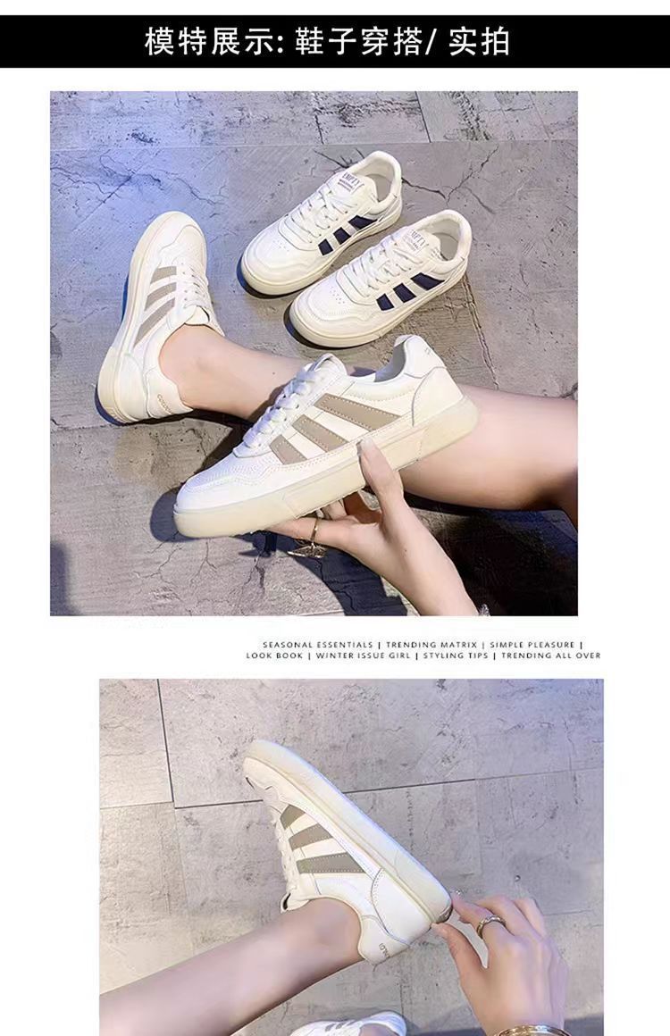 Zapatos de mujer de cuero zapatos blancos mujeres 2025 primavera nuevo estilo rayas planas todo fósforo deportes y zapatos de tablero casual