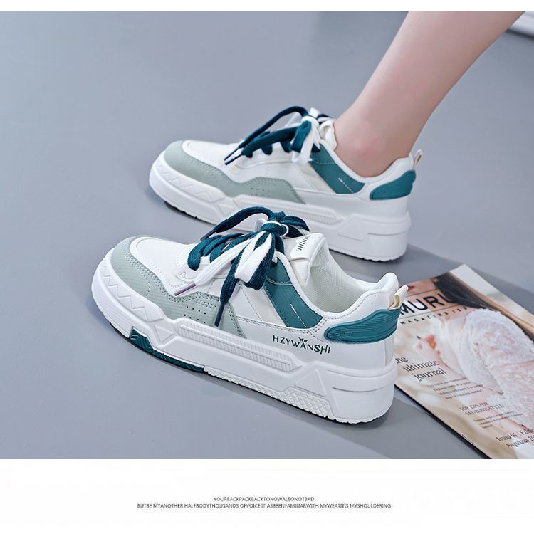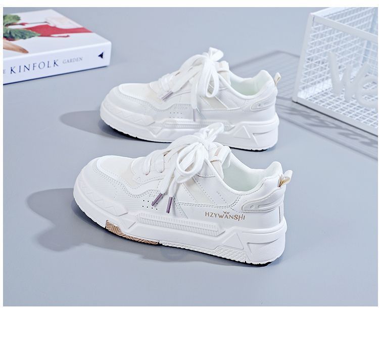 Zapatillas blancas de suela gruesa para estudiantes, nuevo estilo primavera 2025, calzado deportivo versátil con diseño único, zapatillas casuales para venta al por mayor de exportación.