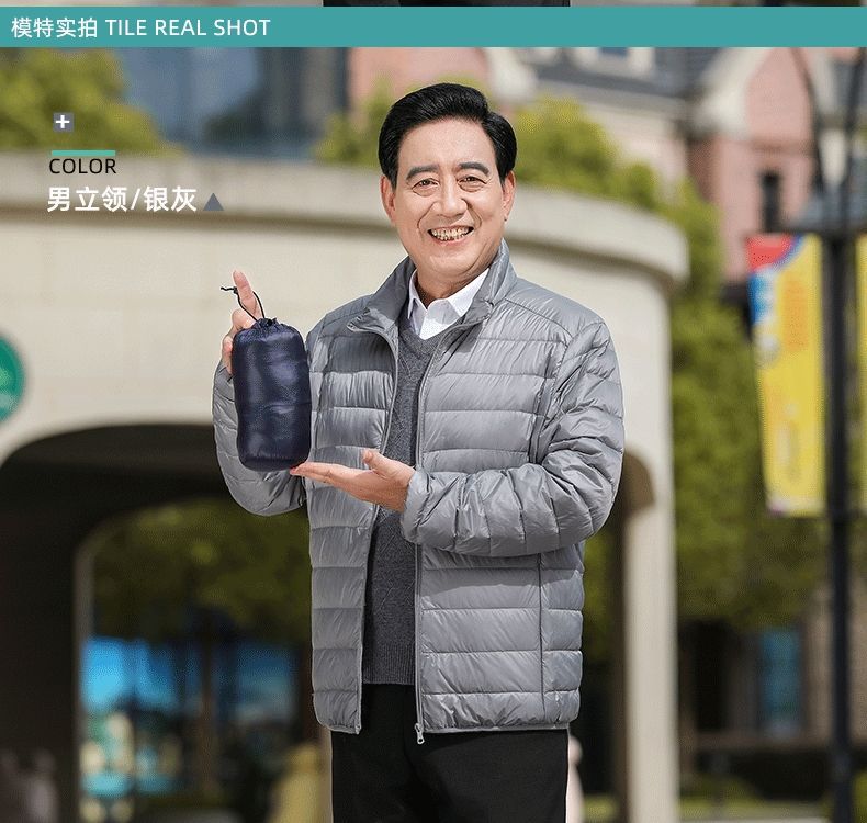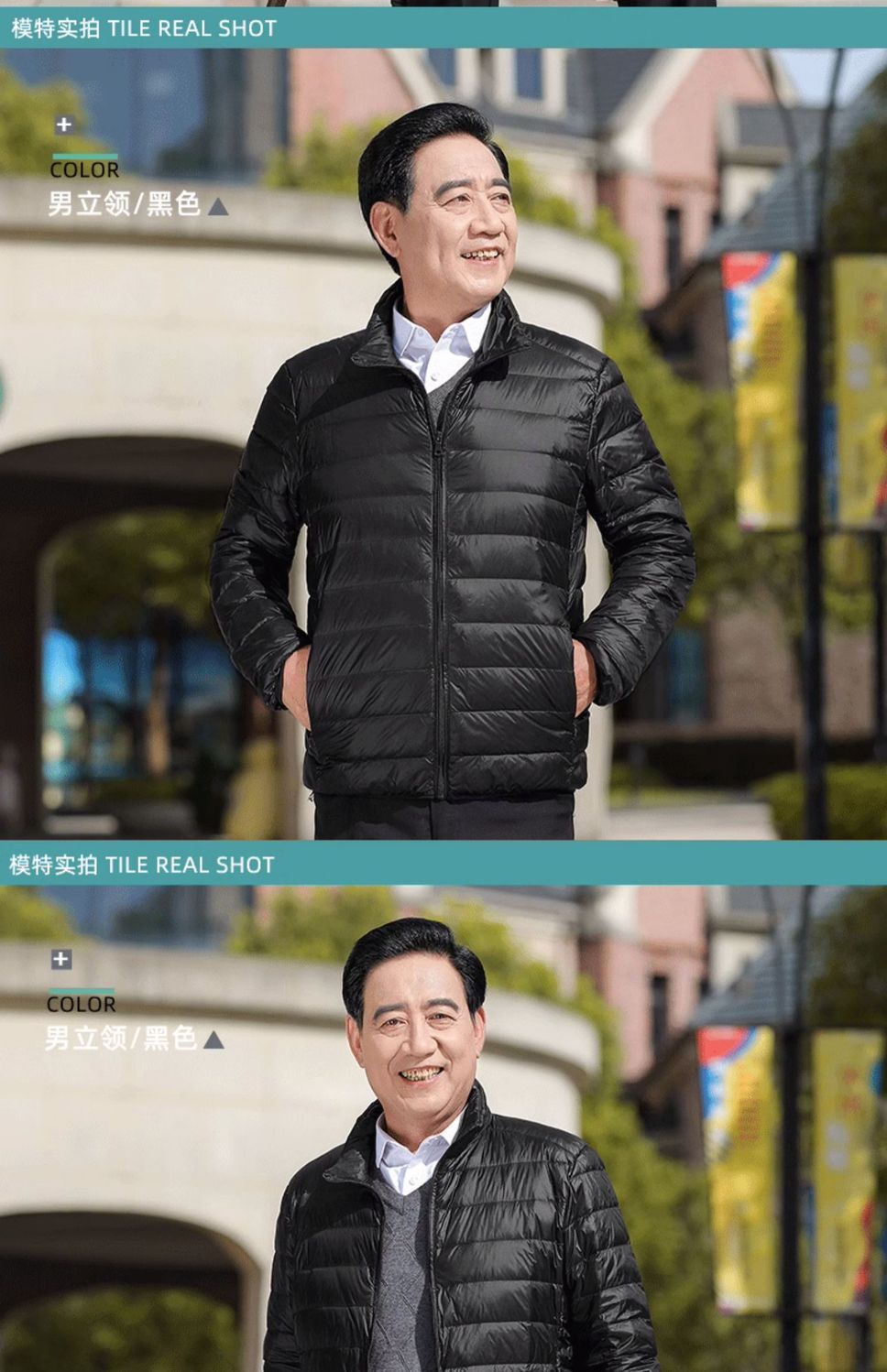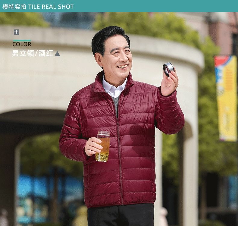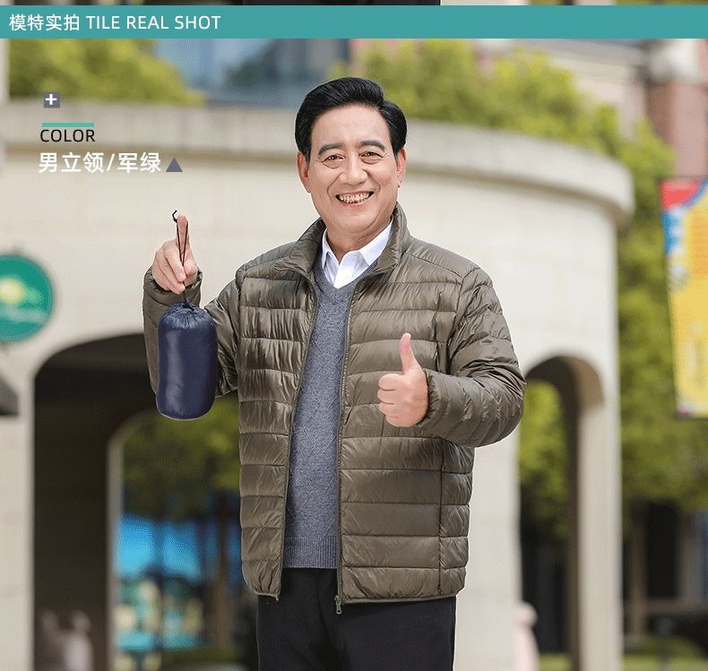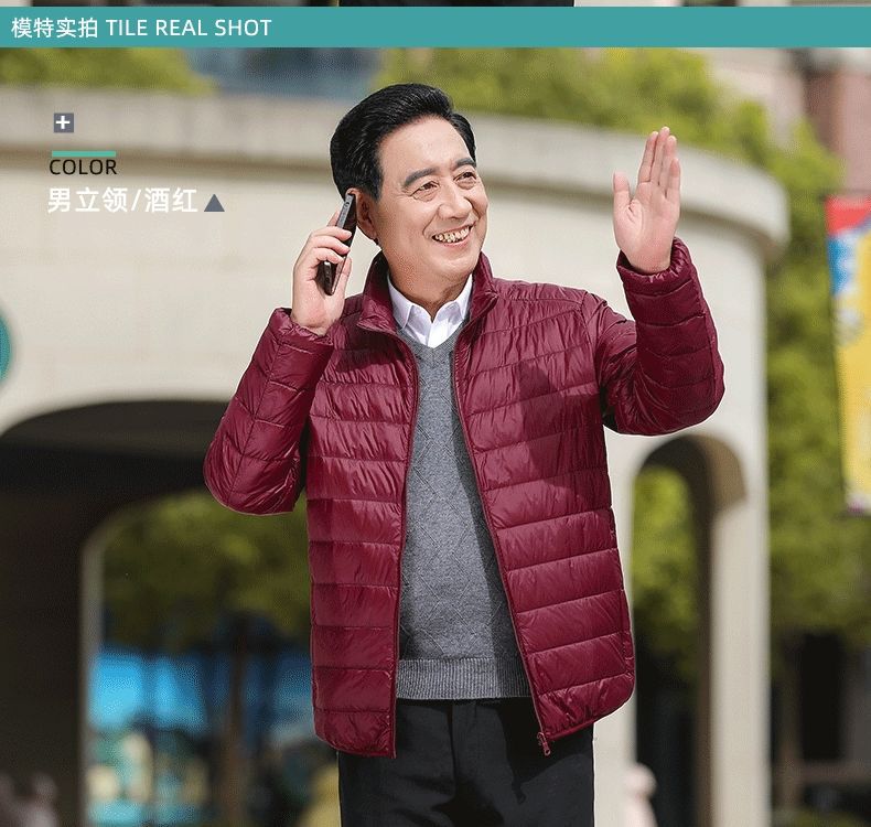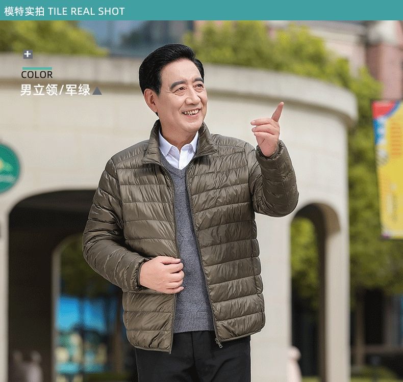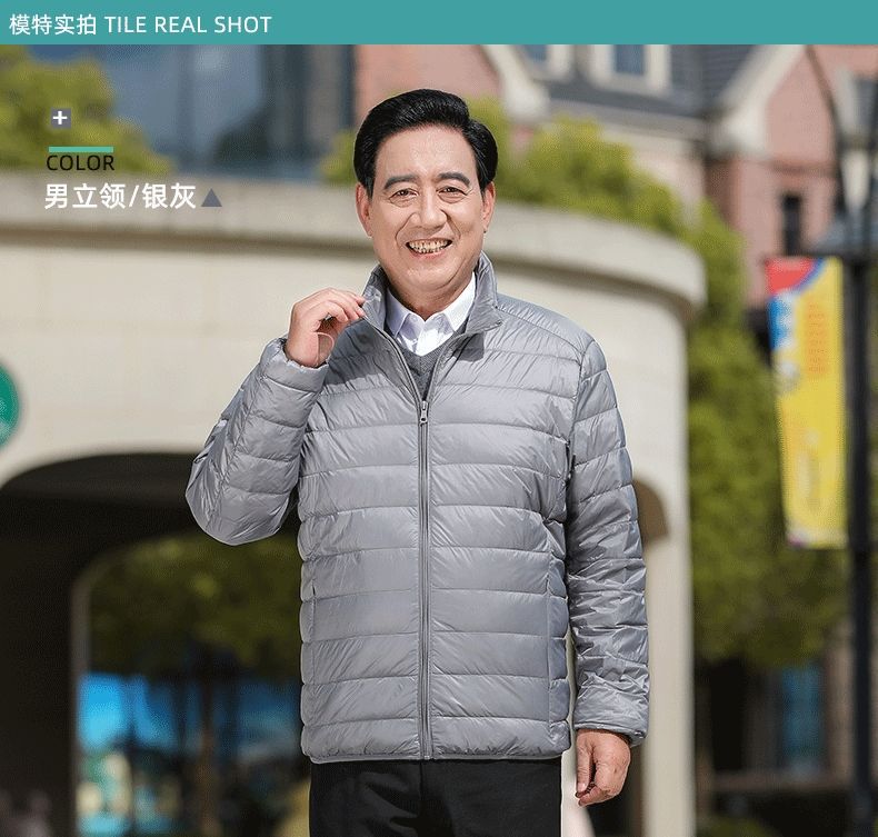 Transfronterizo Tik Tok nuevo chaqueta de plumón ligera hombre de mediana edad padre vestido de cuello corto chaqueta de invierno grande moda