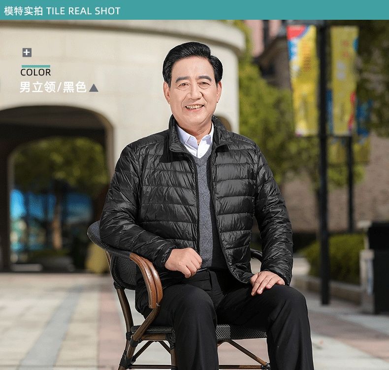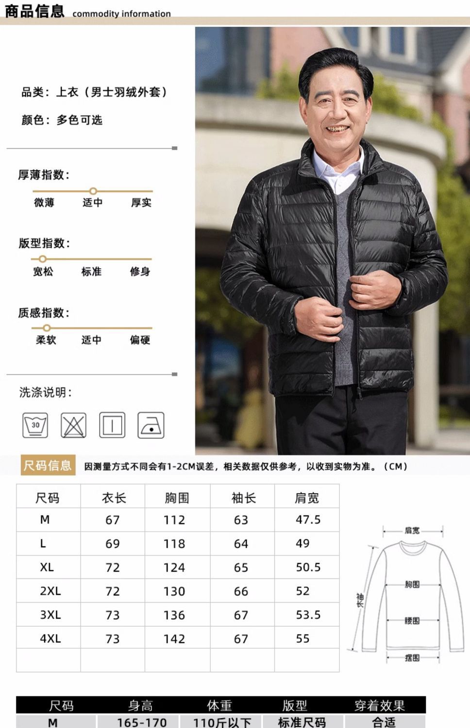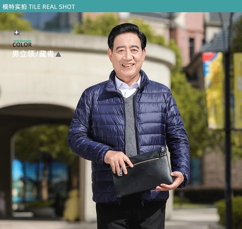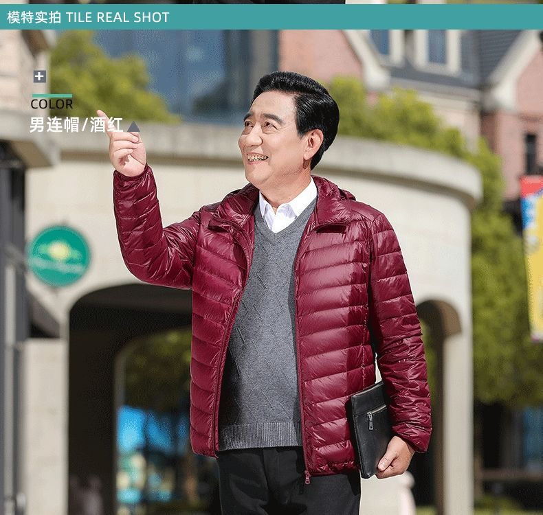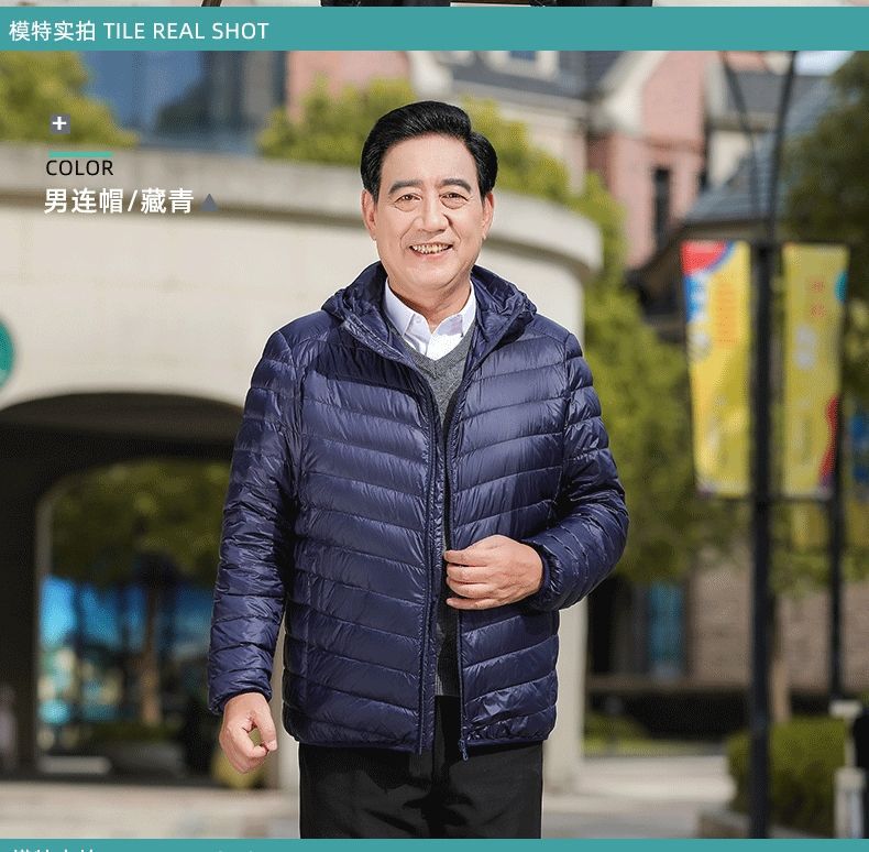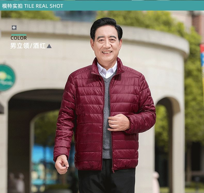 Transfronterizo Tik Tok nuevo chaqueta de plumón ligera hombre de mediana edad padre vestido de cuello corto chaqueta de invierno grande moda