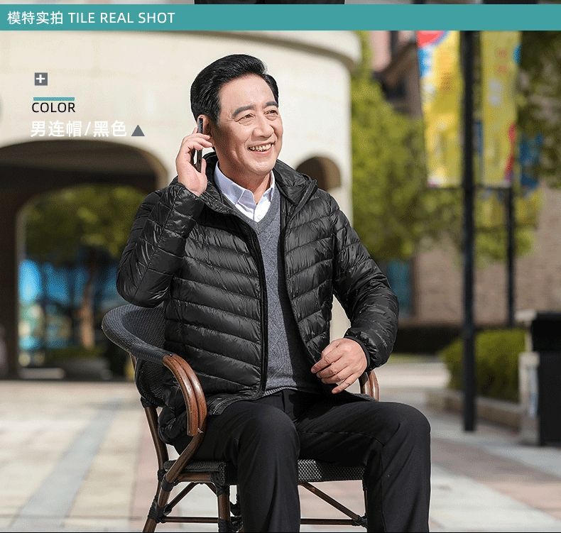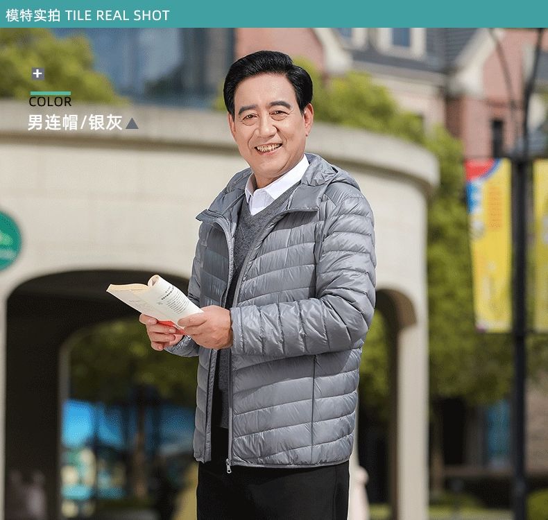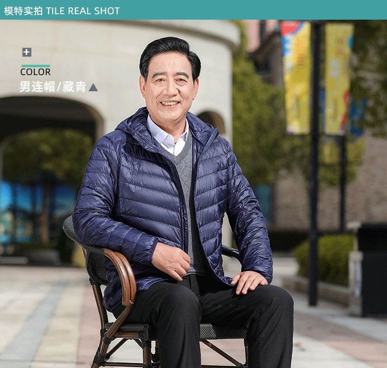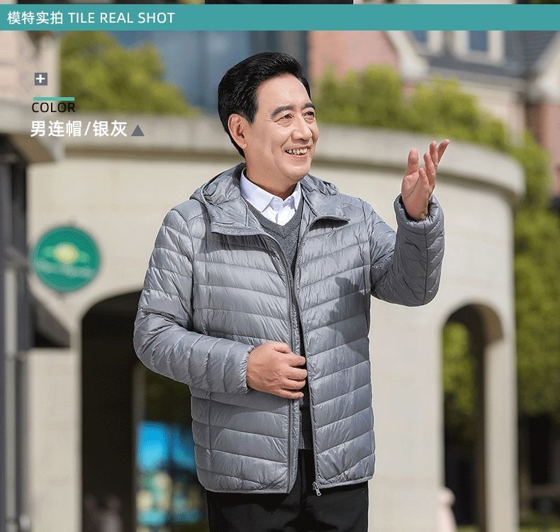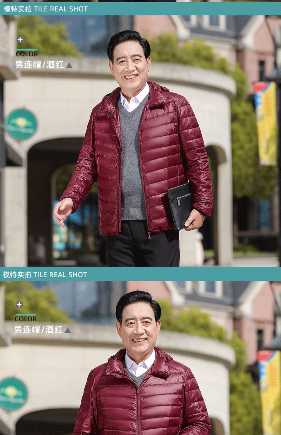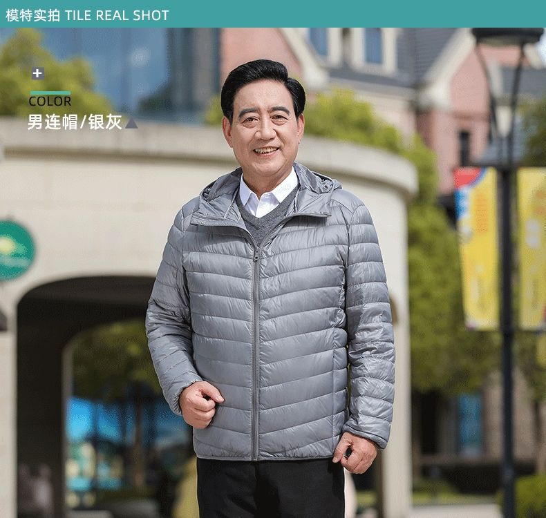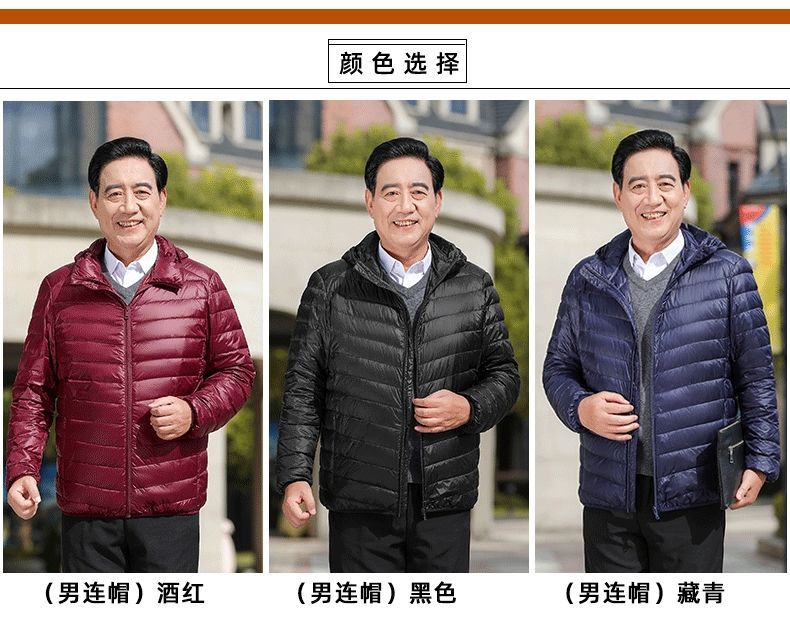 Transfronterizo Tik Tok nuevo chaqueta de plumón ligera hombre de mediana edad padre vestido de cuello corto chaqueta de invierno grande moda