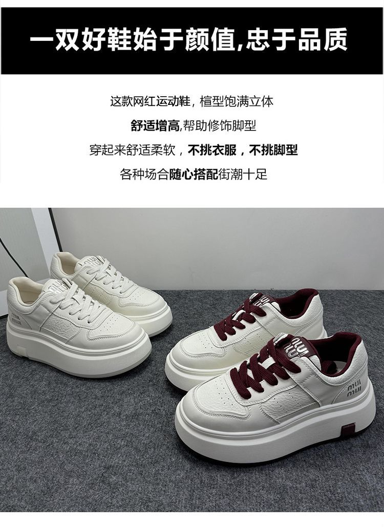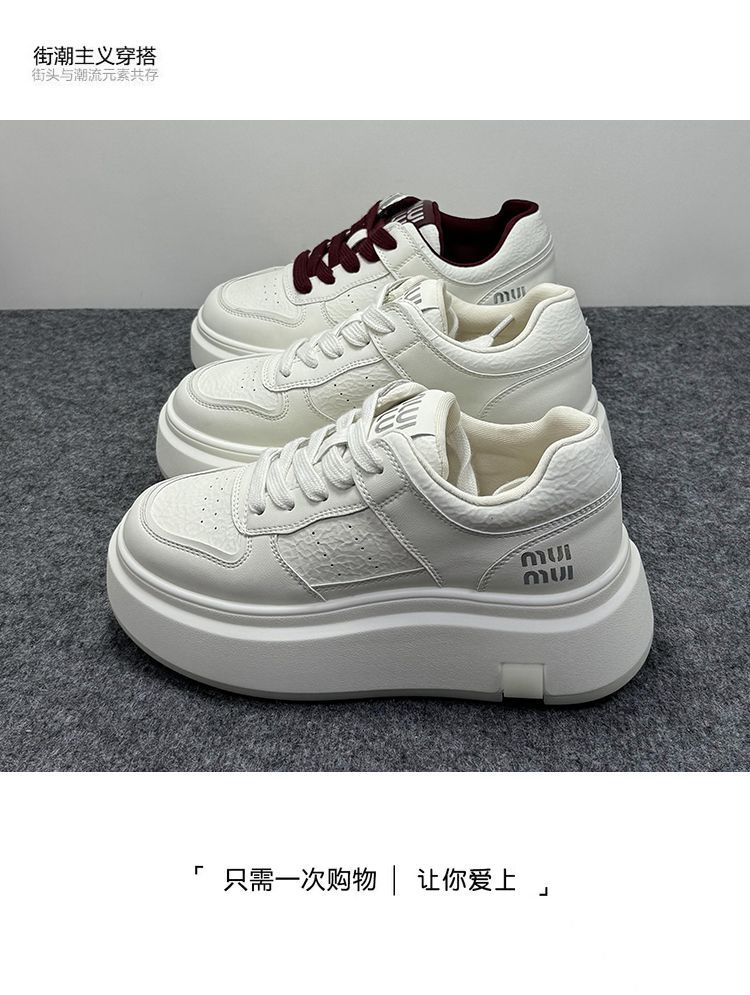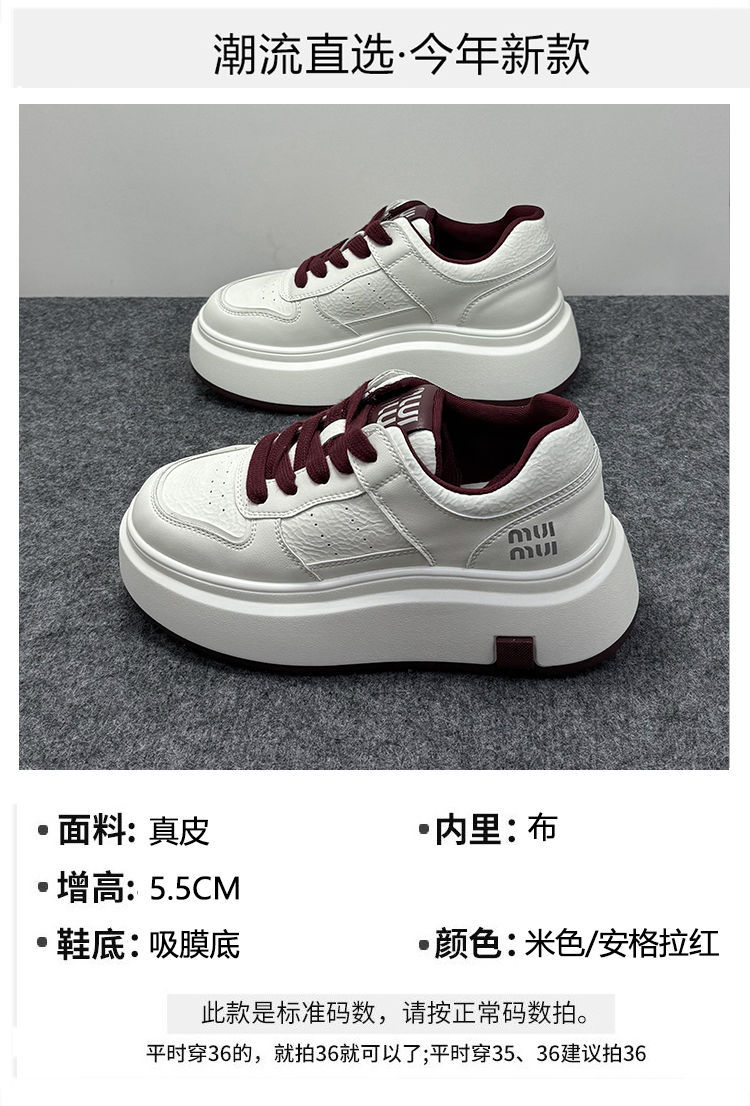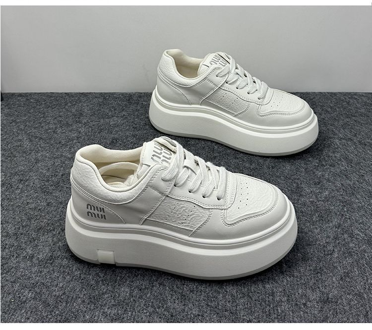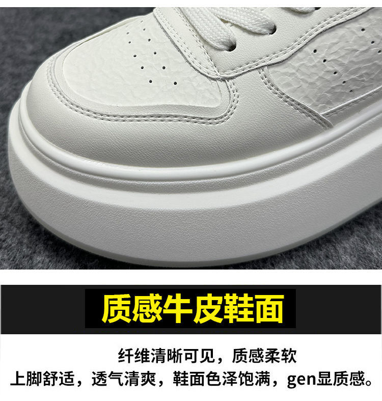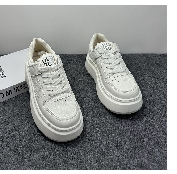 Zapatos de suela gruesa de cuero para mujeres, primavera de 2025, nuevos zapatos de altura para mujeres, zapatos blancos casuales.