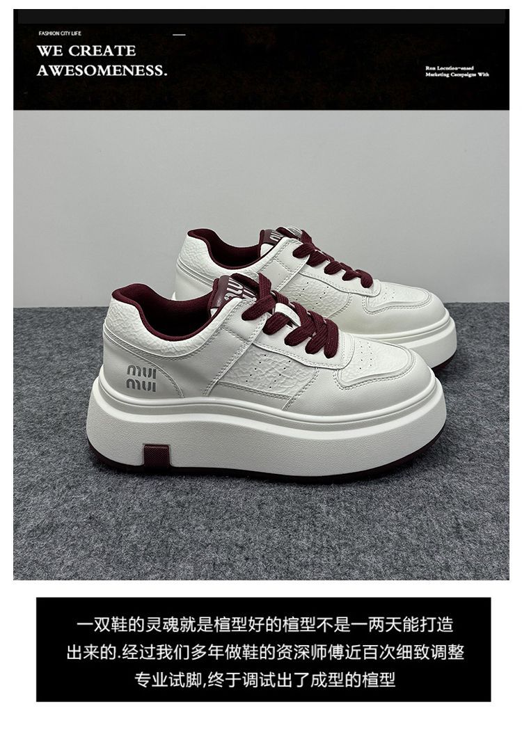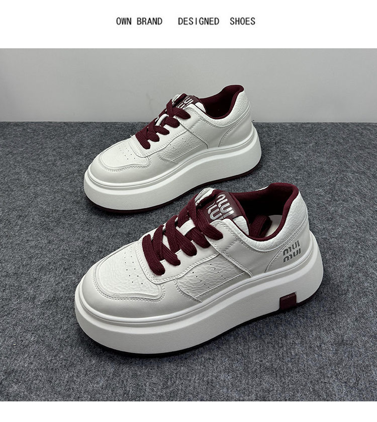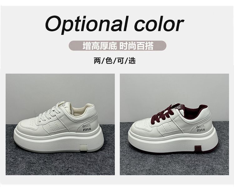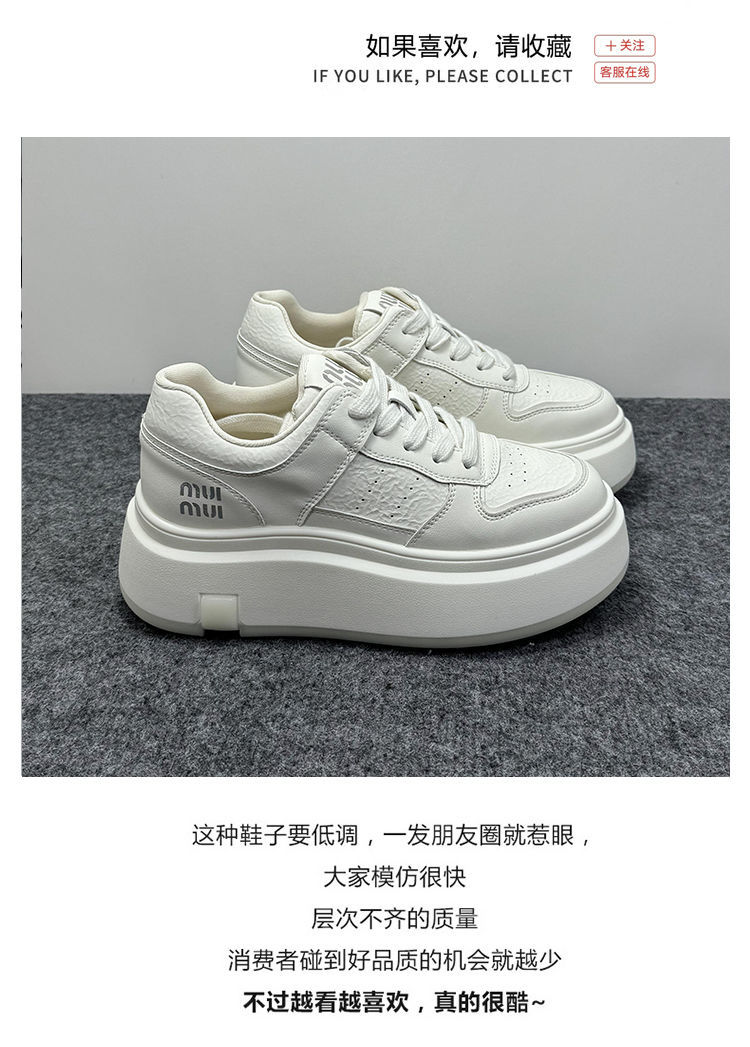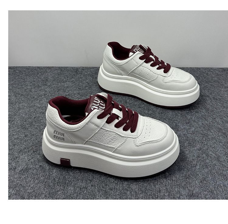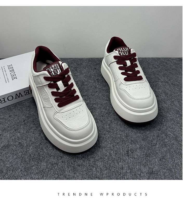 Zapatos de suela gruesa de cuero para mujeres, primavera de 2025, nuevos zapatos de altura para mujeres, zapatos blancos casuales.