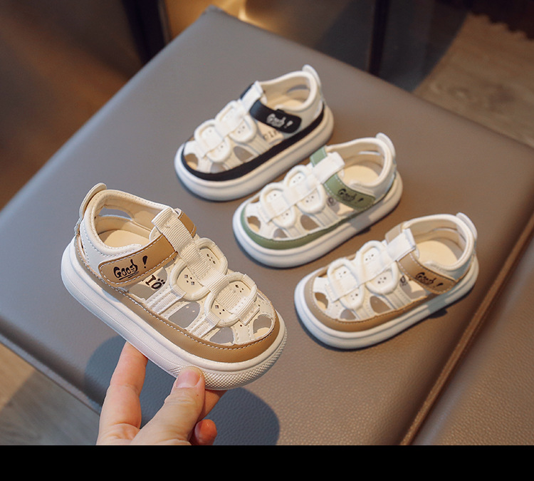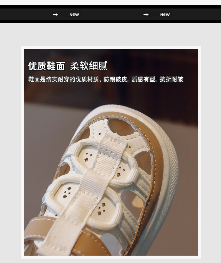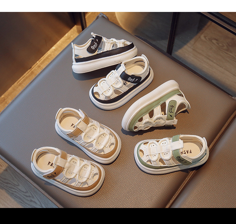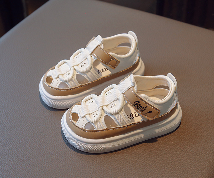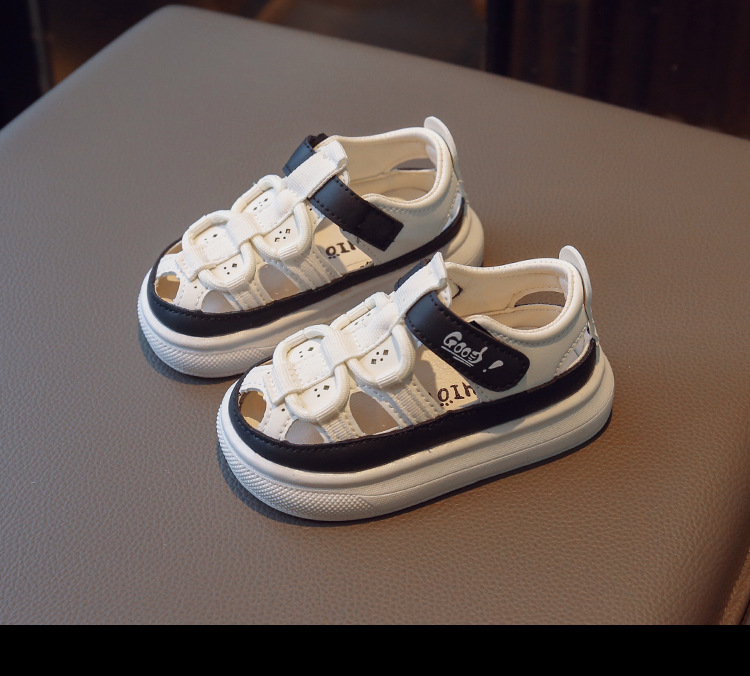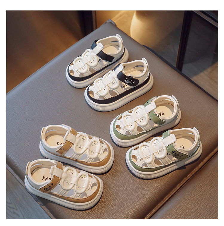 Entrega de una pieza de verano nuevas medias sandalias de fondo suave para niños sandalias de cuero para niños y niñas zapatos de agujero hueco