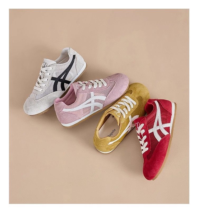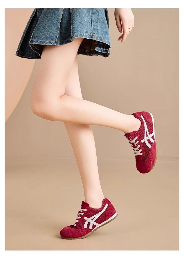 Zapatos de entrenamiento alemanes rojos para mujer 2025 verano nuevo estilo casual malla Forrest Gump zapatos de mujer de nicho de todo fósforo zapatillas retro de suela blanda