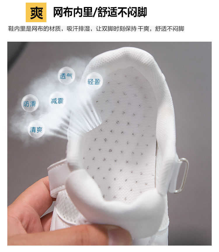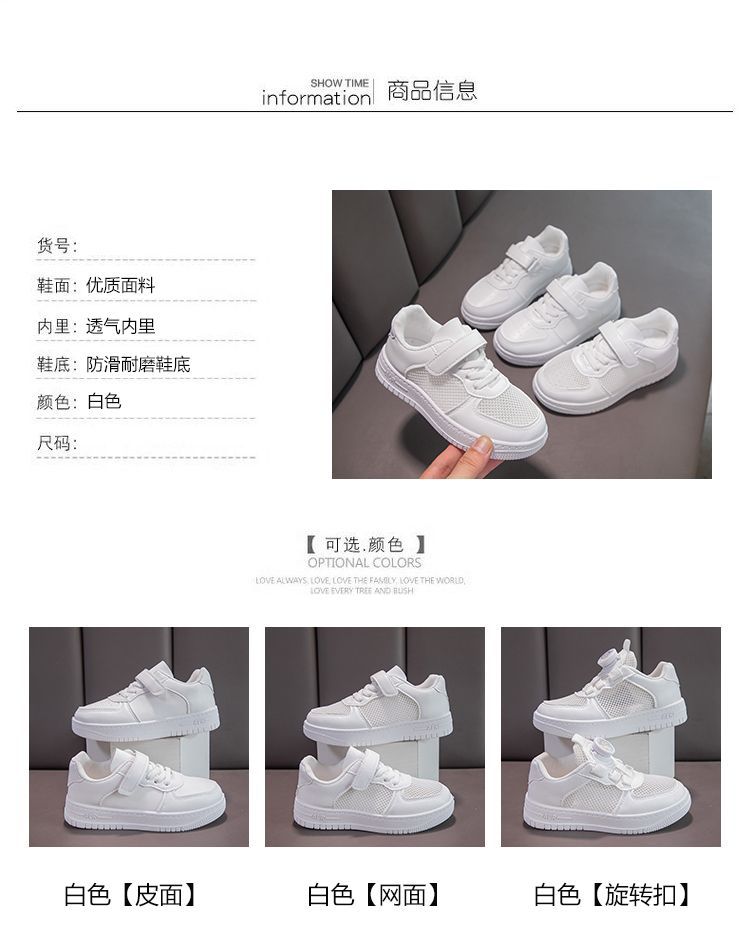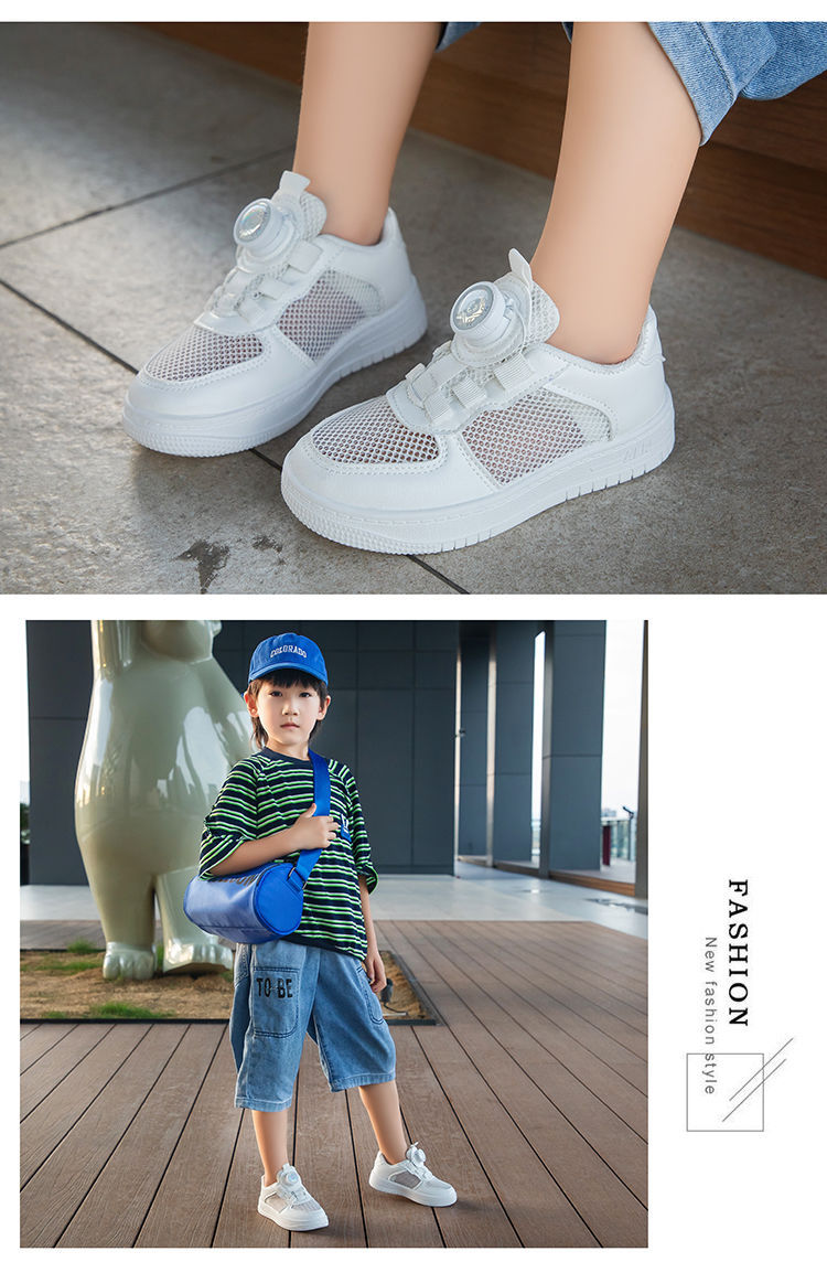 Zapatos blancos para niños primavera y verano nuevos zapatos de malla transpirables blancos para niños y niñas zapatos de correr para estudiantes del campus