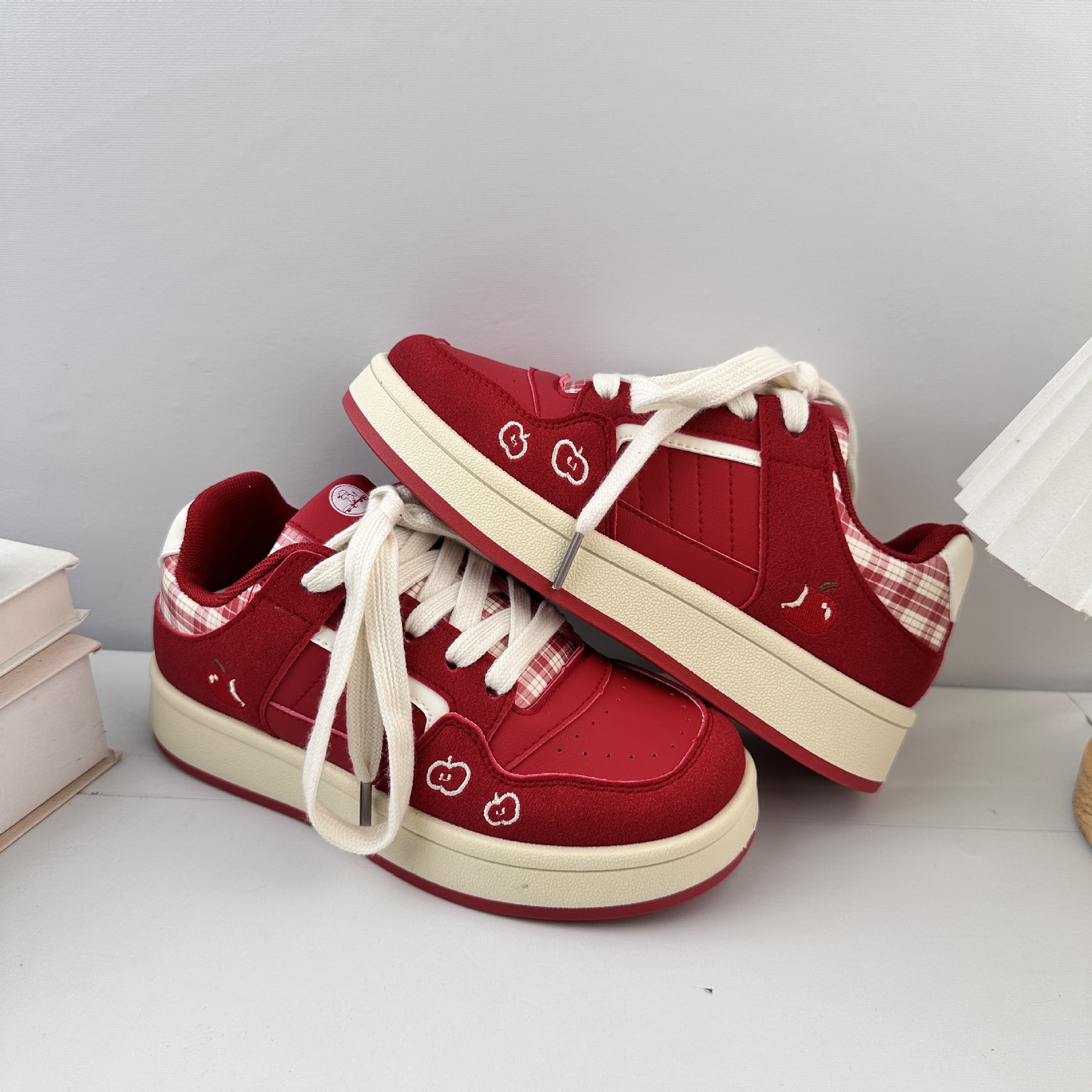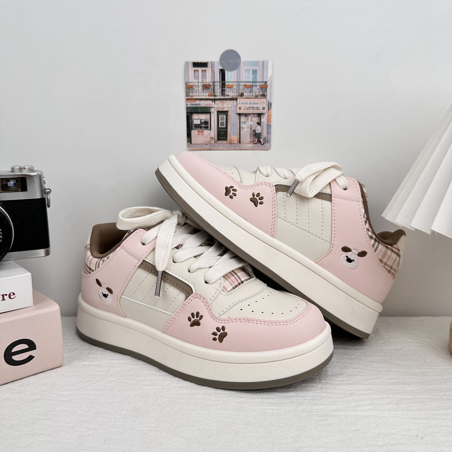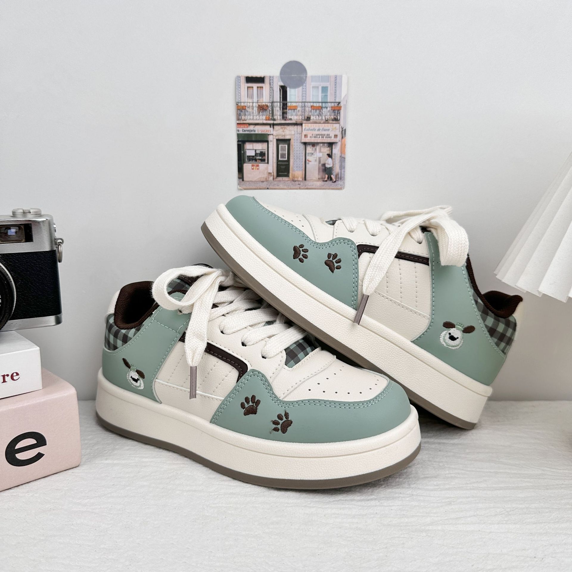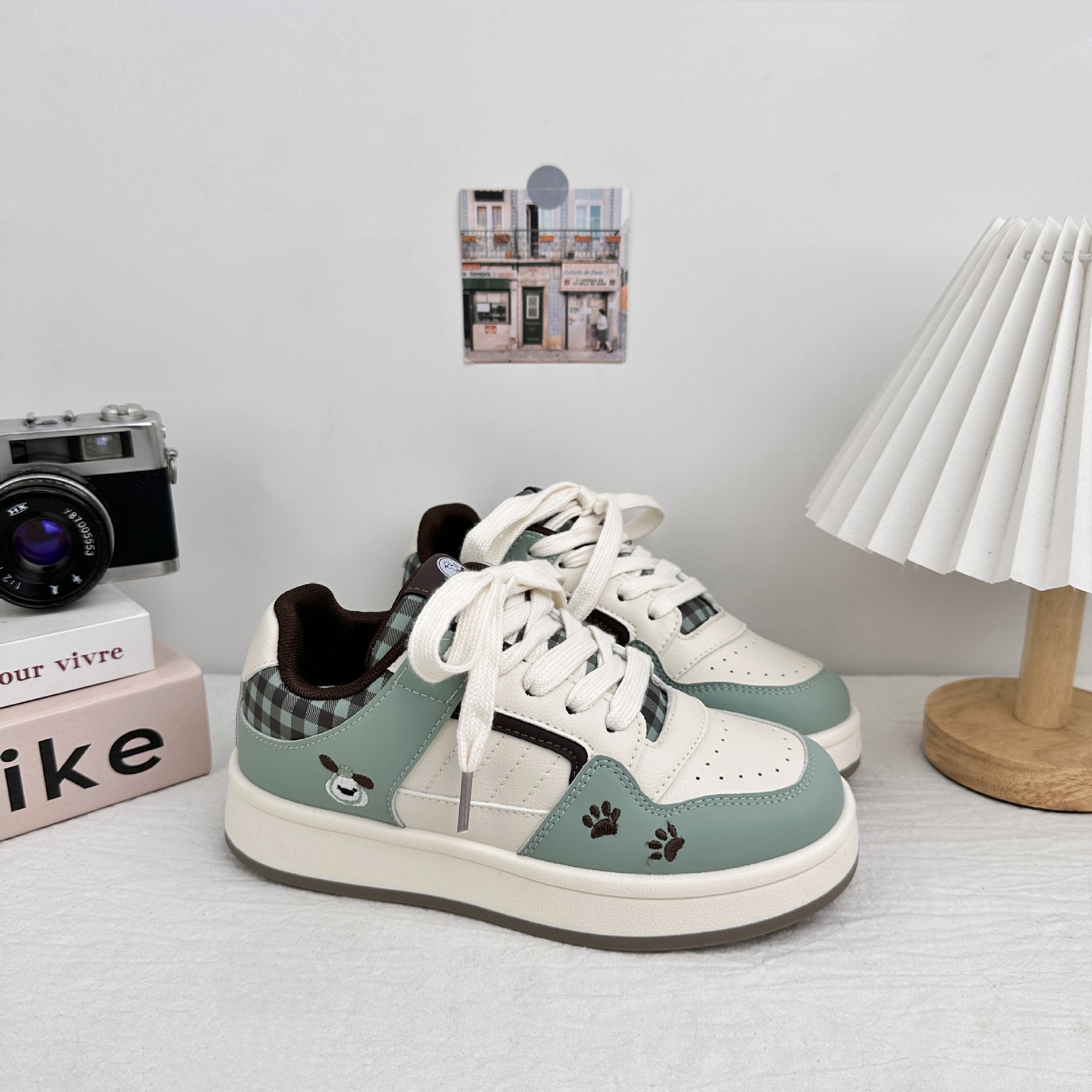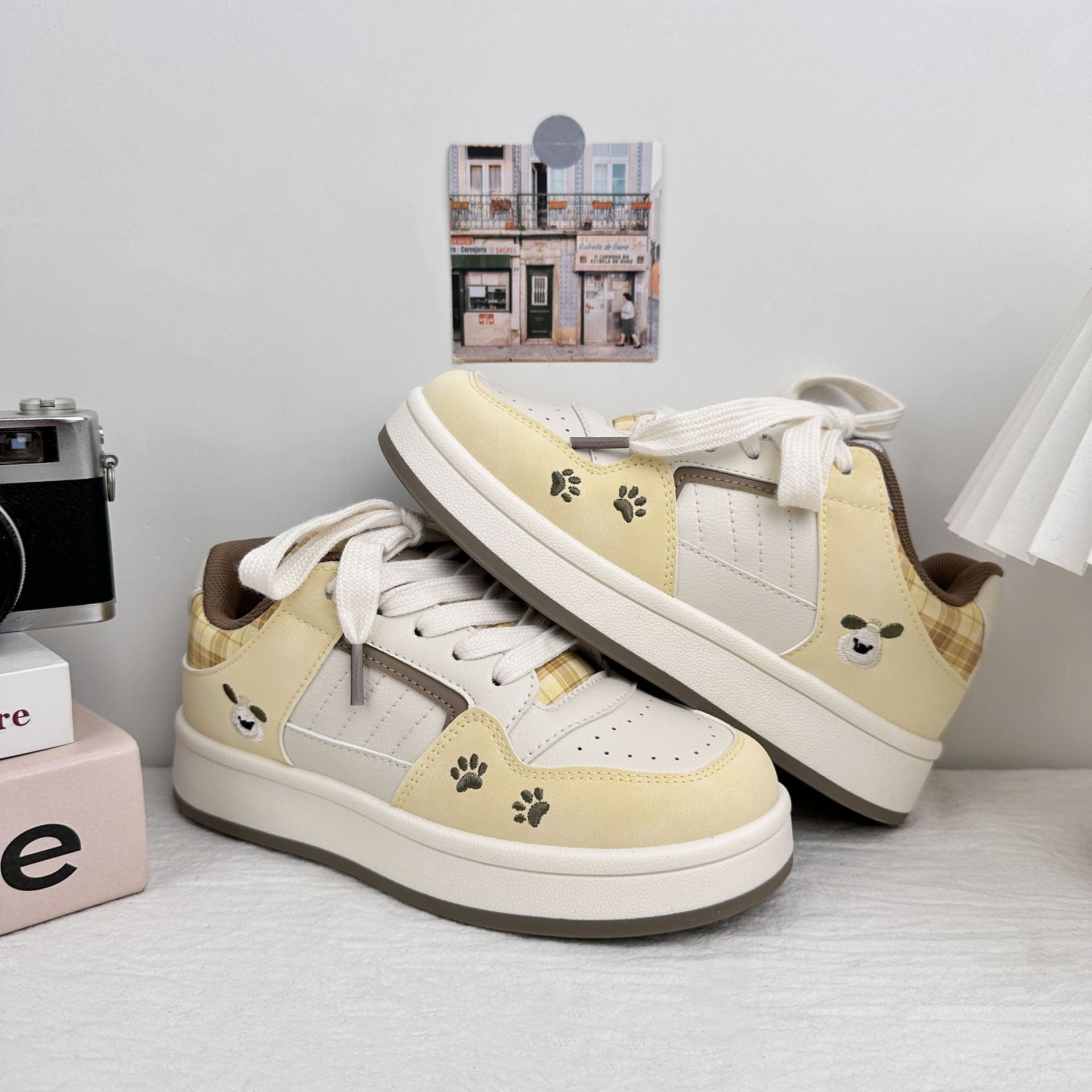 Zapatos blancos de fondo grueso para mujeres 2025 nuevos zapatos de skate casuales de primavera y otoño para estudiantes de nicho zapatos de pan