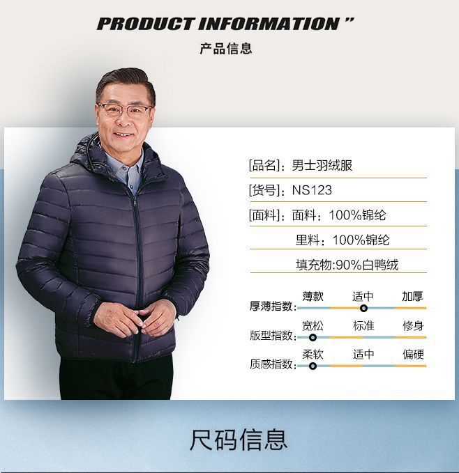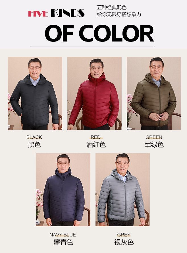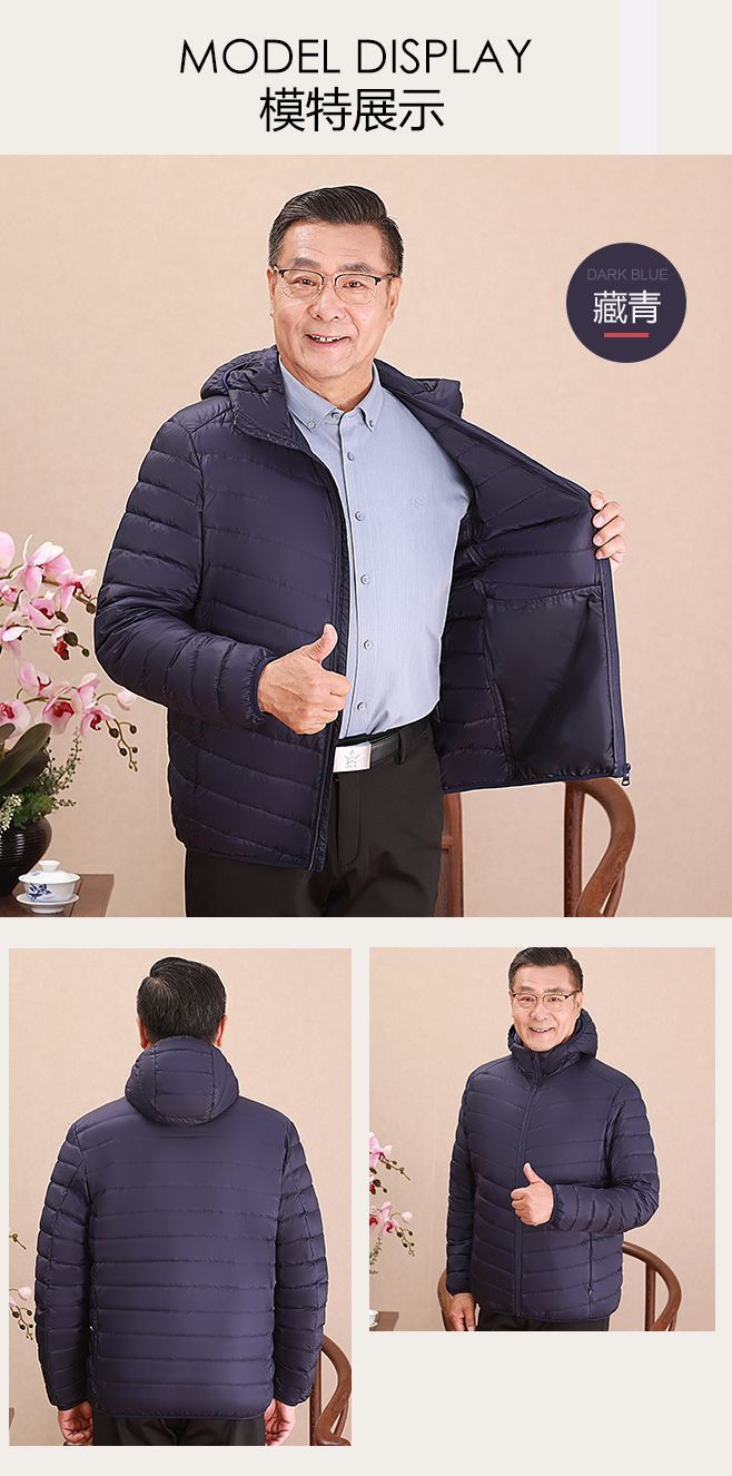 Chaqueta de plumón ligera transfronteriza hombre de mediana edad padre vestido de cuello corto invierno chaqueta de abrigo de invierno