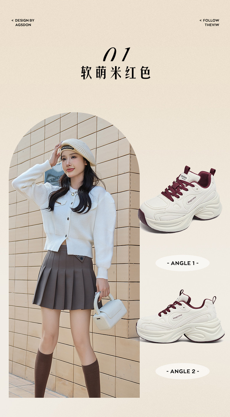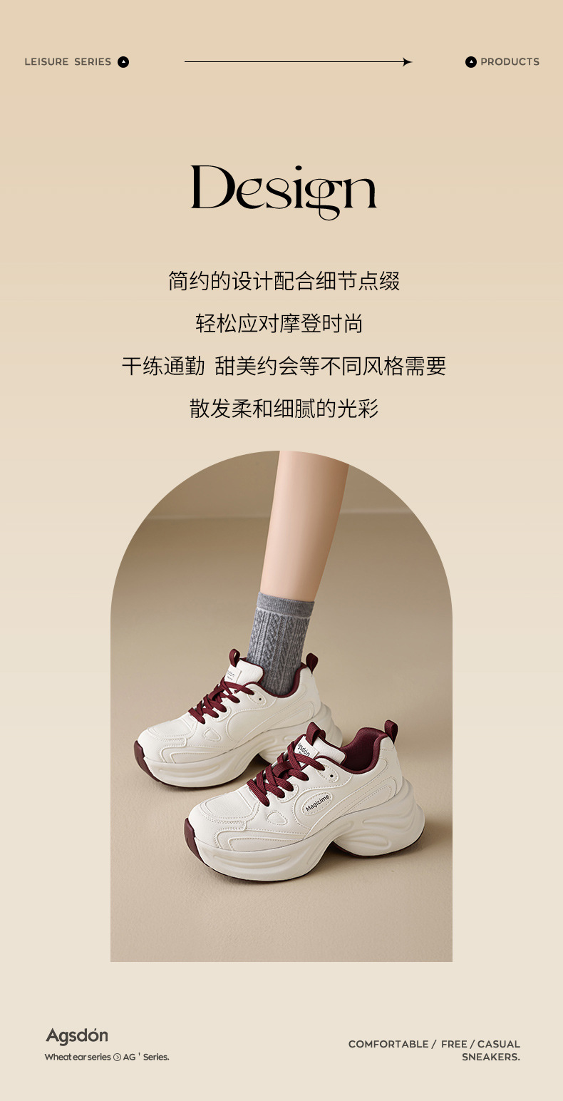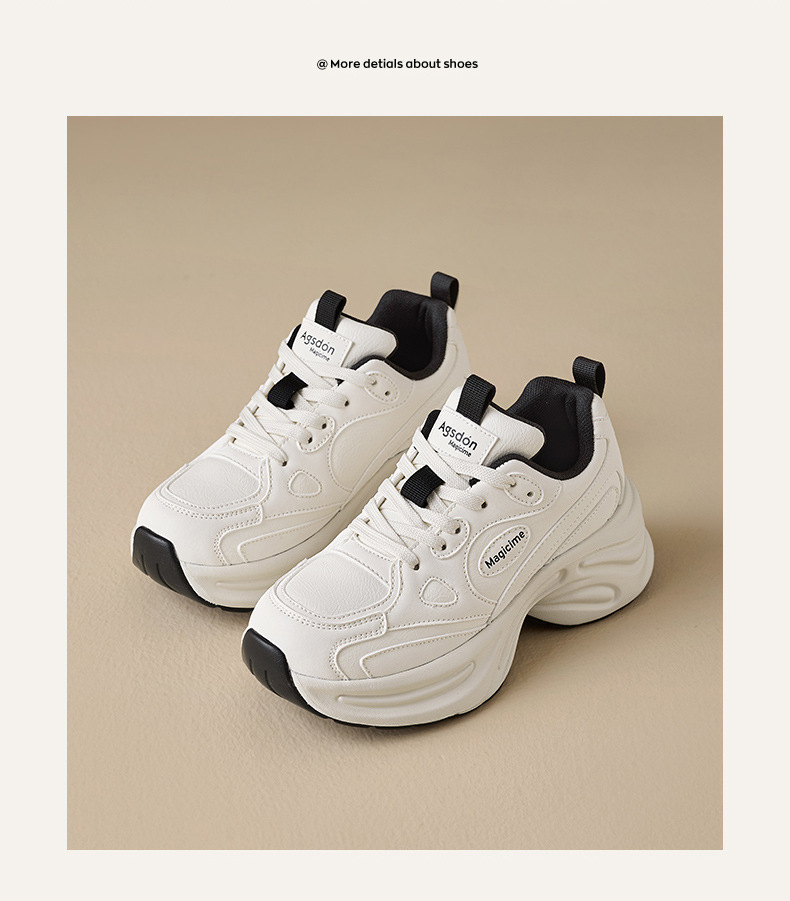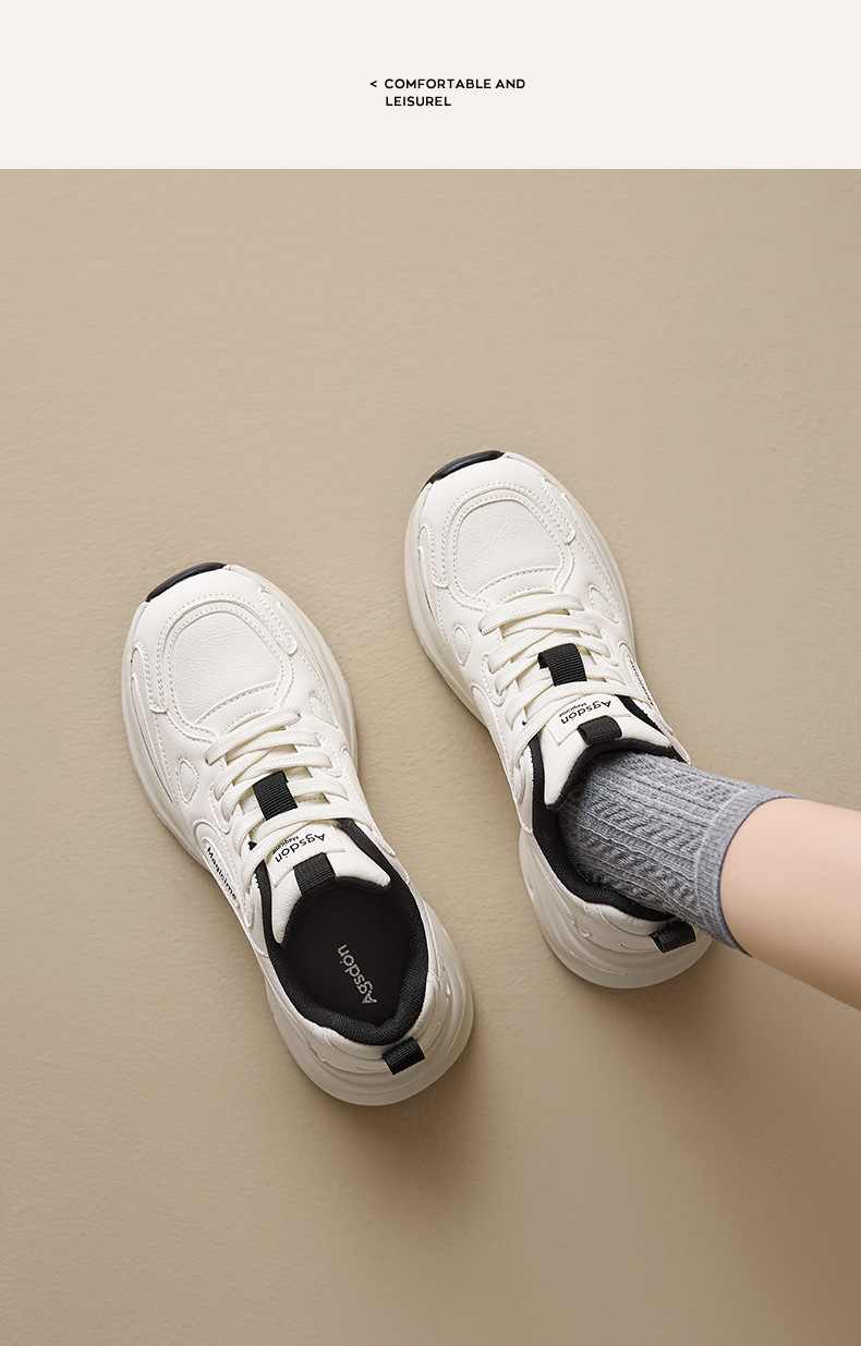 Augu Shi Deng zapatos de base gruesa para padres y mujeres 2025, nuevos zapatos de cuero de primavera y otoño pequeños zapatos deportivos blancos para estudiantes zapatos de carrera casuales