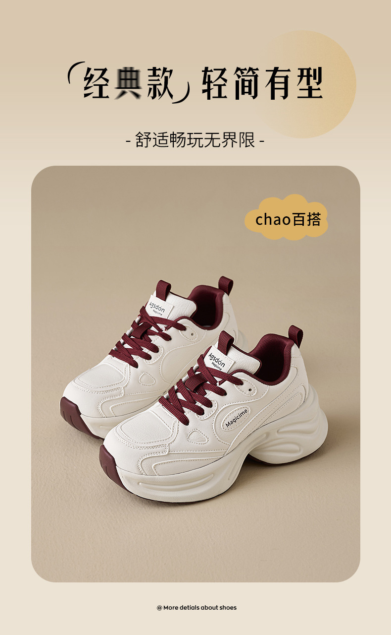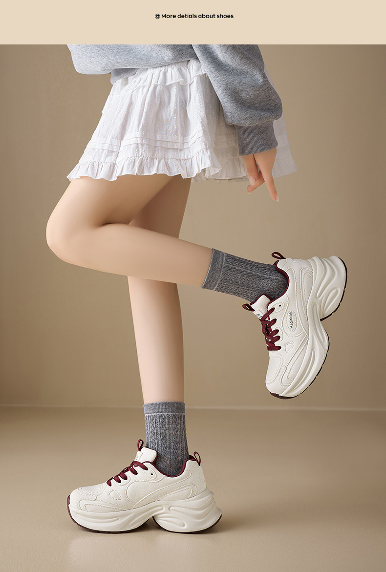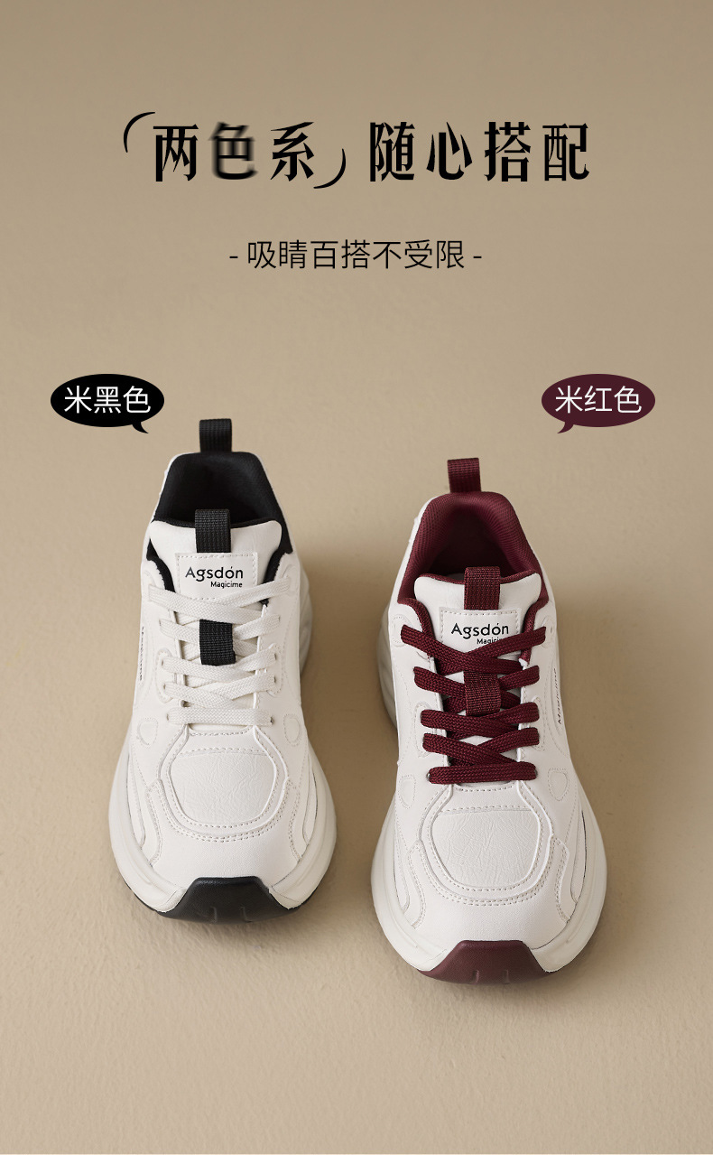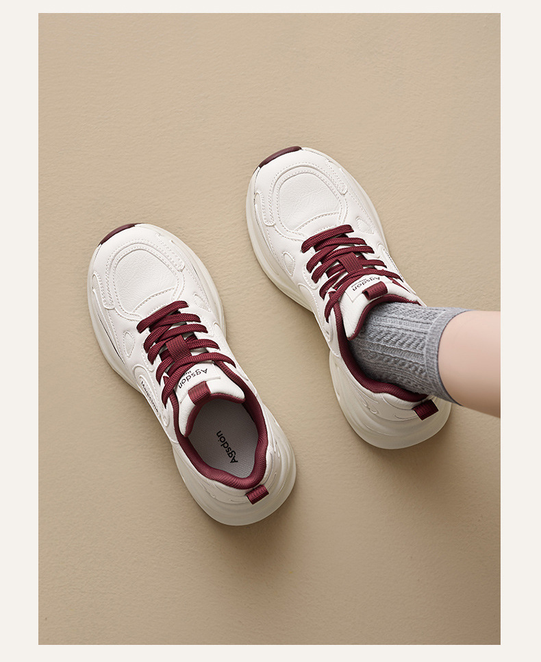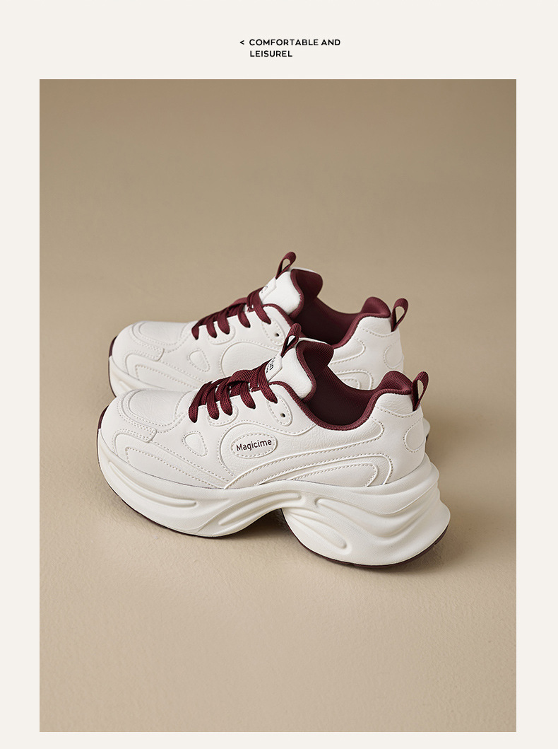 Augu Shi Deng zapatos de base gruesa para padres y mujeres 2025, nuevos zapatos de cuero de primavera y otoño pequeños zapatos deportivos blancos para estudiantes zapatos de carrera casuales
