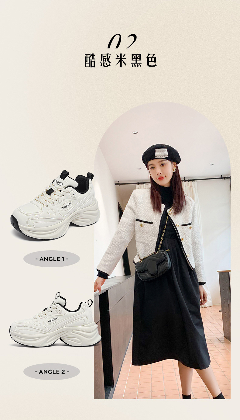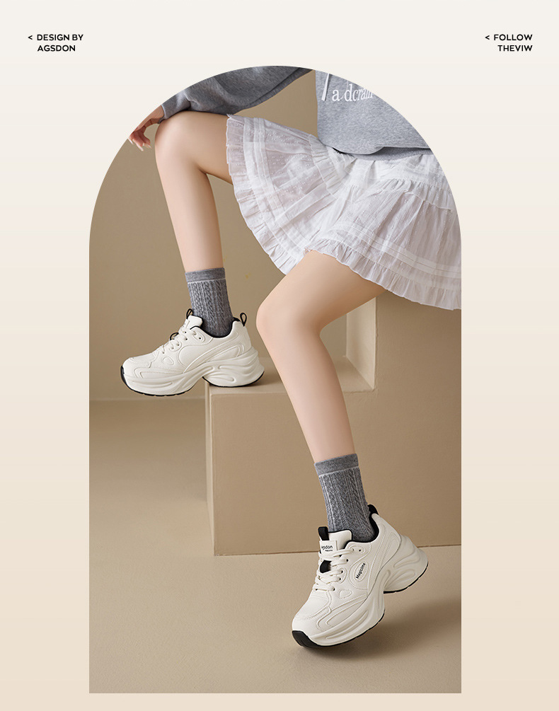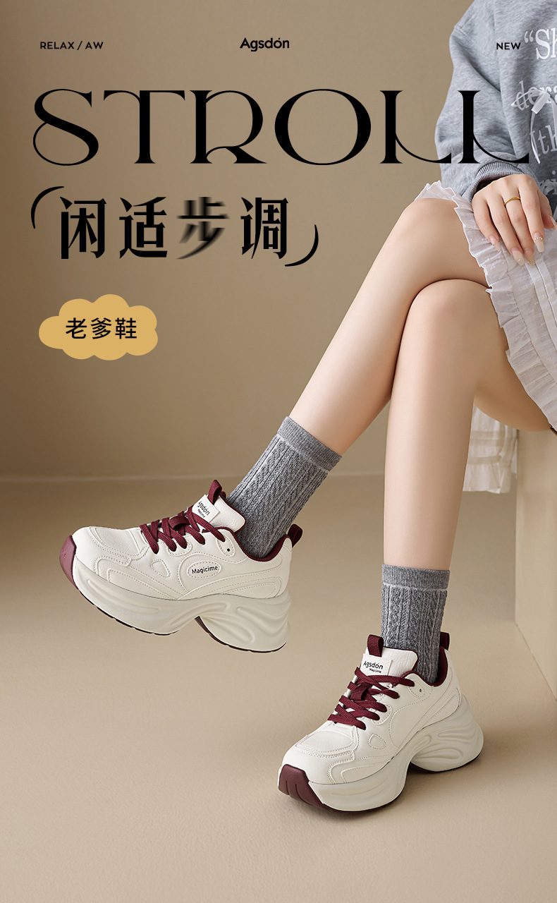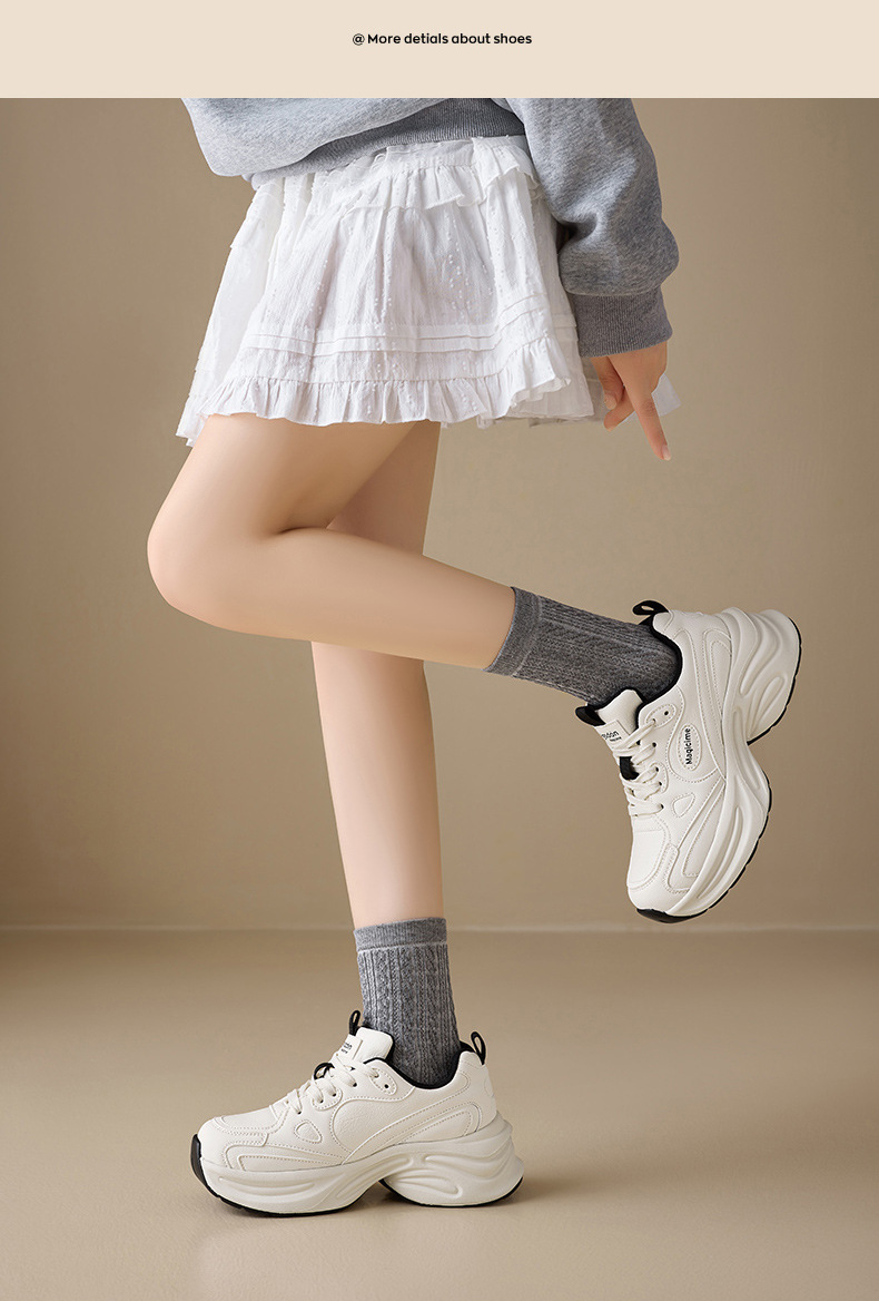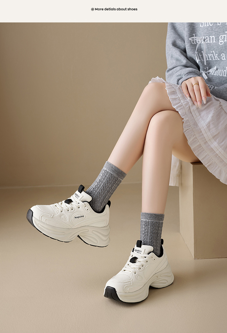 Augu Shi Deng zapatos de base gruesa para padres y mujeres 2025, nuevos zapatos de cuero de primavera y otoño pequeños zapatos deportivos blancos para estudiantes zapatos de carrera casuales