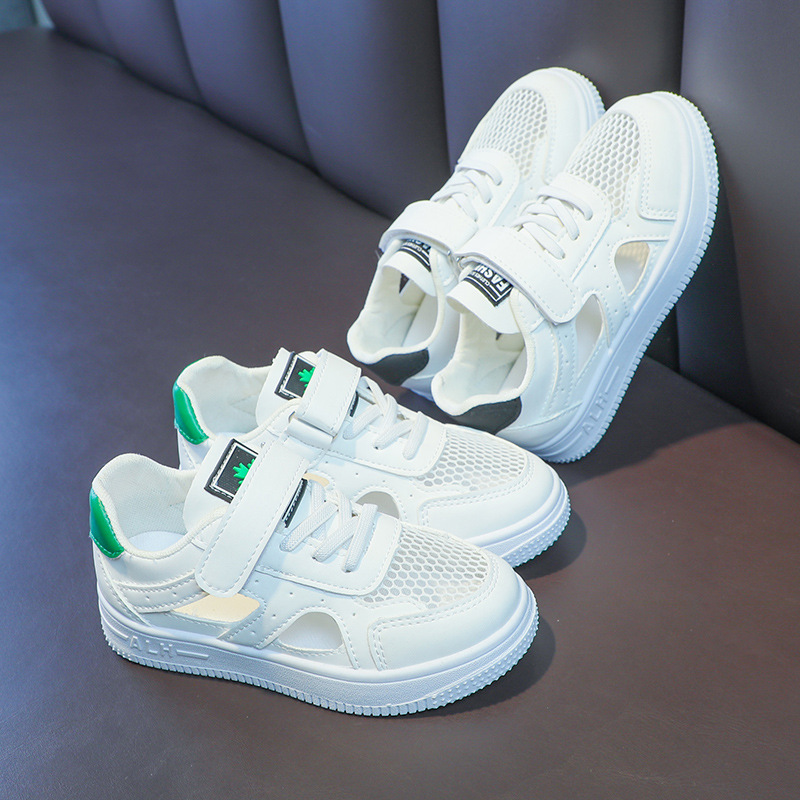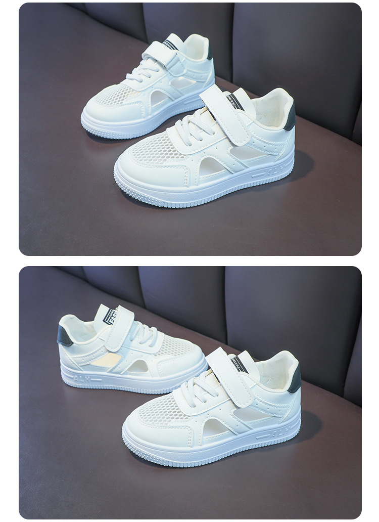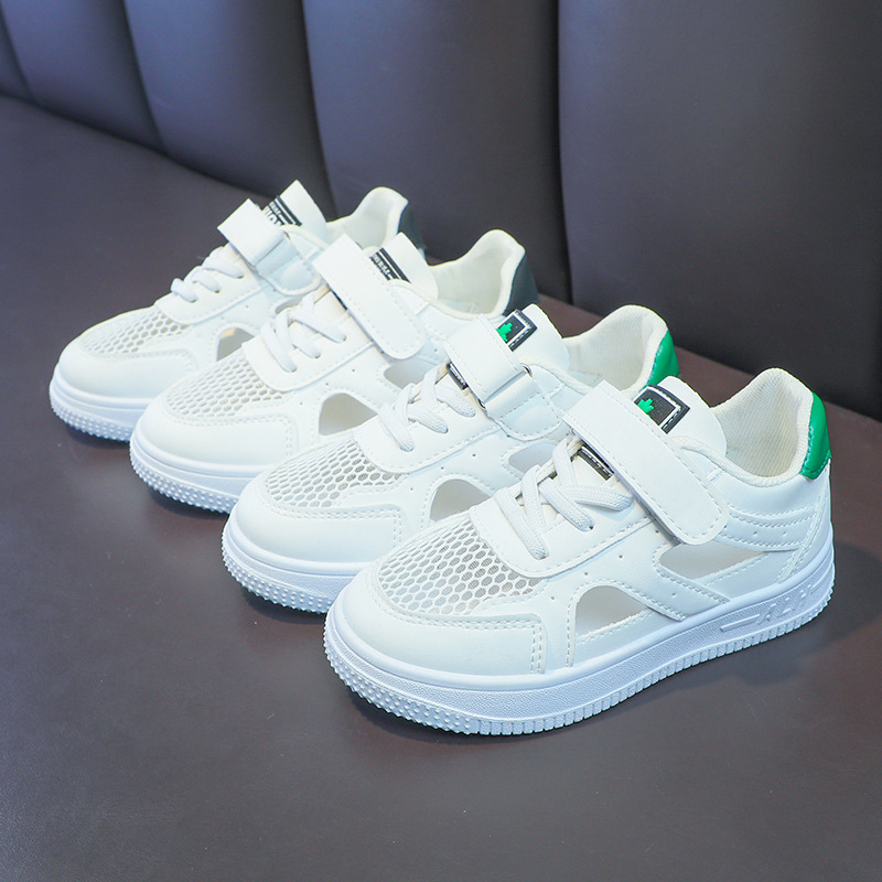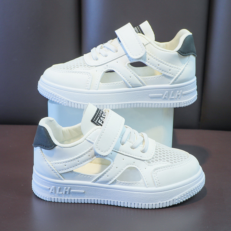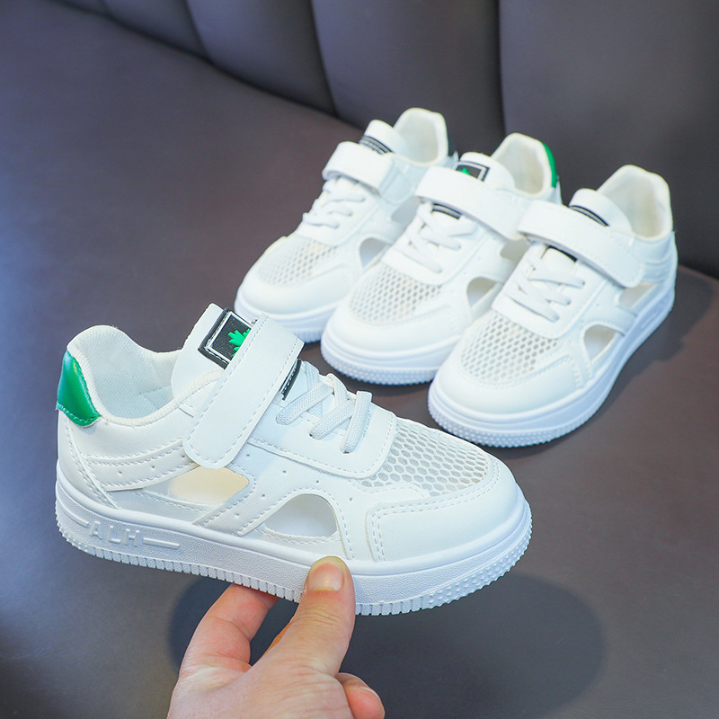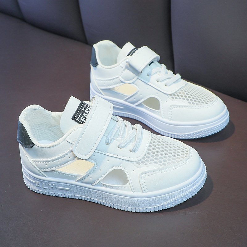Zapatos de malla para niños 2024 de verano de moda para niñas sandalias huecas transpirables de malla única baja zapatos blancos para niños pequeños