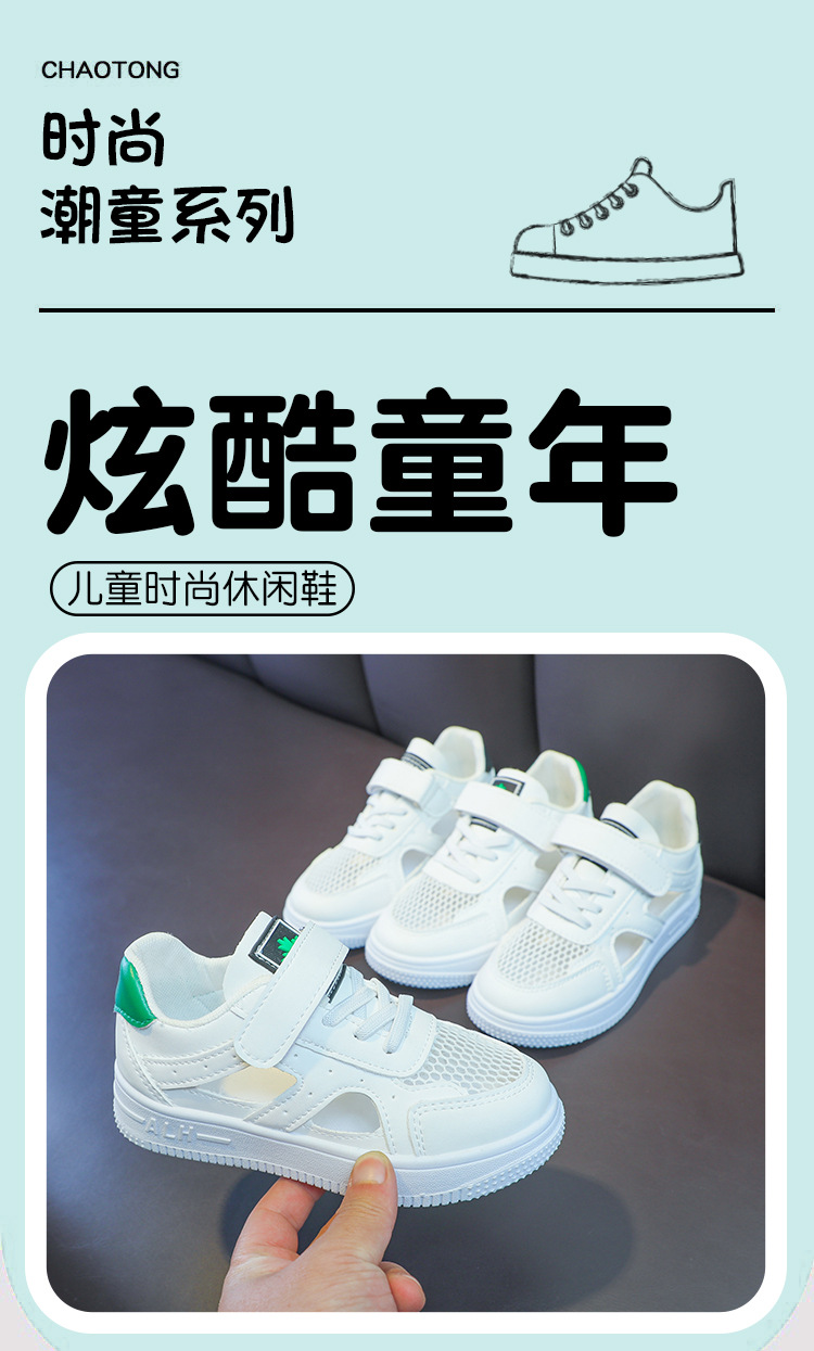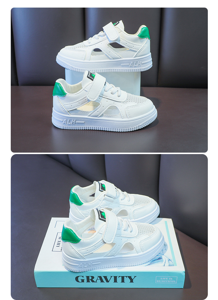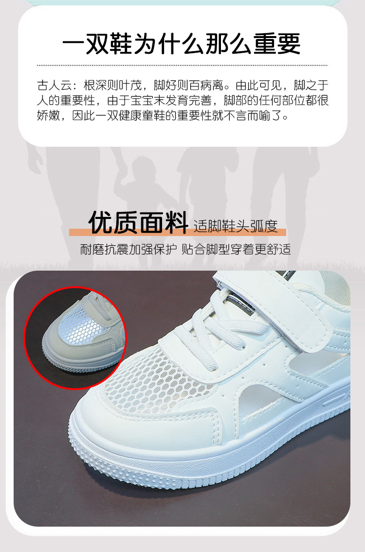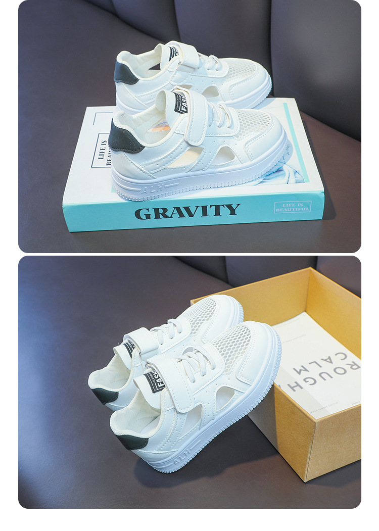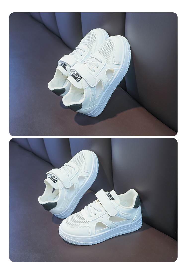 Zapatos de malla para niños 2024 de verano de moda para niñas sandalias huecas transpirables de malla única baja zapatos blancos para niños pequeños